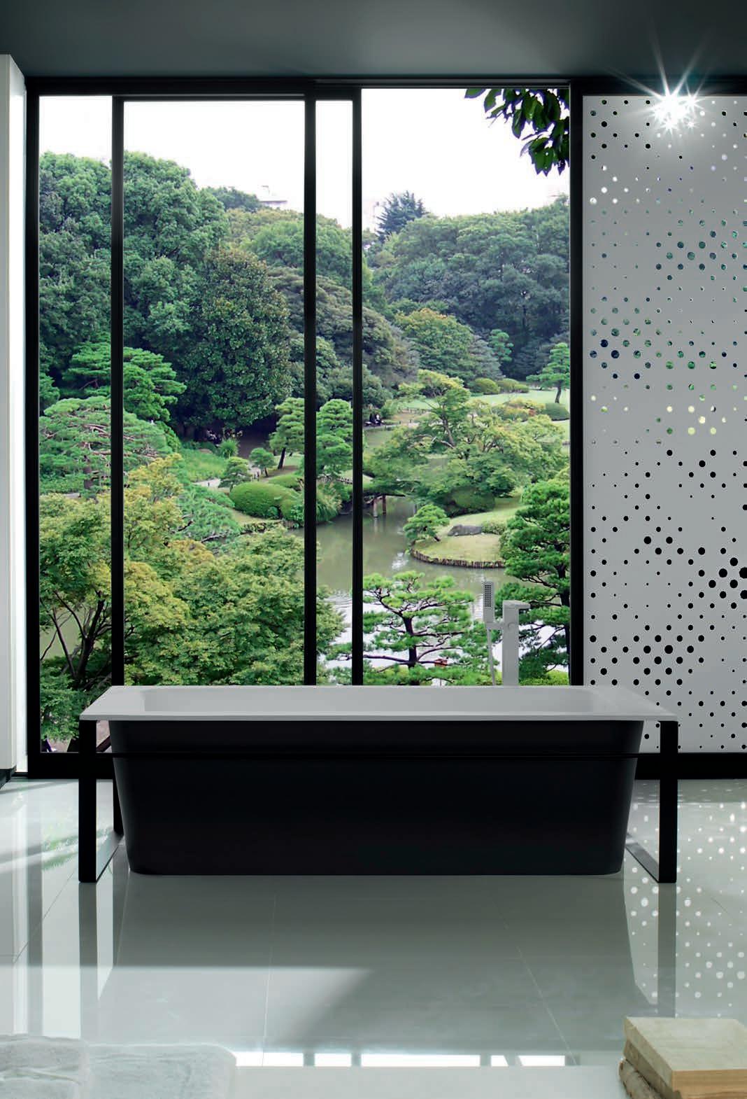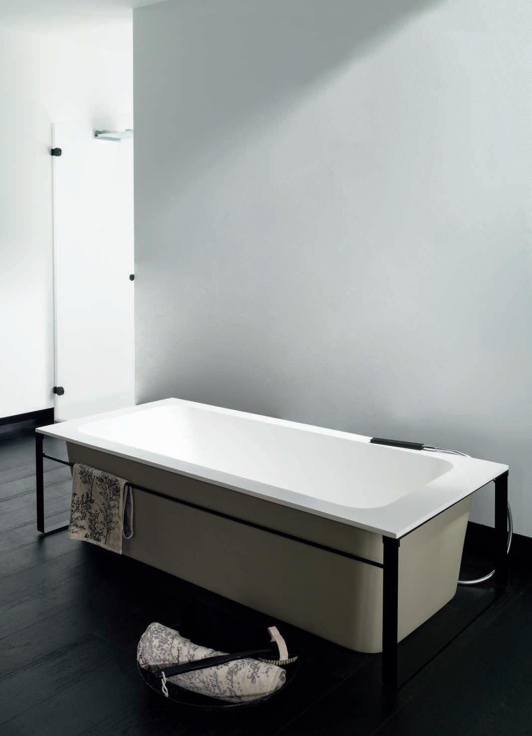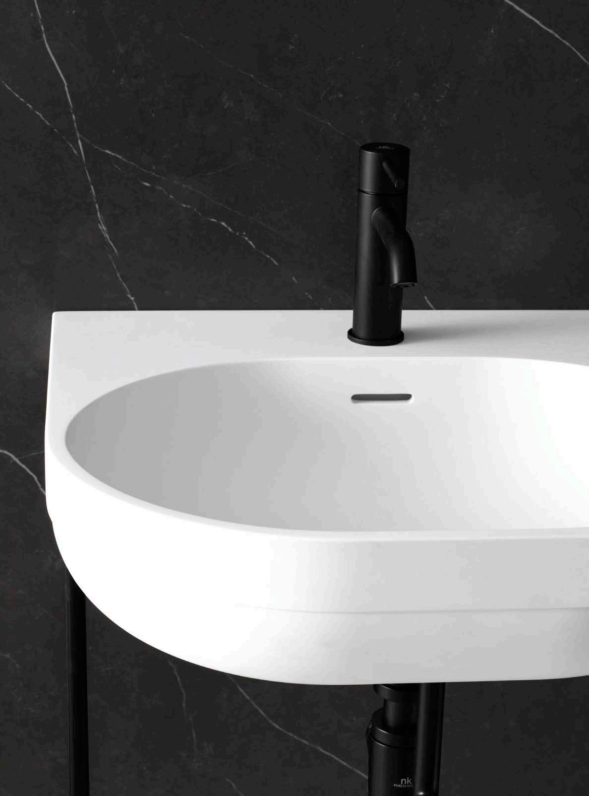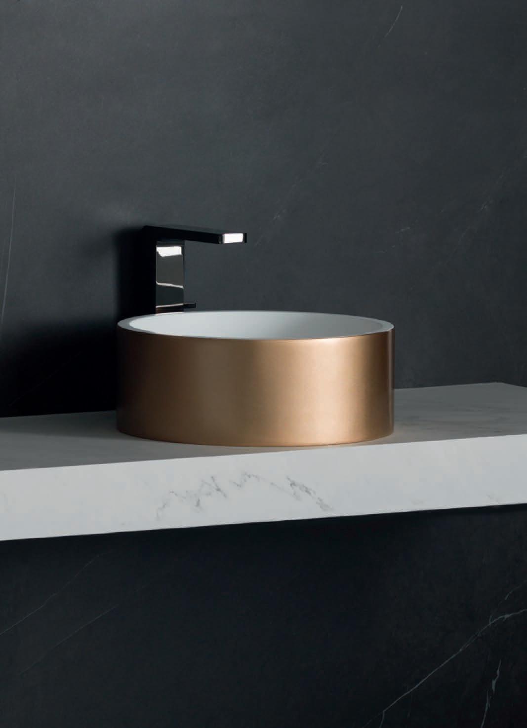 This KRION® series, in addition to a free-standing bathtub, washbasin and semi-recessed washbasin.