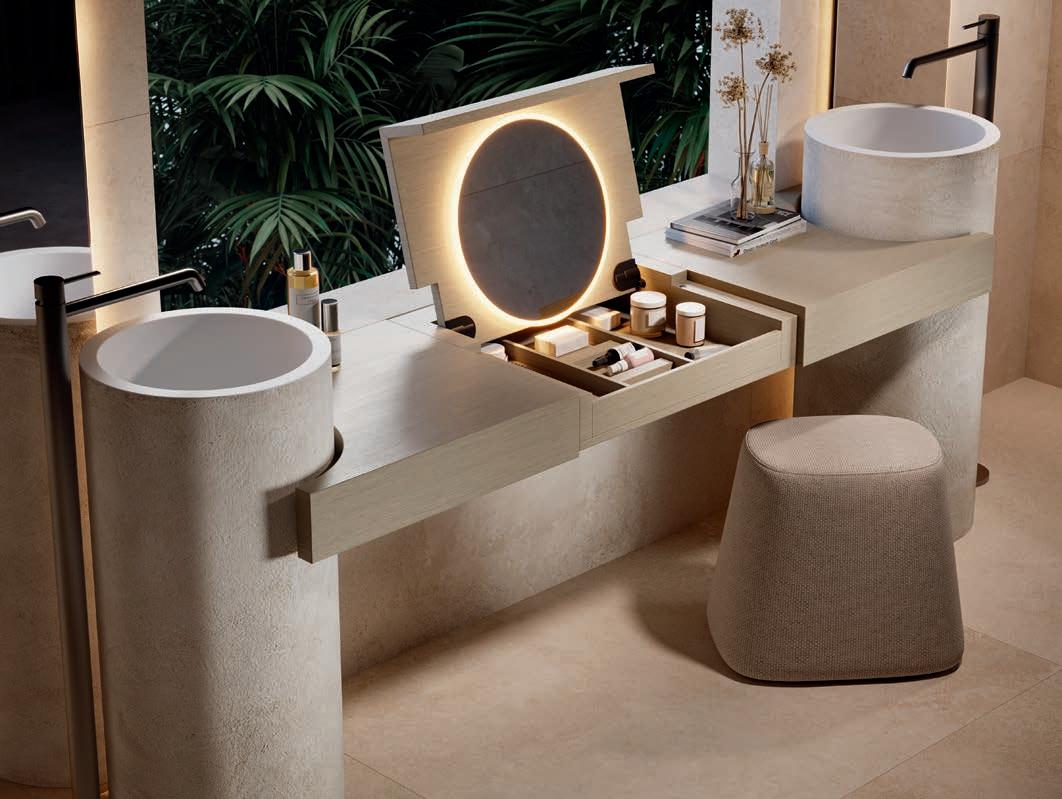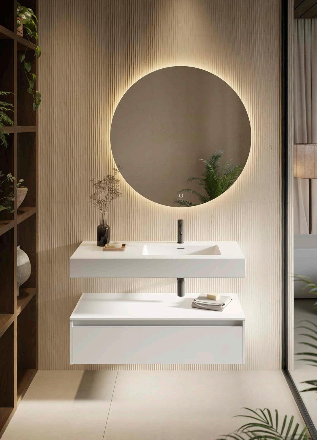 Eclipse est la nouvelle collection pour la salle de bains qui représente une véritable déclaration de design : une fusion entre l’élégance contemporaine et l’âme artisanale. Créée avec Krion® Solid, cette série a été conçue pour ceux qui considèrent la salle de bains comme un espace de bien-être, de soins personnels et d’expression esthétique. Son design répond à un langage de formes organiques et de lignes douces qui transmettent calme, équilibre et sophistication.
