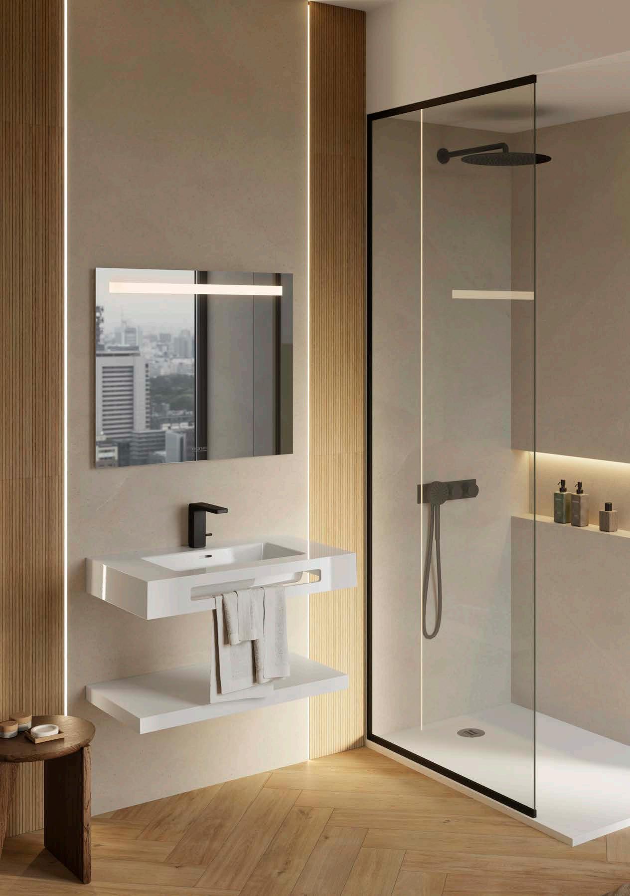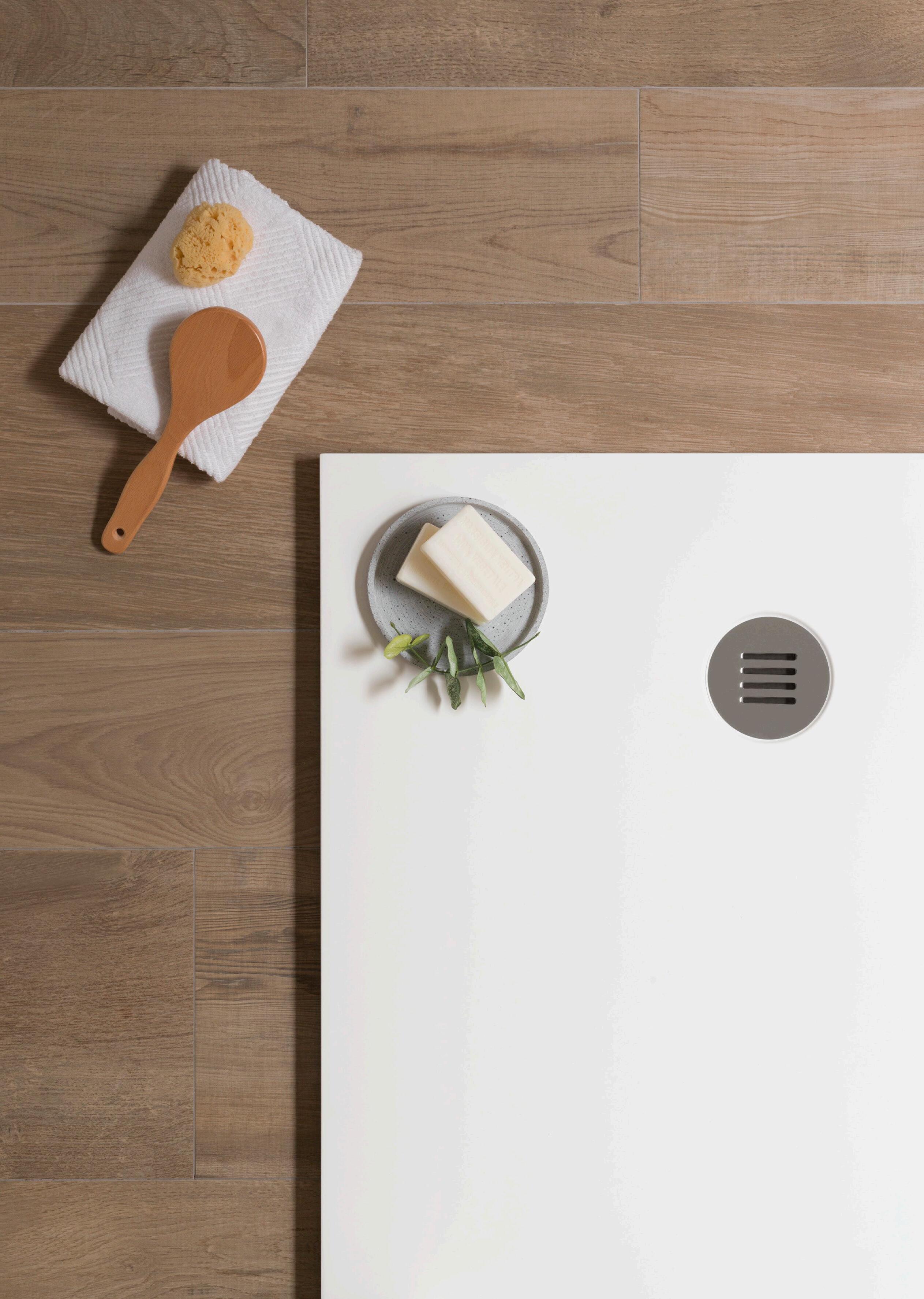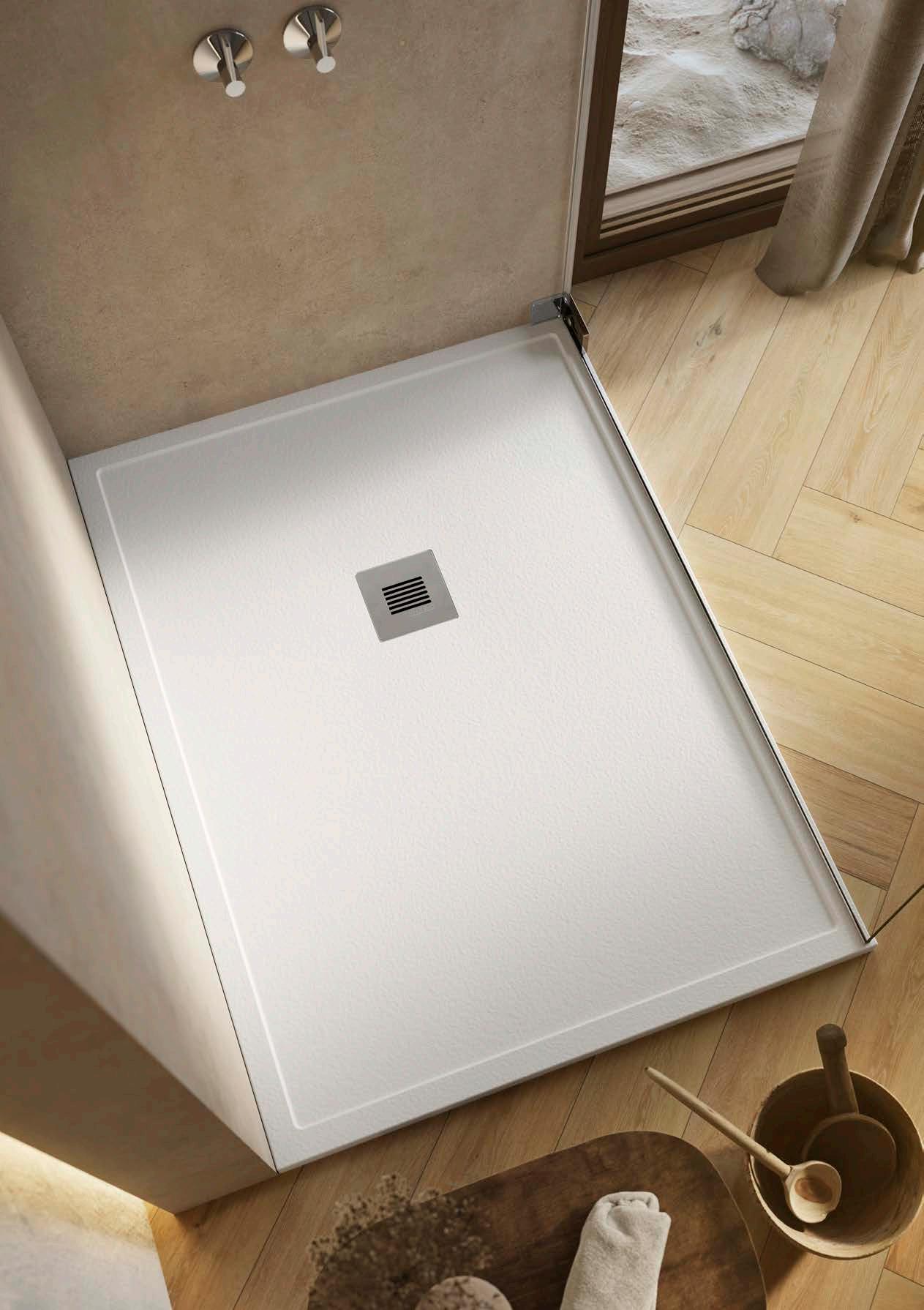 Discover Atrium, the perfect combination of style and functionality. Its rim acts as a step and ensures a margin so that water does not overflow. With a texture, it offers anti-slip safety with class III classification.