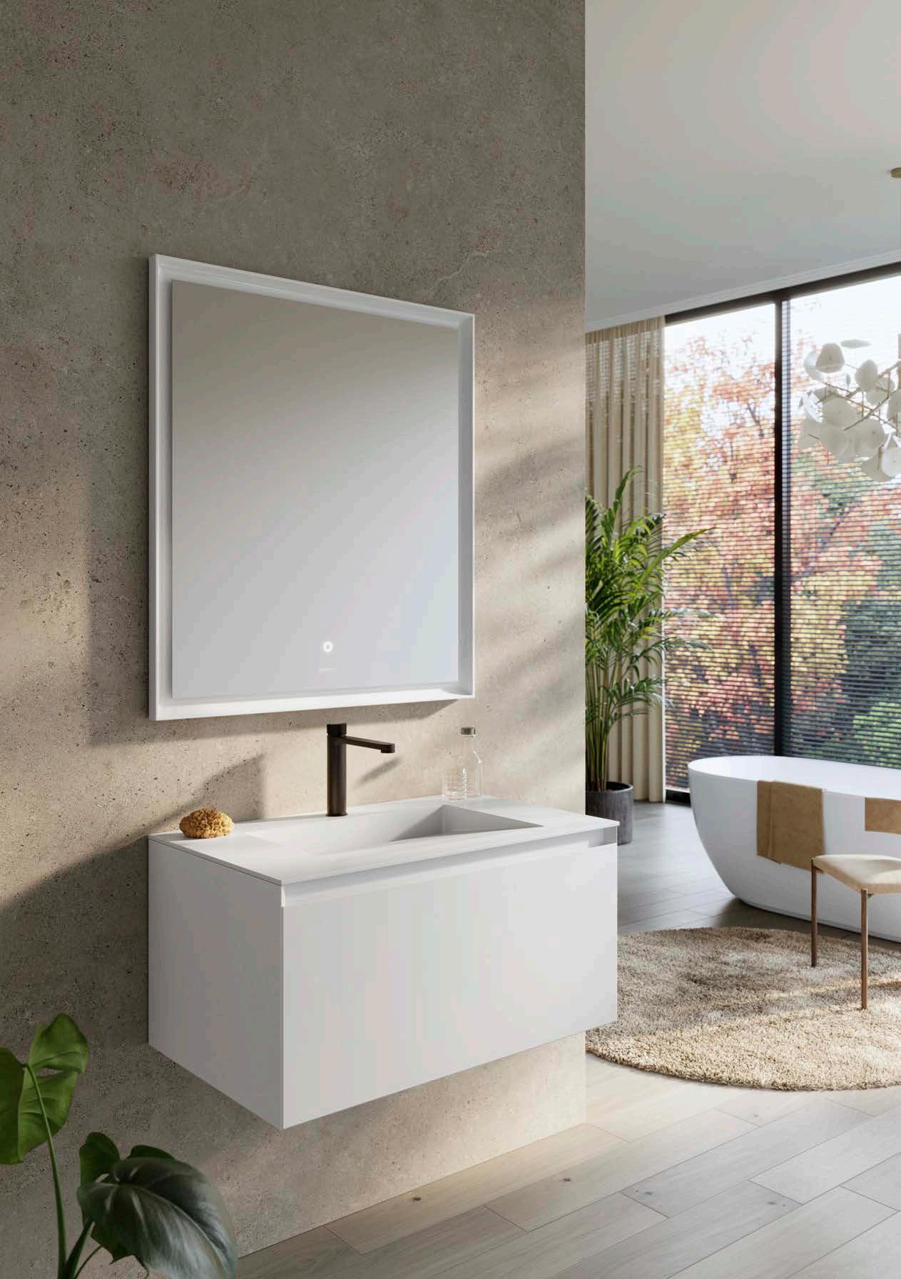 Las series de baño Krion® Solid, están elaboradas íntegramente con la superficie sólida Krion® Solid, que permite conseguir desde diseños de formas rectas y simétricas, hasta diseños de formas curvas y ovaladas, siempre manteniendo la estética uniforme que ofrece una excelente continuidad visual. Gracias al blanco puro de Krion® Solid se consiguen baños de estilo natural con una agradable textura al tacto, a lo que se suman múltiples beneficios técnicos, como su resistencia. Cada serie se distingue por su propio carácter, pero siempre manteniendo como esencia el diseño y la exclusividad.