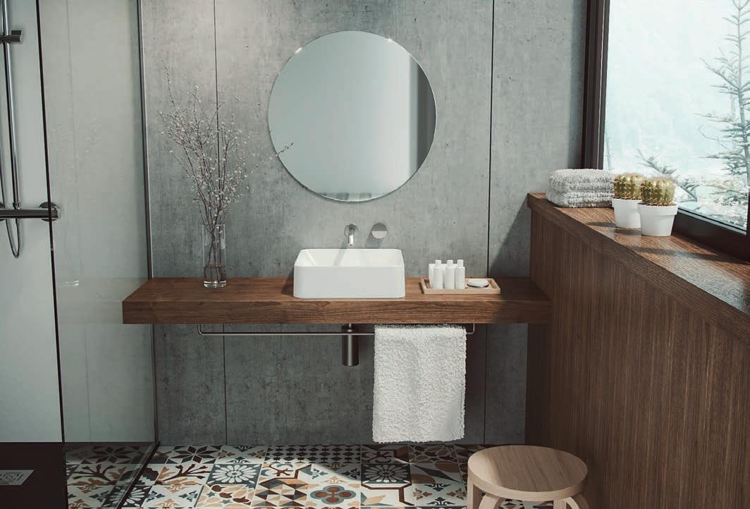 * Encimera instalación lavabo semiencastre · Worktop for semi-recessed washbasin installatione · Plan de vasque pour lavabo semi-encastrable