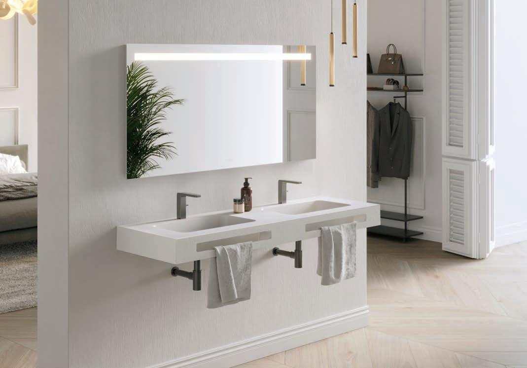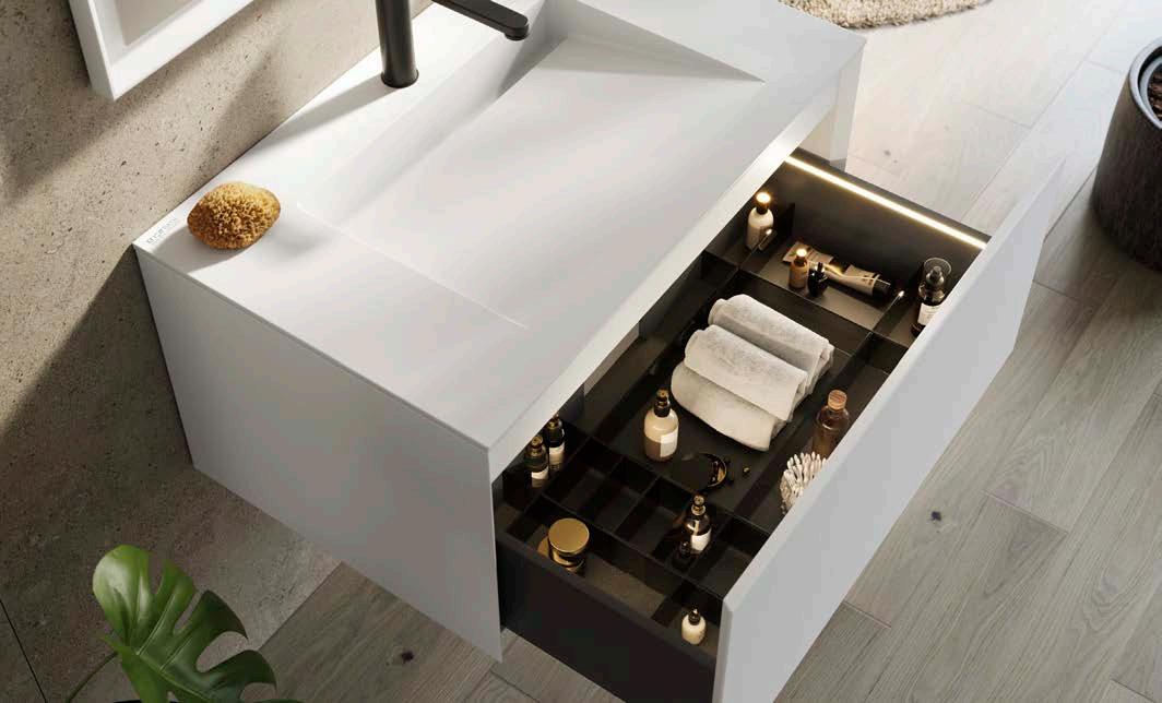 Fabriqué en Krion Shell® avec un design élégant et encastrable, il est disponible en différentes tailles et également sur mesure.