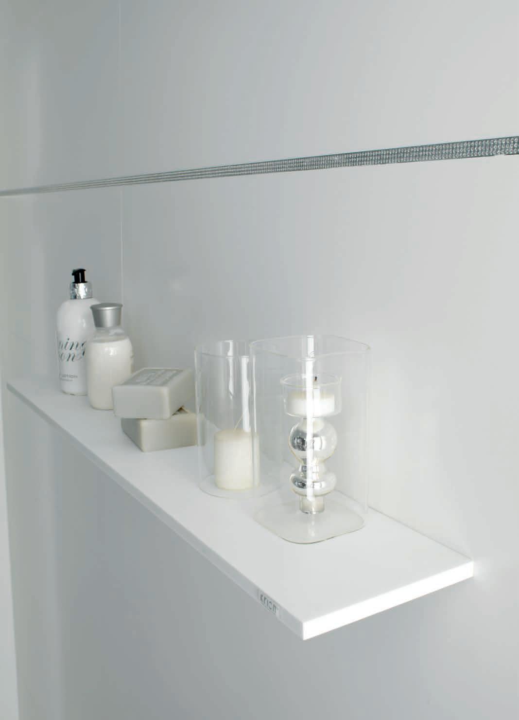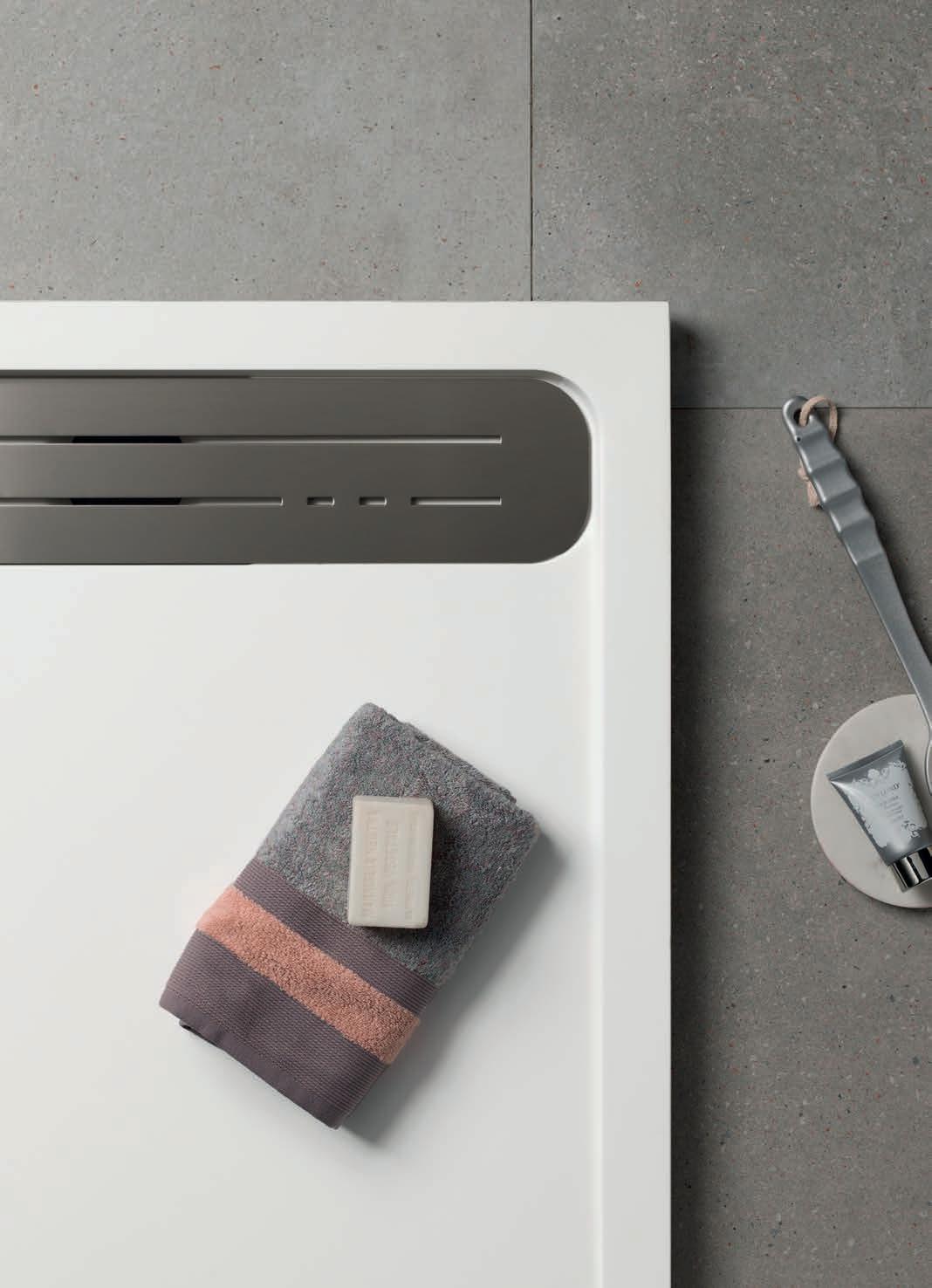 KRION® Shell shower tray that provides excellent mechanical characteristics. The Line shower tray’s dimensions can be customised, with a length ranging from 75 to 210 cm and width from 70 to 100 cm. It also comes with decorative wall panels to ensure visual continuity. LINE products are produced in five different colours: White, Grey, Graphite, Beige and Taupe, an increasingly fashionable choice today.