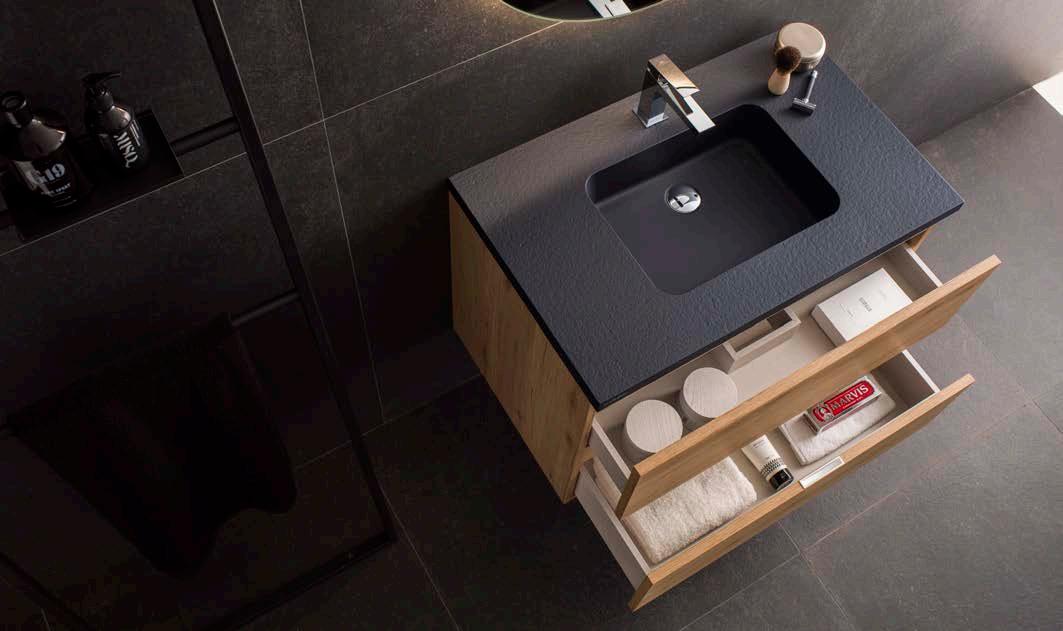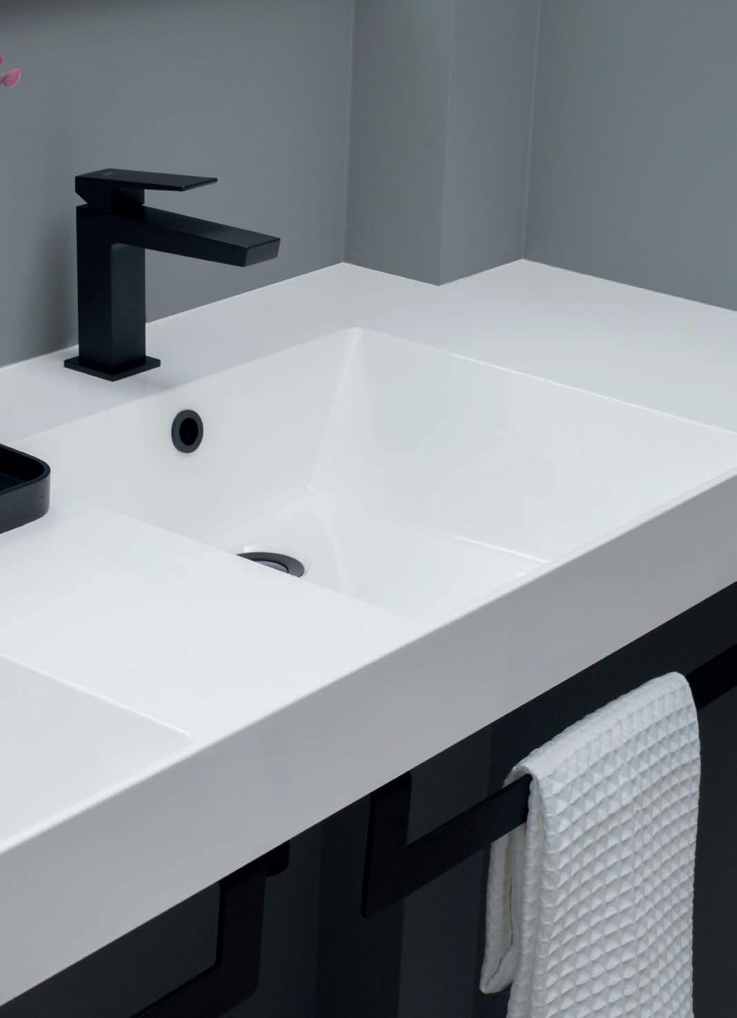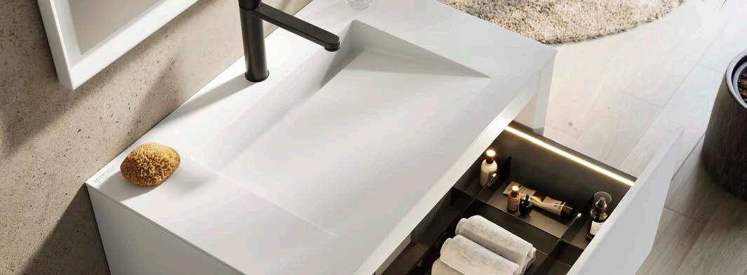 Realizado con Krion Shell® con un diseño elegante y encastrable, está disponible en diferentes tamaños y también a medida.