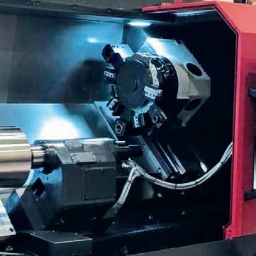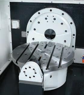 Kombinace velkého dosahu obráběcích možností spolu s otočným stolem umožňuje stroji frézovat a vrtat v oblastech, které jsou obvykle velmi obtížně dostupné.