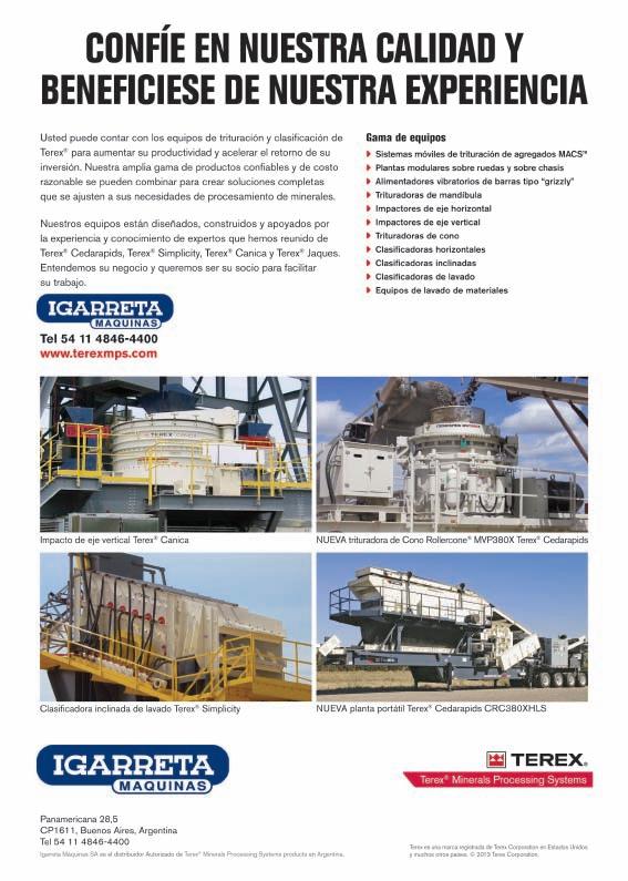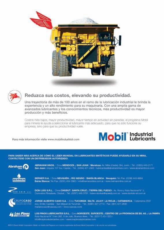 DirecciónyAdministración:PMServiciosEmpresariosS.R.L.Viamonte 21465º“A”(C1056ABH)-BuenosAiresArgentina-Suscripciones:Argentina:$350.-+IVA.Exterior:U$S300+Gastosdeenvío(quevarían segúnelpaís).PanoramaMineroesunarevistadeopinióneinformaciónminero-industrial.ConregistrodepropiedadintelectualN°91709. AfiliadaaAPTA.Circulaentreprofesionalesdetodaslasindustriasde basemineral,empresasengeneral,organismosdelEstado,institutos ycentrosdeinvestigación,universidades,representacionesdiplomáticasyproveedoresdemáquinasyequipos,NacionalesyExtranjeros. LasopinionesvertidasenestaediciónnoreflejannecesariamentelaopinióndelEditor.