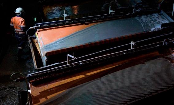 1.370milímetrosyunavelocidaddecinta de6,2metrosporsegundo,puedetransportarunas5.260toneladasdematerial porhora.Lainstalacióndetransportepor cintaeslasegundaensugéneroentodo elmundo.