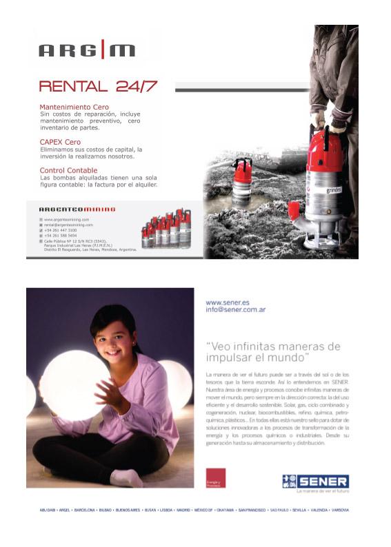 “IngenieríayMantenimientoenlaindustriaminera” estádirigidoatodalareddeprofesionalesytécnicos involucradosenelmantenimientodecentrosmineros, centrosuniversitarios,escuelastécnicasycarrerasafines,caracterizándosecomounmediográficoconcontenidosaltamentetécnicosabordadosporespecialistas deArgentinayotrospaíses.