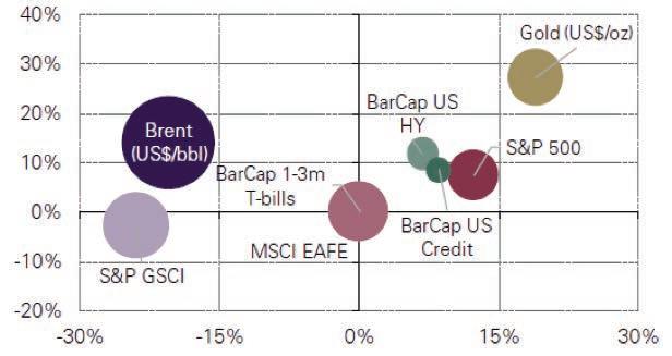 En consonancia con lo informado en el párrafo anterior, el oro ha sido uno de los activos con mejores rendimientos de 2016, sobrepasando todos los índices bursátiles y de volatilidad comparado con títulos valores ( Gráfico 1 ) Asimismo, también ha superado otros commodities como el barril de petróleo, cuyos precios han comenzado a flaquear desde fines de junio.