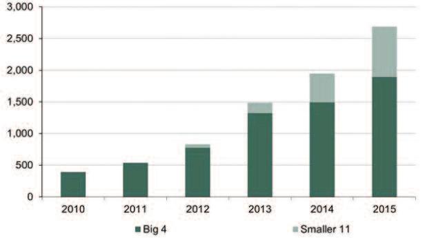 Es en este entorno que, durante la última década, China se ha convertido en el mayor productor y consumidor mundial de oro. En paralelo, ha desarrollado un importante sector bancario asociado al oro: los bancos comerciales de China son un nexo vital para su comercialización a nivel local. Asimismo, también han desarrollado una amplia variedad de negocios relacionados con el metal dorado, incrementando significativamente sus tenencias desde 2009. En el Gráfico 2 se pueden apreciar las tenencias auríferas de las quince principales instituciones bancarias, donde “Los Cuatro Grandes” 1 han cuadruplicado sus posiciones del metal dorado en un solo quinquenio.