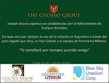 La partida de don Enrique González representa el adiós al pionero del periodismo minero argentino. Enrique González creó PANORAMA MINERO en los ’70 en momentos en que la industria era solo una promesa. En cuatro décadas forjó lazos y amistades, cultivó alianzas, y recibió elogios por la tarea titánica de crear un medio periodístico dedicado a la minería argentina y sostenerlo en el tiempo. El sector lo recuerda por cómo fue: un excelente profesional que contribuyó a la difusión de la minería argentina, y una mejor persona.