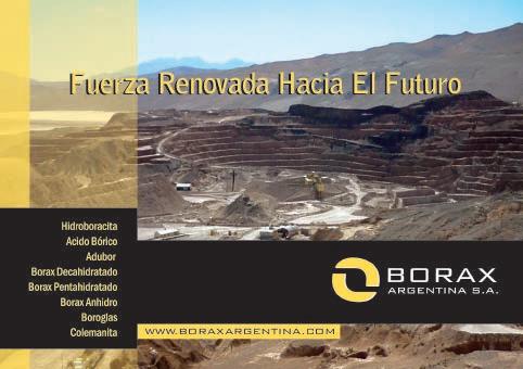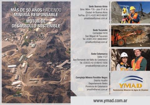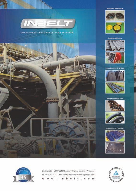 DirecciónyAdministración:PMServiciosEmpresariosS.R.L.Viamonte 21465º“A”(C1056ABH)-BuenosAiresArgentina-Suscripciones:Argentina:$350.-+IVA.Exterior:U$S300+Gastosdeenvío(quevarían segúnelpaís).PanoramaMineroesunarevistadeopinióneinformaciónminero-industrial.ConregistrodepropiedadintelectualN°91709. AfiliadaaAPTA.Circulaentreprofesionalesdetodaslasindustriasde basemineral,empresasengeneral,organismosdelEstado,institutos ycentrosdeinvestigación,universidades,representacionesdiplomáticasyproveedoresdemáquinasyequipos,NacionalesyExtranjeros. LasopinionesvertidasenestaediciónnoreflejannecesariamentelaopinióndelEditor.