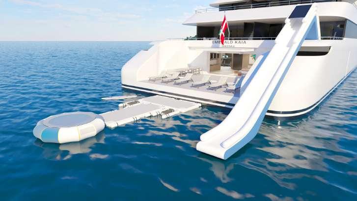 projetada sobre uma encosta natural que imita a praia, além de uma ponte que permite aos hóspedes atravessar o local. O espaço ainda conta com três toboáguas, uma mini piscina coberta e uma área de recreação aquática. Para momentos de relaxamento, há áreas especialmente projetadas, incluindo um bar aquático.