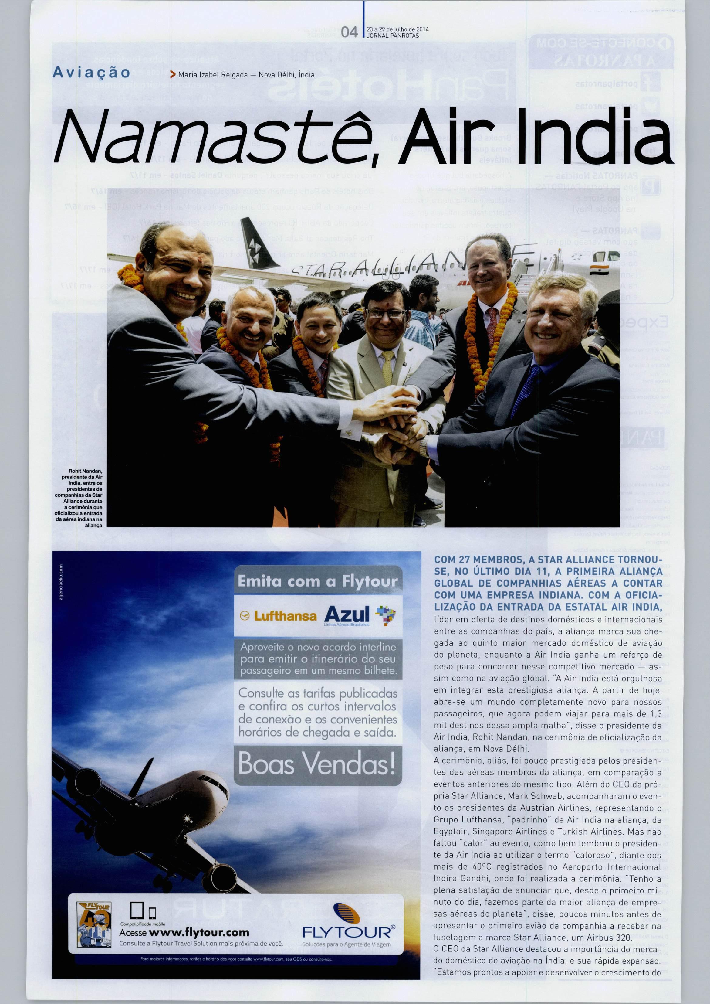 COM 27 MEMBROS, A STAR ALLIANCE TORNOUSE, NO ÚLTIMO DIA 11,A PRIMEIRA ALIANÇA GLOBALDECOMPANHIASAÉREASACONTAR COM UMA EMPRESA INDIANA. COM A OFICIA LIZAÇÃO DA ENTRADA DA ESTATAL AIR ÍNDIA, Líder em oferta de destinos domésticos e internacionais entre as companhias do país. aaLiança marca sua che gada ao quinto maior mercado doméstico de aviação do planeta, enquanto aAiríndia ganha um reforço de peso para concorrer nesse competitivo mercado as sim como na aviação global. "A Airíndia está orgulhosa em integrar esta prestigiosa aLiança.A partir de hoje, abre-se um mundo completamente novo para nossos passageiros, que agora podem viajar para mais de1,3 mil destinos dessa ampLamaLha", disse o presidente da Air índia, Rohit Nandan, na cerimônia de oficialização da aLiança, em NovaDéLhi.