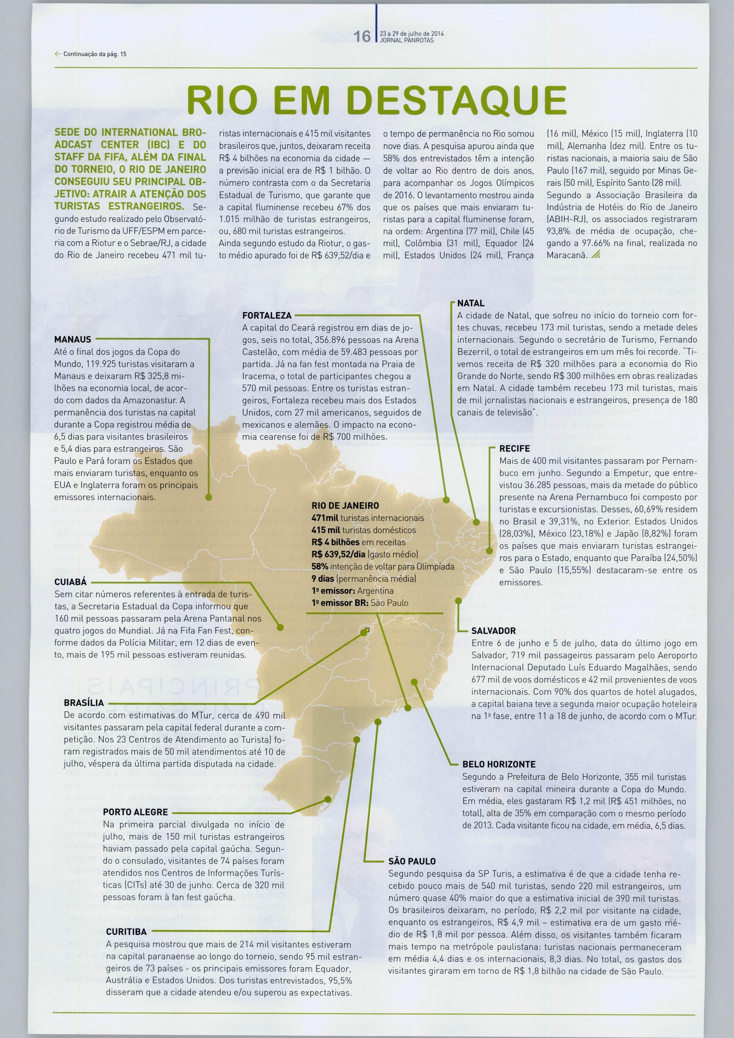 O BrasiL recebeu mais de um milhão de visitantes internacionais para a Copa do Mundo. Os resultados preliminares do evento, os números da aviação e algumas histórias vivenciadas peLos jogadores nos muitos hotéis em que se hospedaram estão neste balanço que o JP preparou sobre os31 dias do megaevento > Páginas 14a21