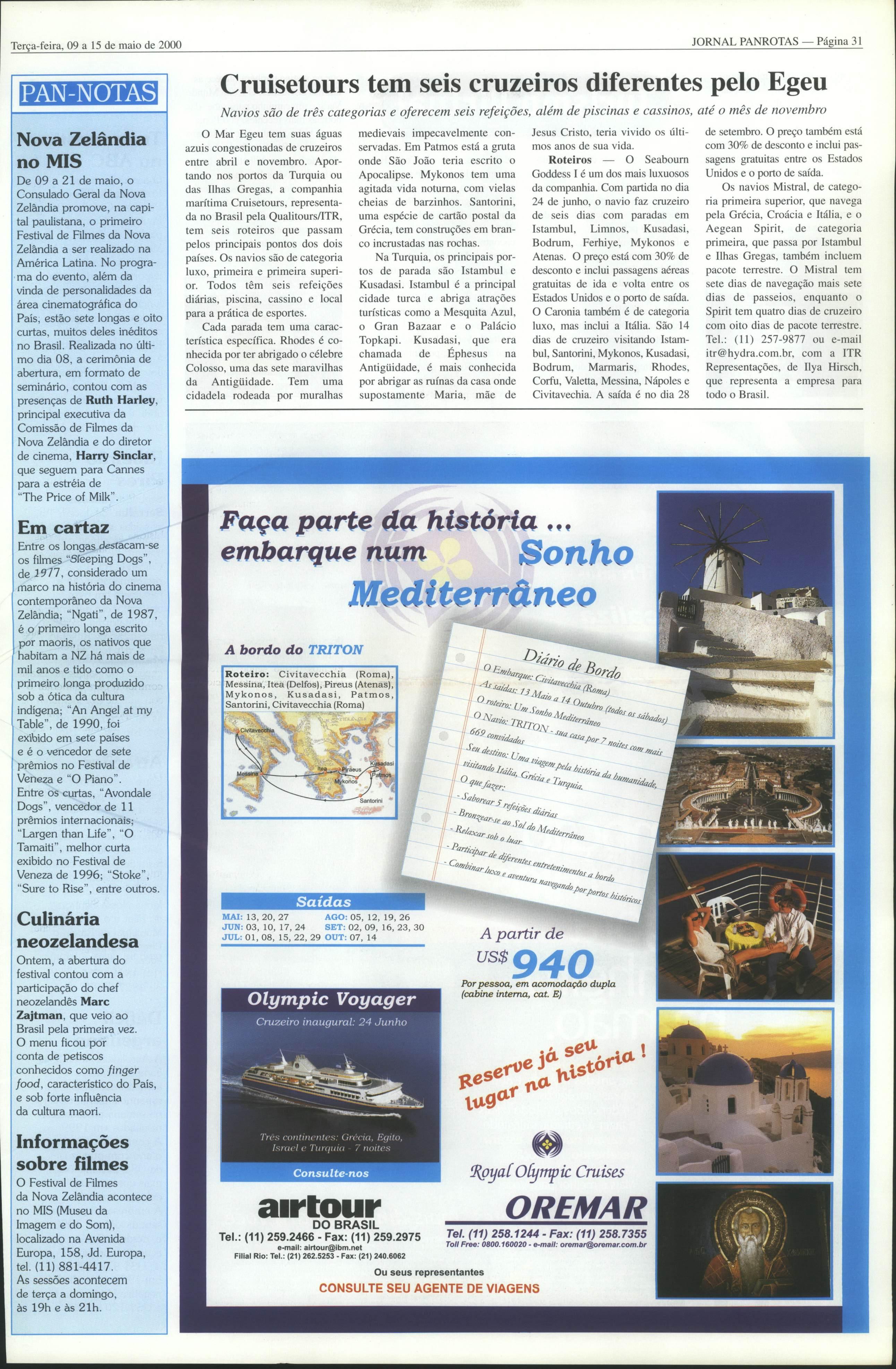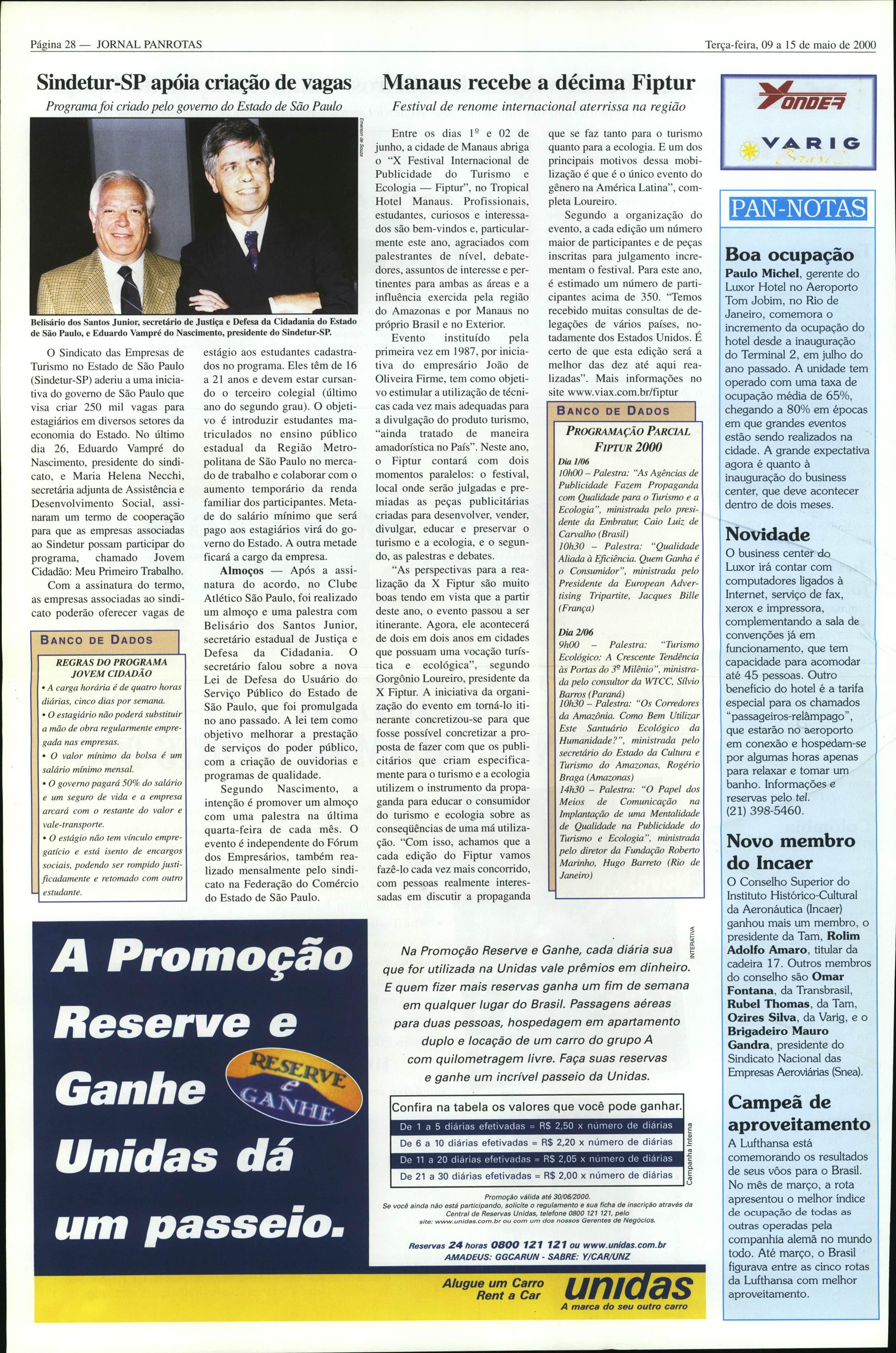 TÁ Rese«ve Wje>«eswol PPO: 0300-213-^2 W^nr 7Í PANROTAS TRAVEL ACE IMASG-iroLip CAü-fú <í<vrt-A-C«': i..L.Cr WMZ-lA-Jüi; PERIODICIDADE SEMANAL N" 393 09 A 15 DE MAIO DE 2000 Assinatura anual: 52 exemplares: R$ 96,00 - Exemplar avulso: R$ 3,00 ANO vm