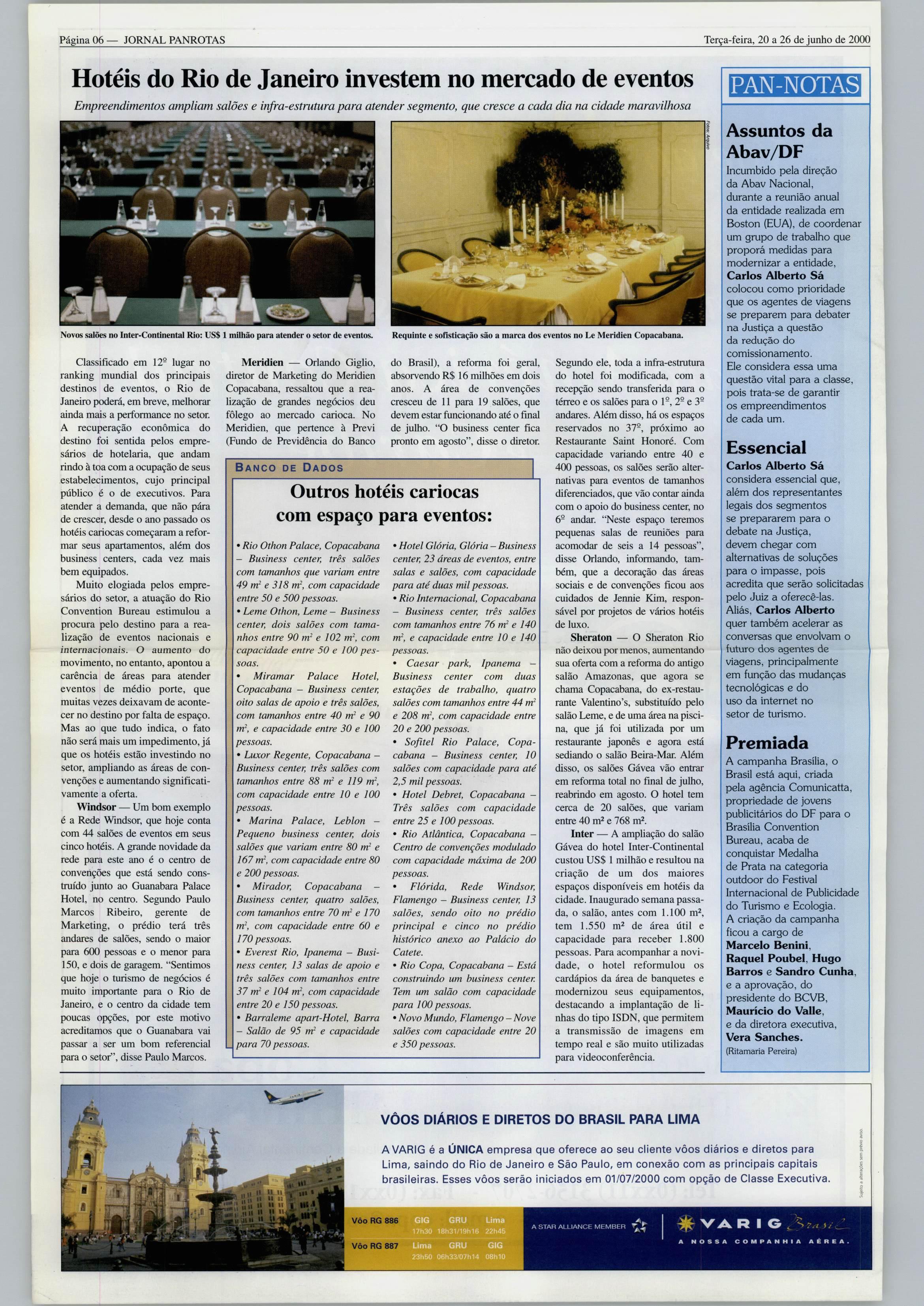 Enquanto SãoPaulo experimen ta seu boom hoteleiro, o Rio de Janeiro descobre o mercado de even toseseushotéis ampliam salas, salõeseespaçosalternativospara esse segmento. Grandes hotéis, como o Inter-Continental eo Sheraton,estãocommaisopções pararecebereventosvariados.O