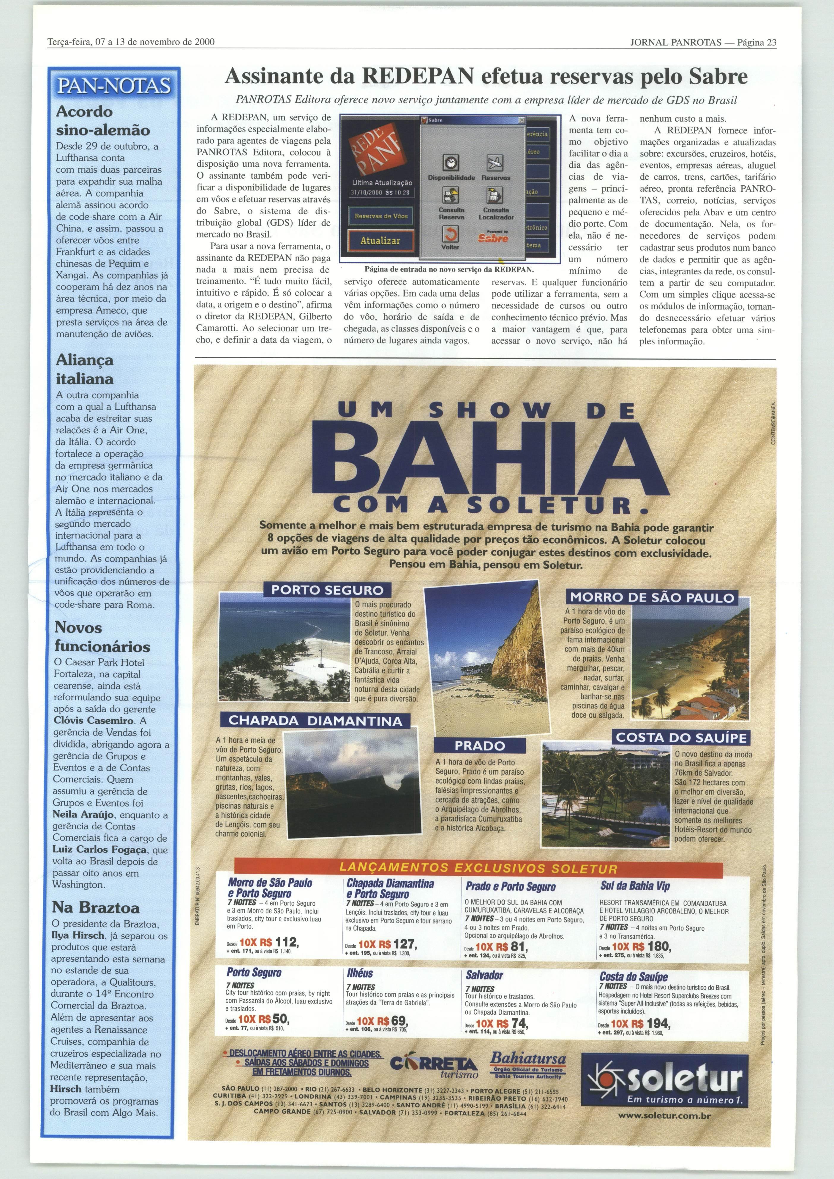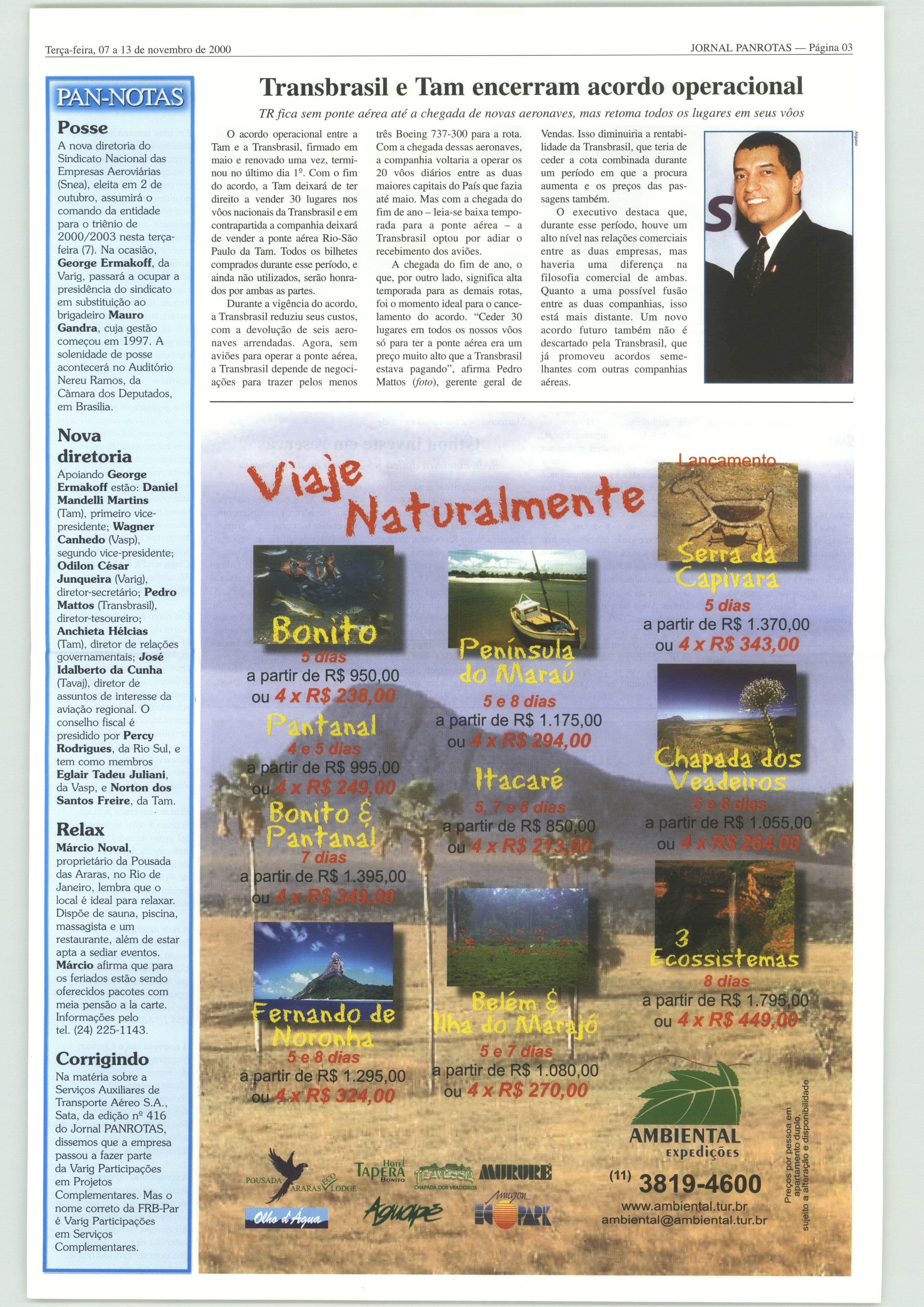 Terça-feira, 07a 13 de novembro de 2000 JORNAL PANROTAS Página 03