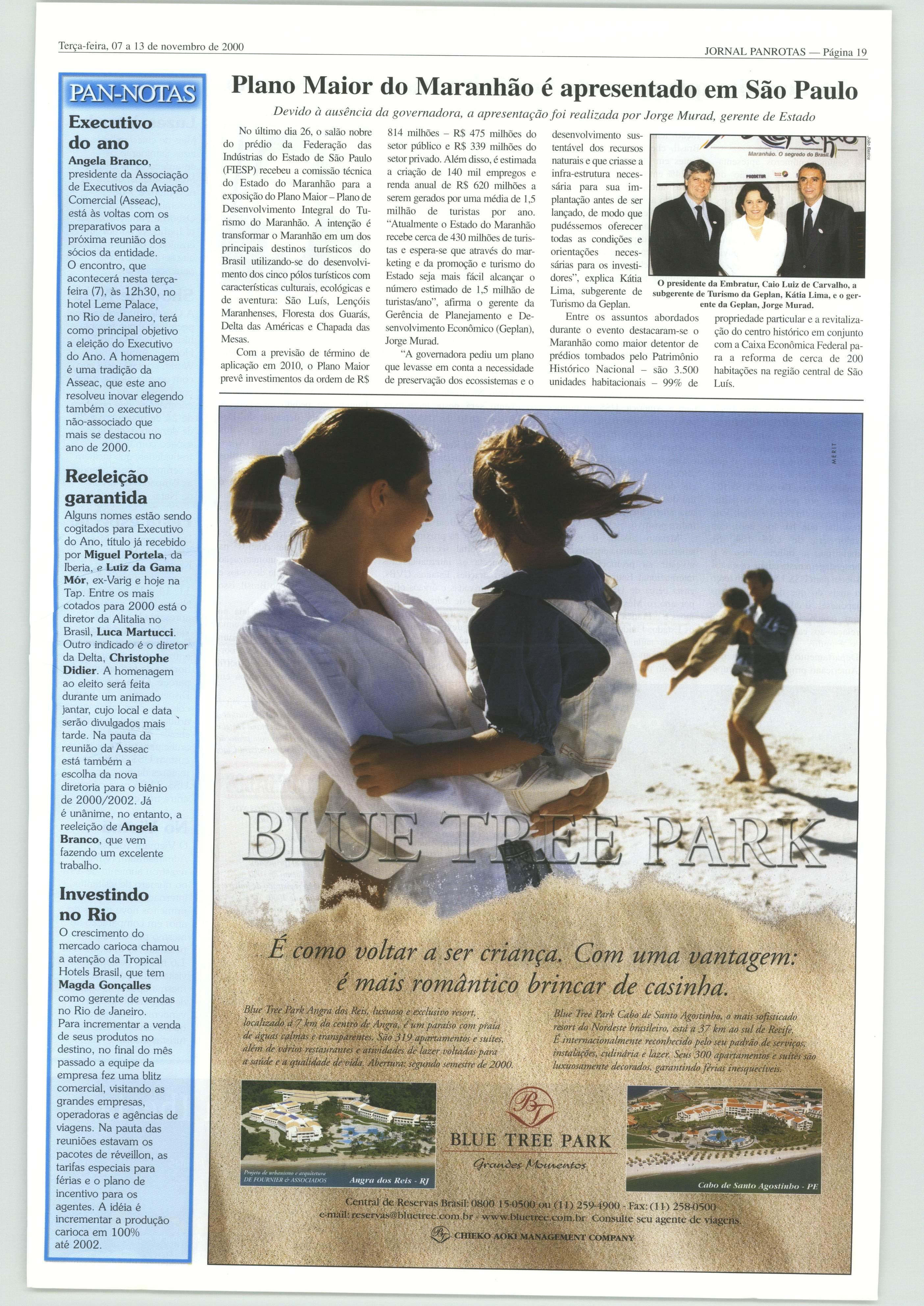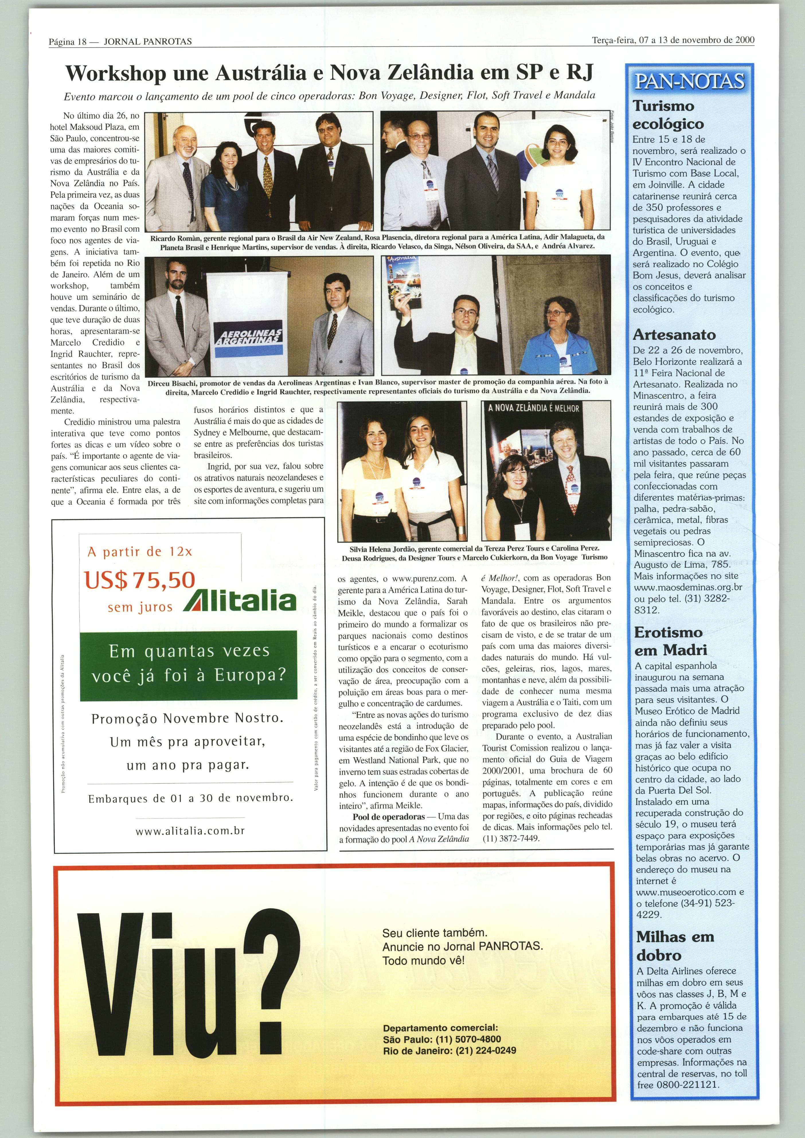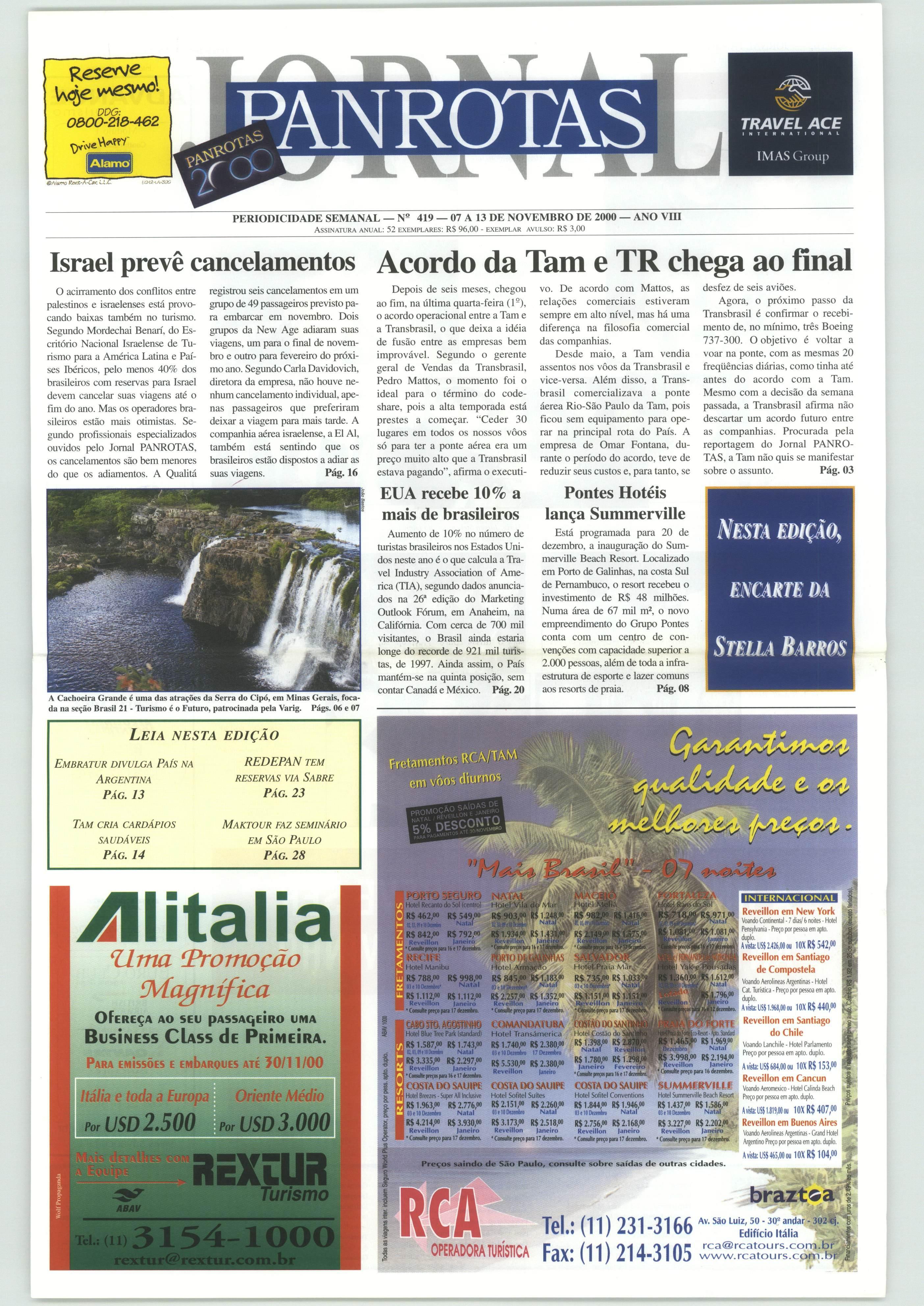 ••.-KínA-íkü T k PANROTAS oC PERIODICIDADE SEMANAL N® 419 —07A13 DE NOVEMBRO DE 2000 ANO VIII Assinatura anual: 52 exemplares: R$ 96,00 - exemplar avulso: R$3.00 TRAVEL ACE INTERNATIONAL IMAS Group
