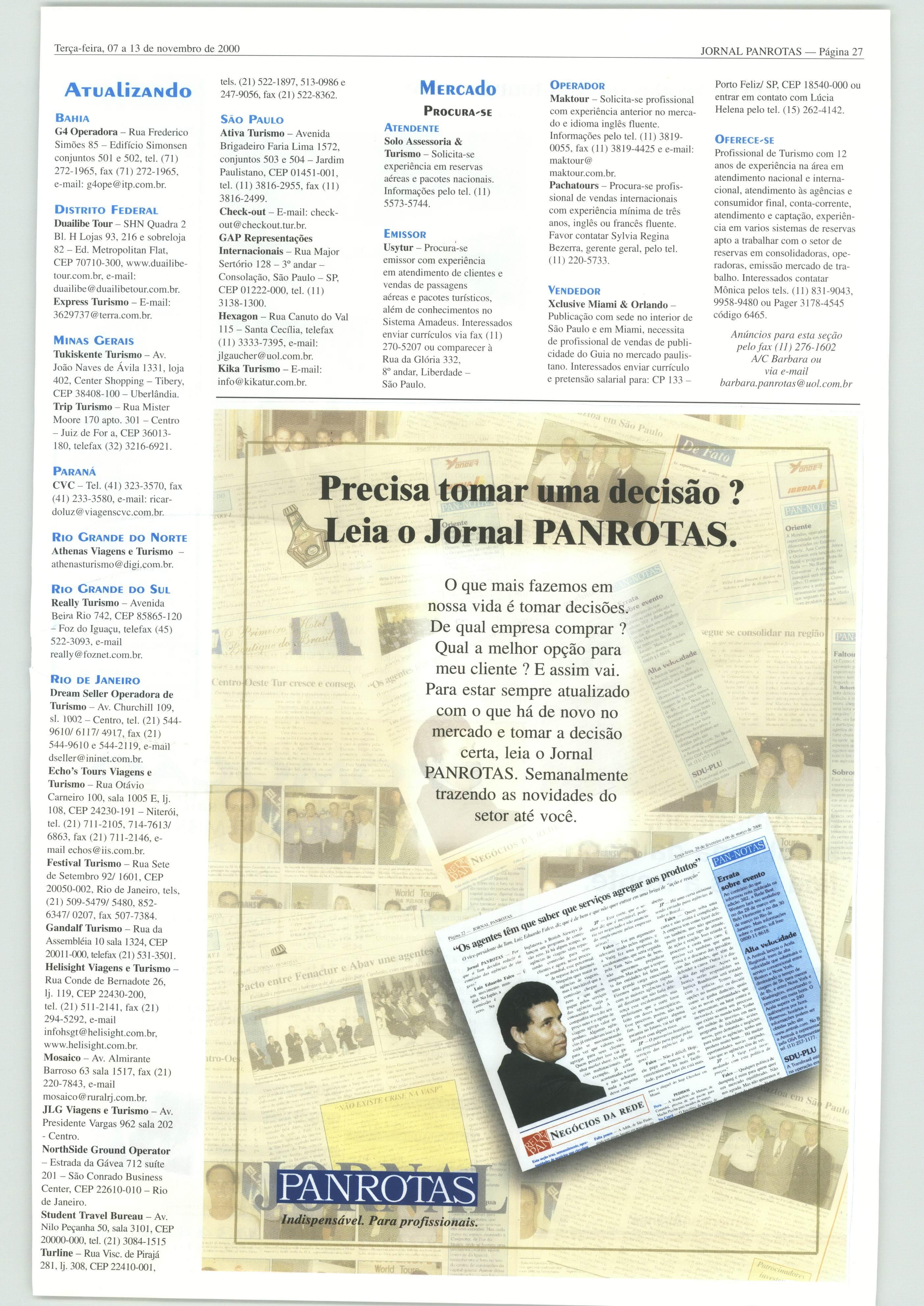 Terça-feira, 07a13de novembro de 2000 JORNAL PANROTAS Página 27