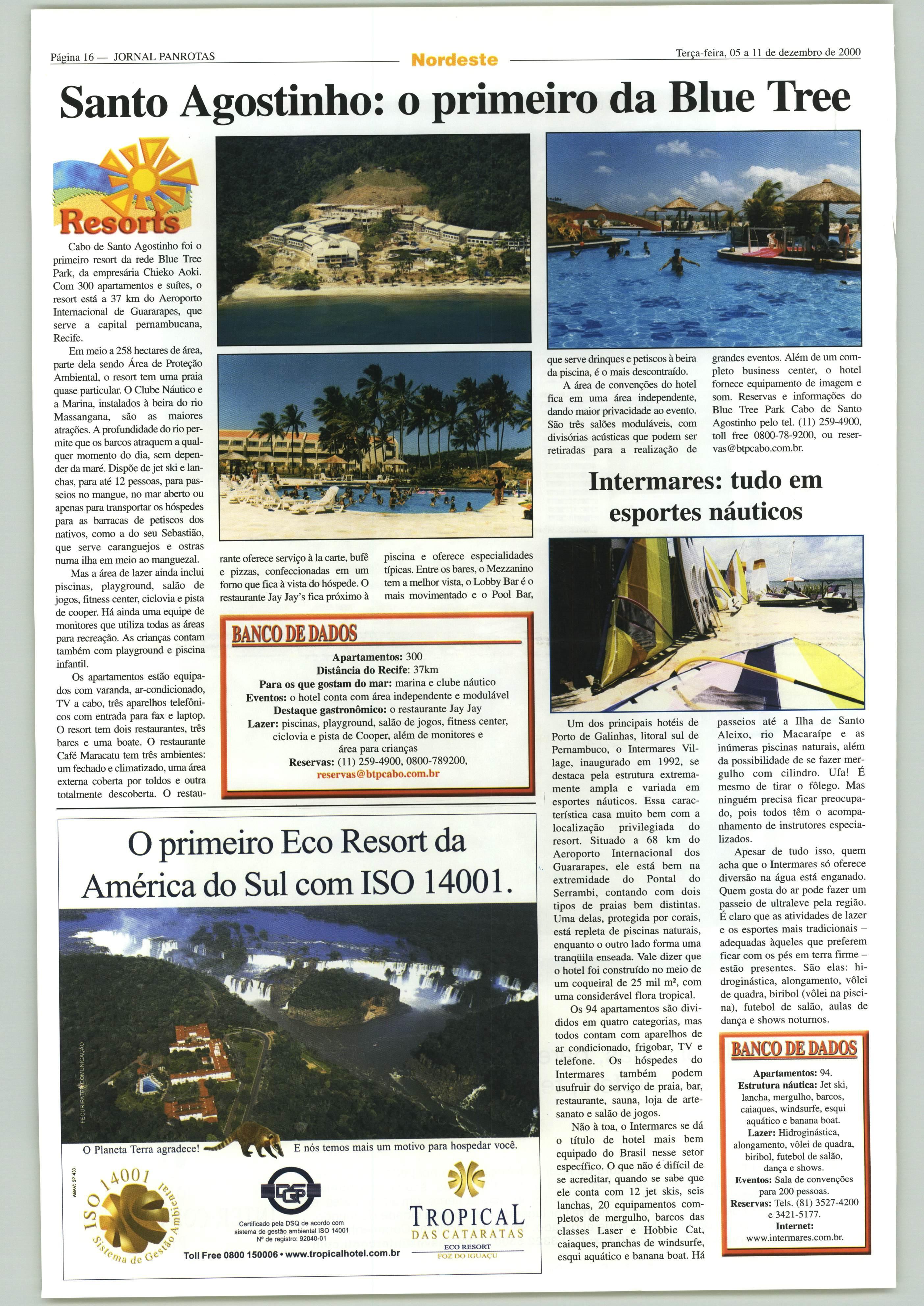 mostra as próximas inaugurações, doBlueTree Angra dosReis, nesta semana, ao Club Méd Tran coso, provavelmente em 2002. Por causa da edição especial deresorts,quesegueatéa página 36,não publicamos esta semana as colunas De Fato e PANROTAS