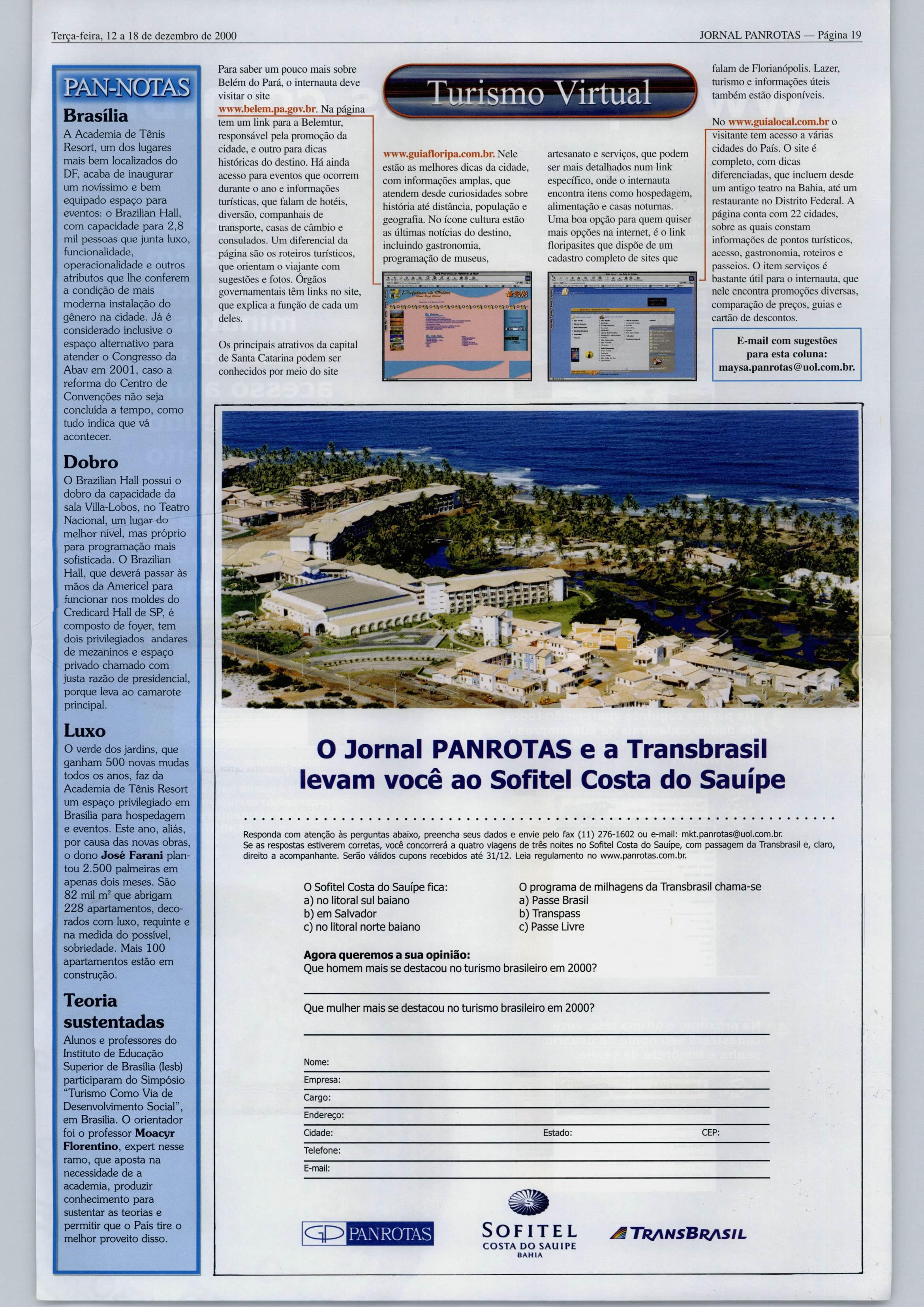 Terça-feira, 12a18de dezembro de 2000 JORNAL PANROTAS Página 03