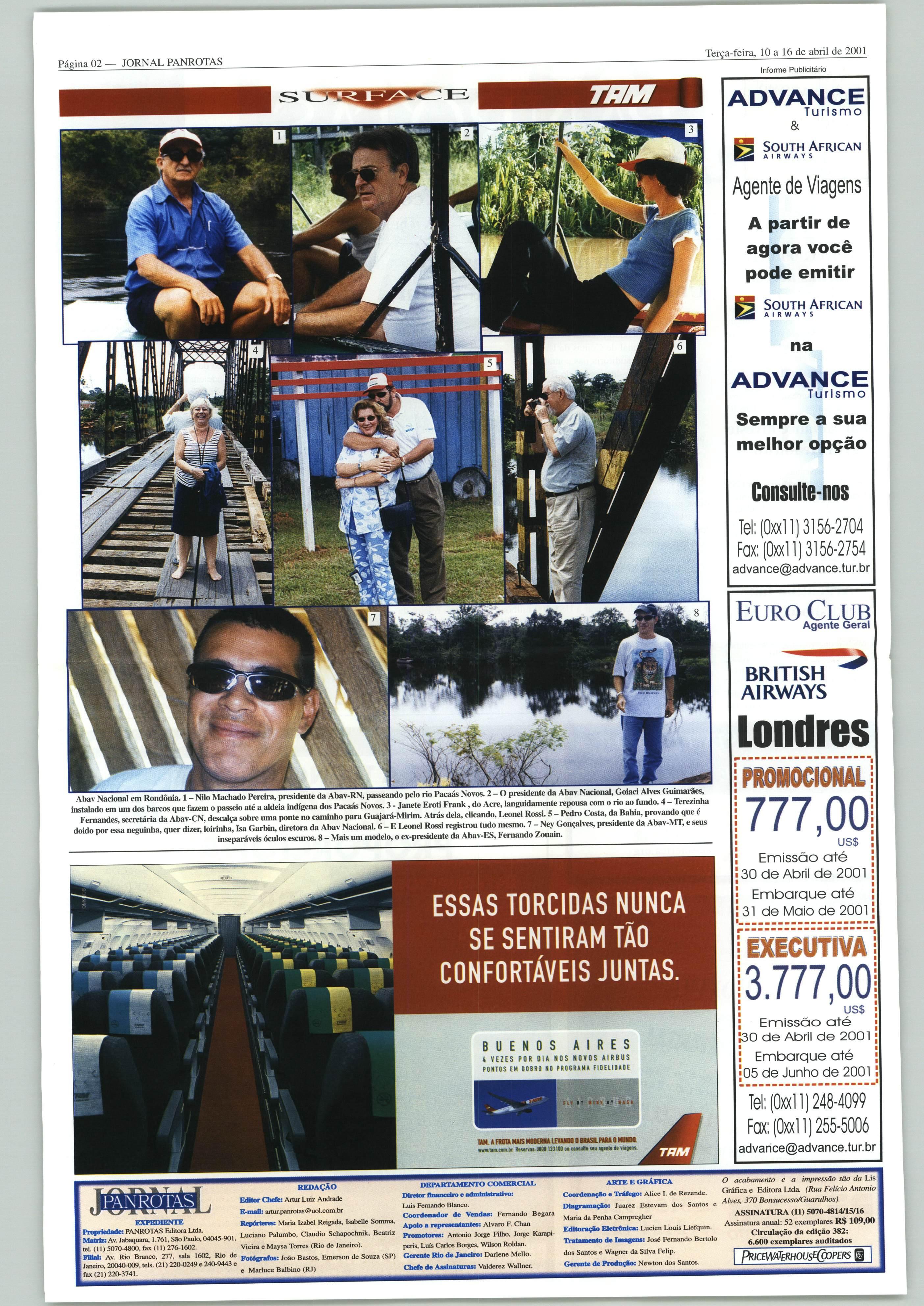 Palafitas Lodge(foto), em Guajará-Mirim. A reportagem encerra a série Brasil 2JTurismo éo Futuro, parceria daVarig com o Jornal PANROTAS, Págs. 08,09,28 e29e Sufface, na pág. 02.
