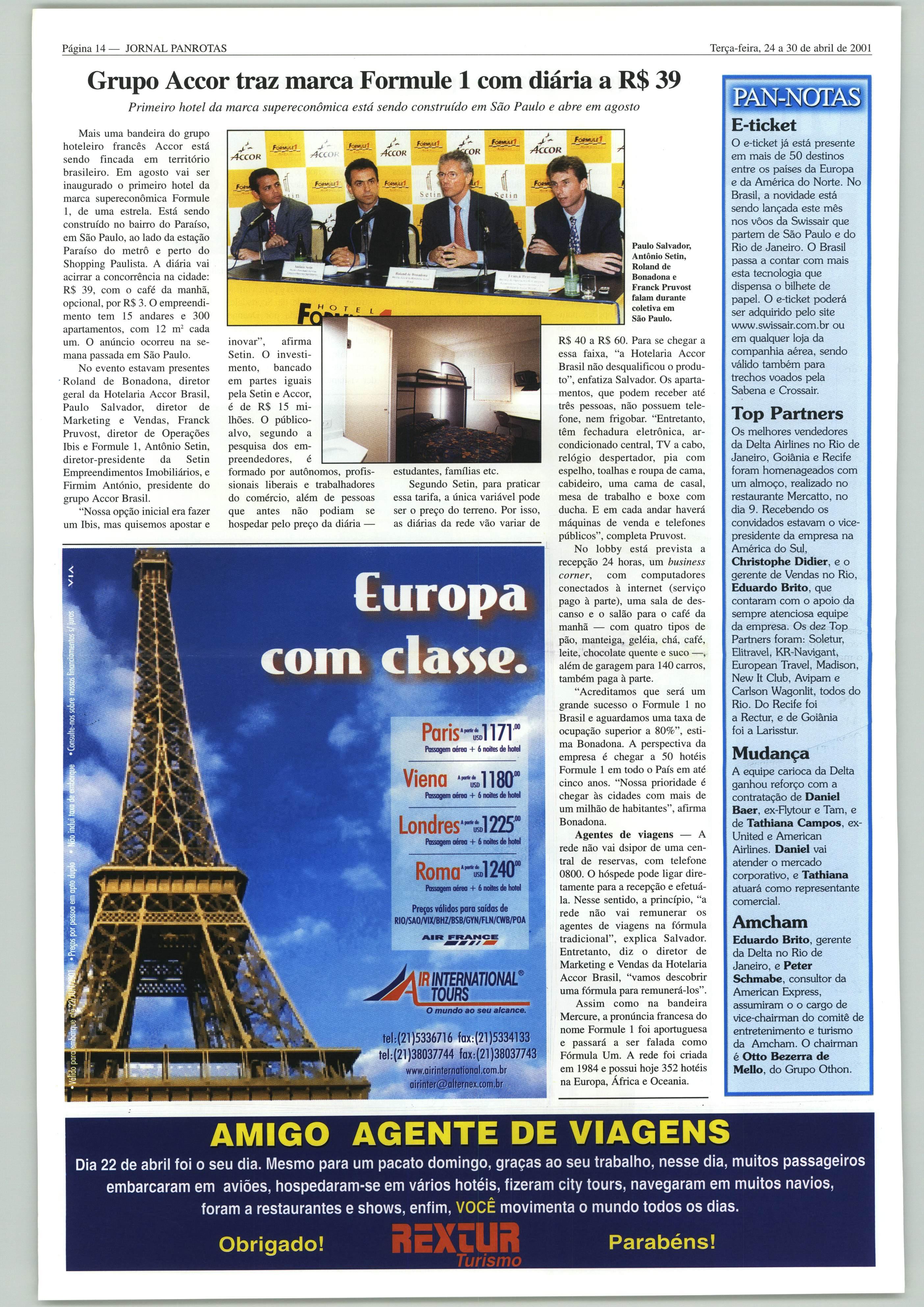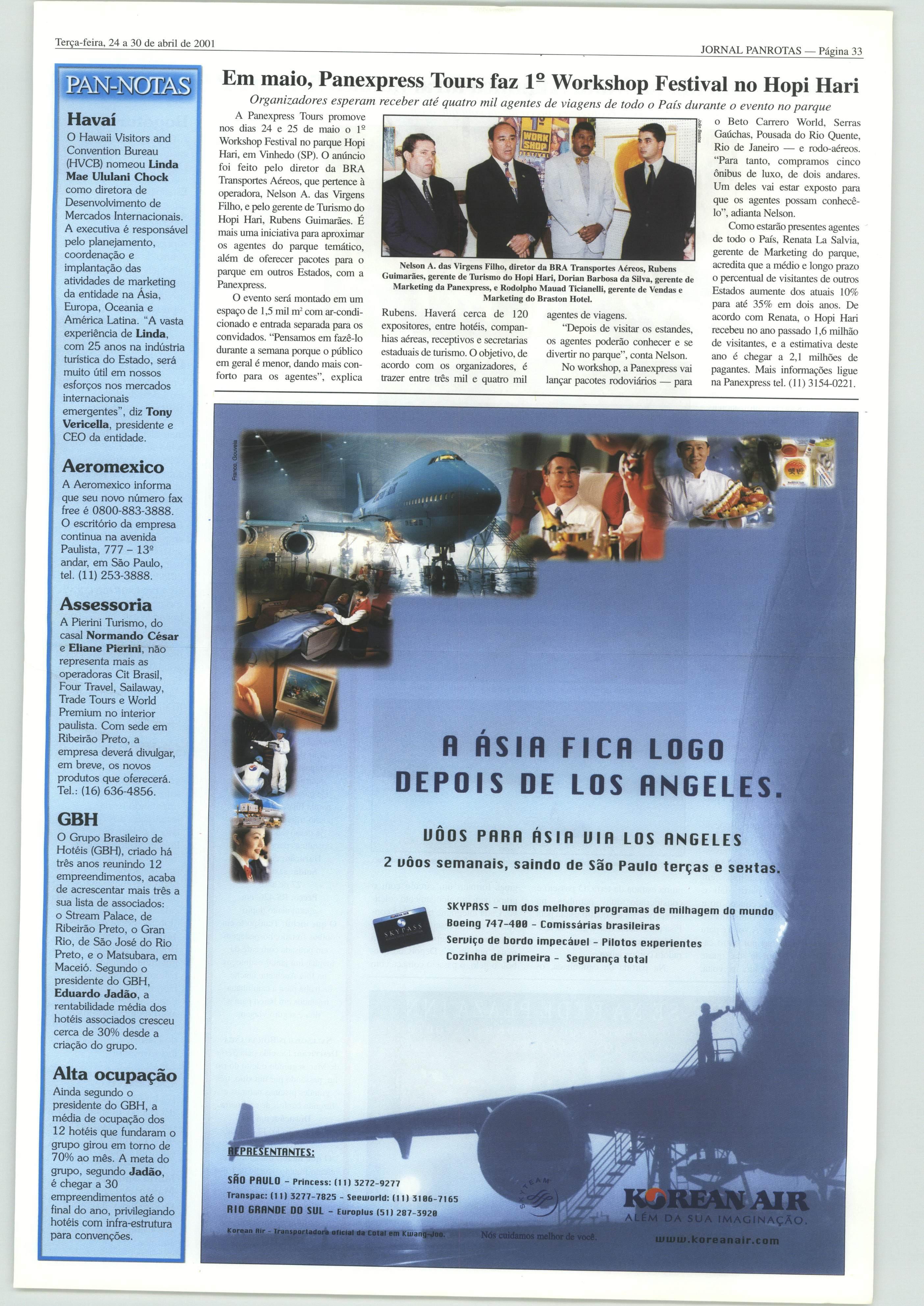 TÁ ^esewe Vs<5e PPO: 0300'213'4e2 v\í^nY PANROTAS -5^ TRAVEL ACE INTERNATIONAL IMAS CiroLin www.panrotas.com.br PERIODICIDADE SEMANAL N® 443 24 A 30 DE ABRIL DE 2001 ANO IX Assinatura anual: 52 exemplares: R$ 109,00 - exemplar avulso: R$ 3,50