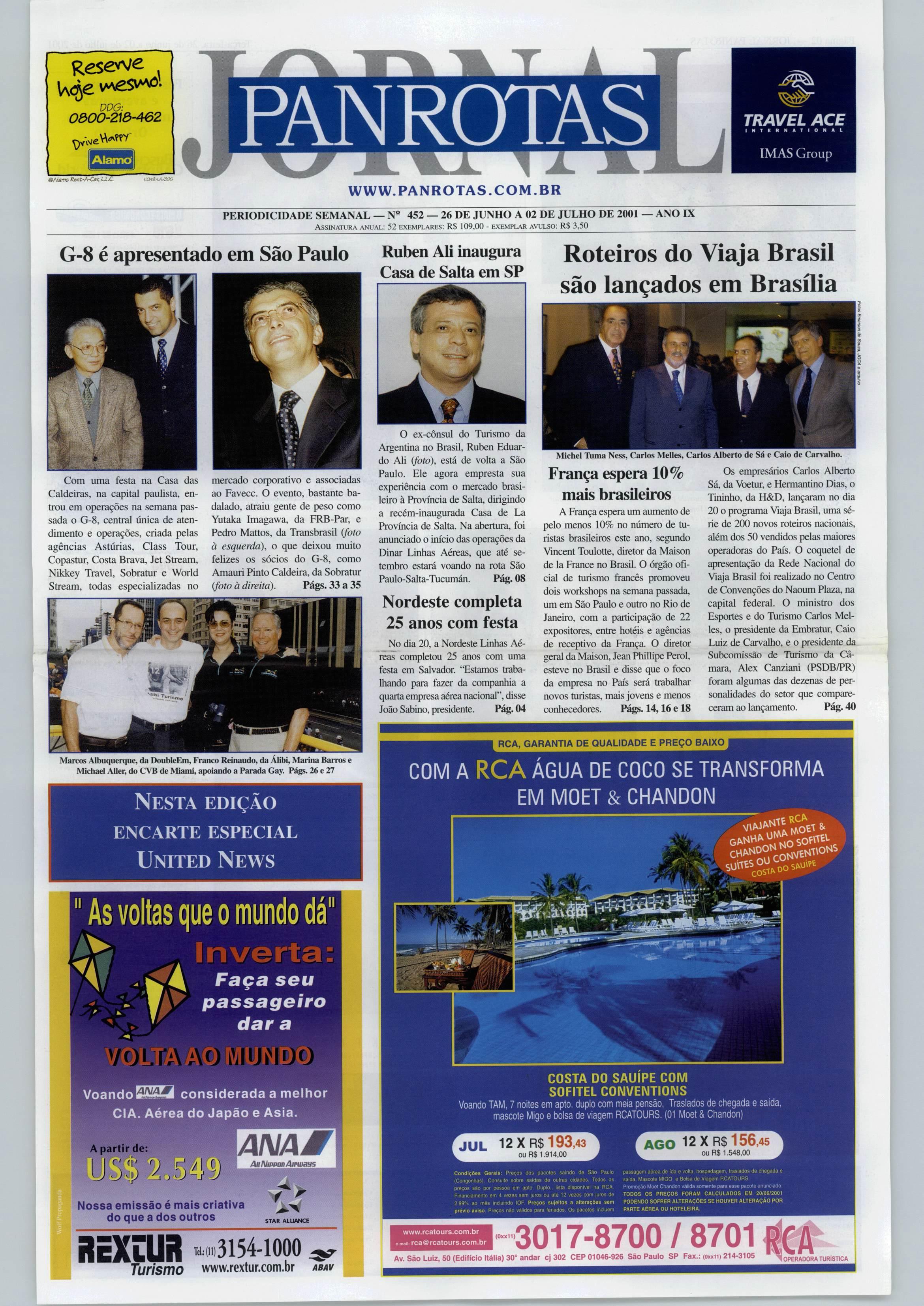 T vv\esv^ 0300'21&'462 PAN ROTAS TRAVEL ACE IMTIIINATIONAL IMAS Group Alamú KanC-A-Cf: www.panrotas.com.br PERIODICroADE SEMANAL N® 452—26 DE JUNHO A02 DE JULHO DE 2001— ANO IX Assinatura anual: 52 exemplares: R$109,00- exemplar avulso: R$3,50