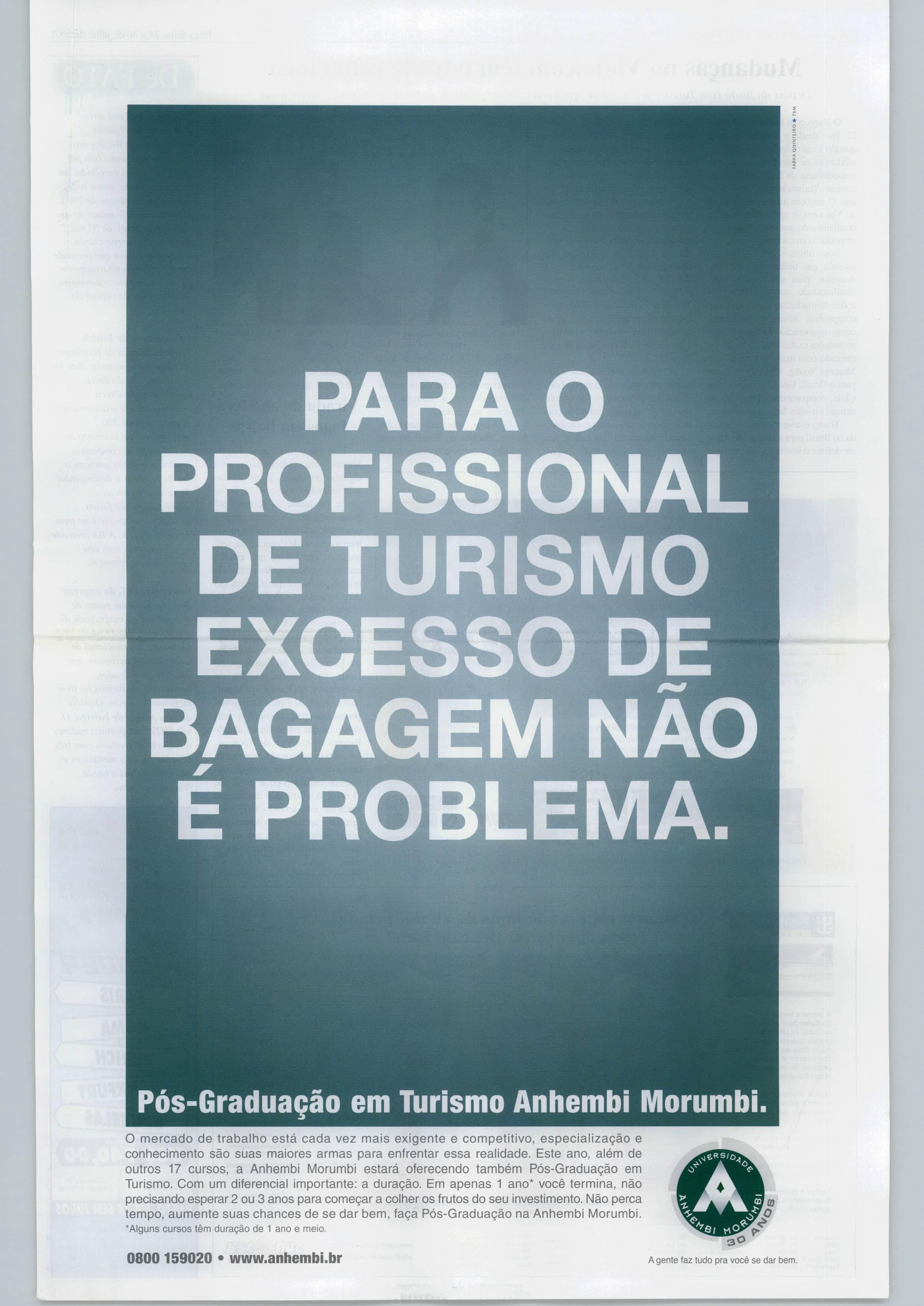 O mercado de trabalho está cada vez mais exigente e competitivo, especialização e conhecimento são suas maiores armas para enfrentar essa realidade. Este ano, além de outros 17 cursos, a Anhembi Morumbi estará oferecendo também Pós-Graduação em Turismo. Com um diferencial importante: a duração. Em apenas 1 ano* você termina, não precisando esperar 2 ou 3 anos para começar a colher os frutos do seu investimento. Não perca tempo, aumente suas chances de se dar bem, faça Pós-Graduação na Anhembi Morumbi. *Alguns cursos têm duração de1 ano emeio.