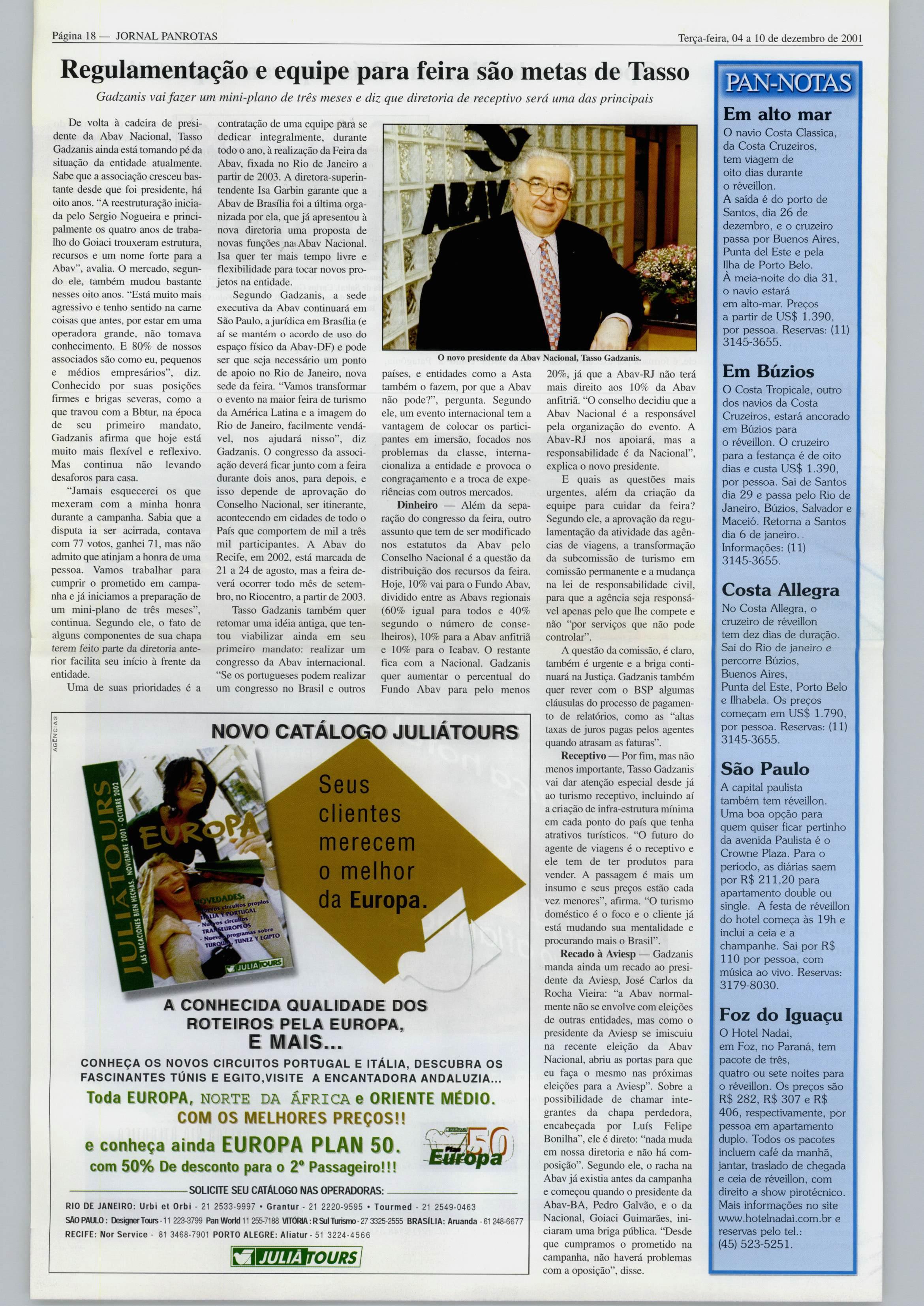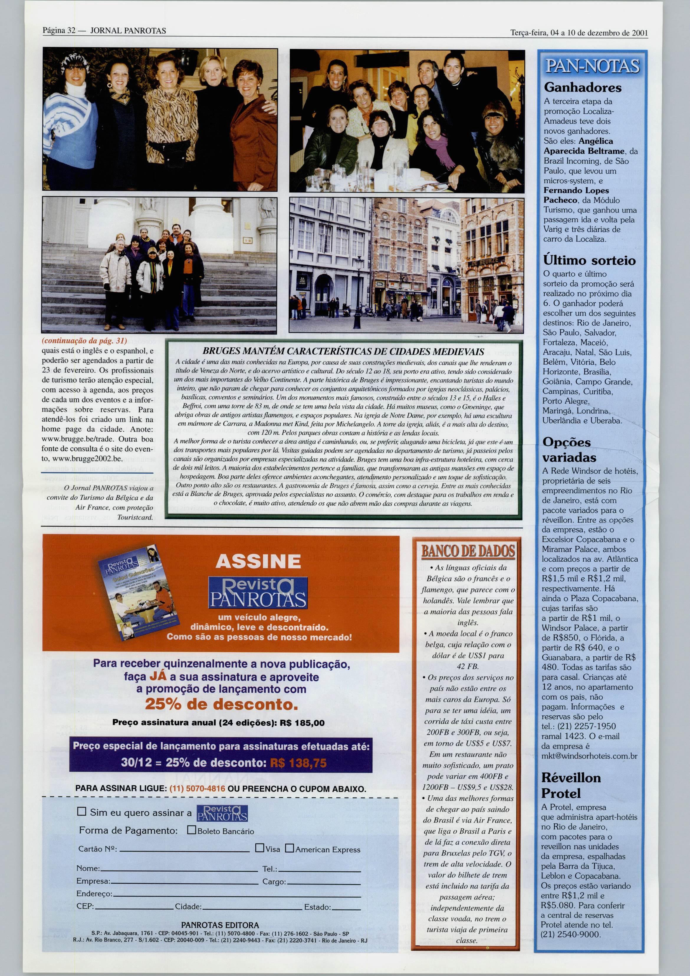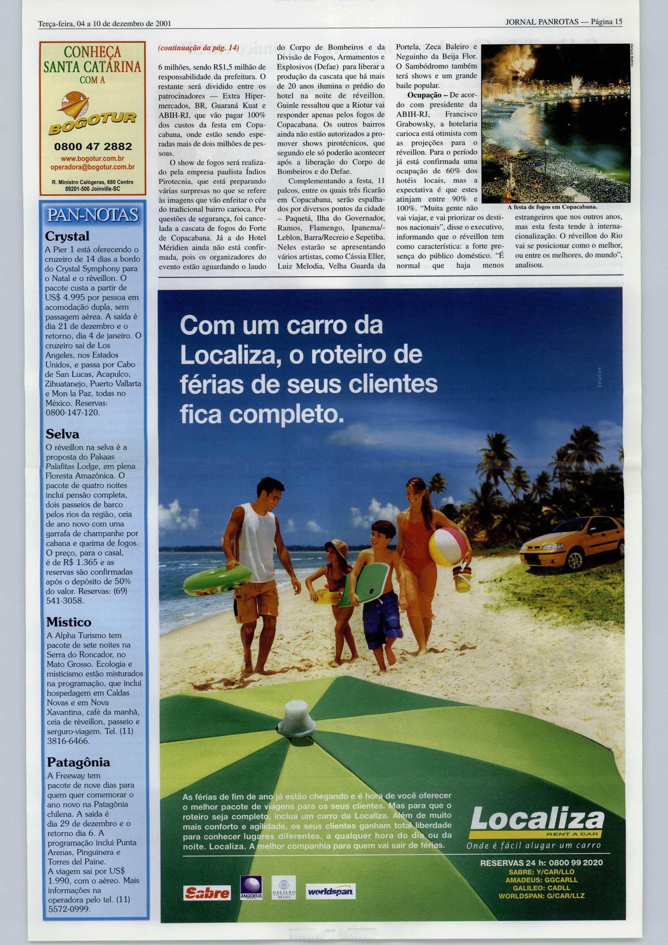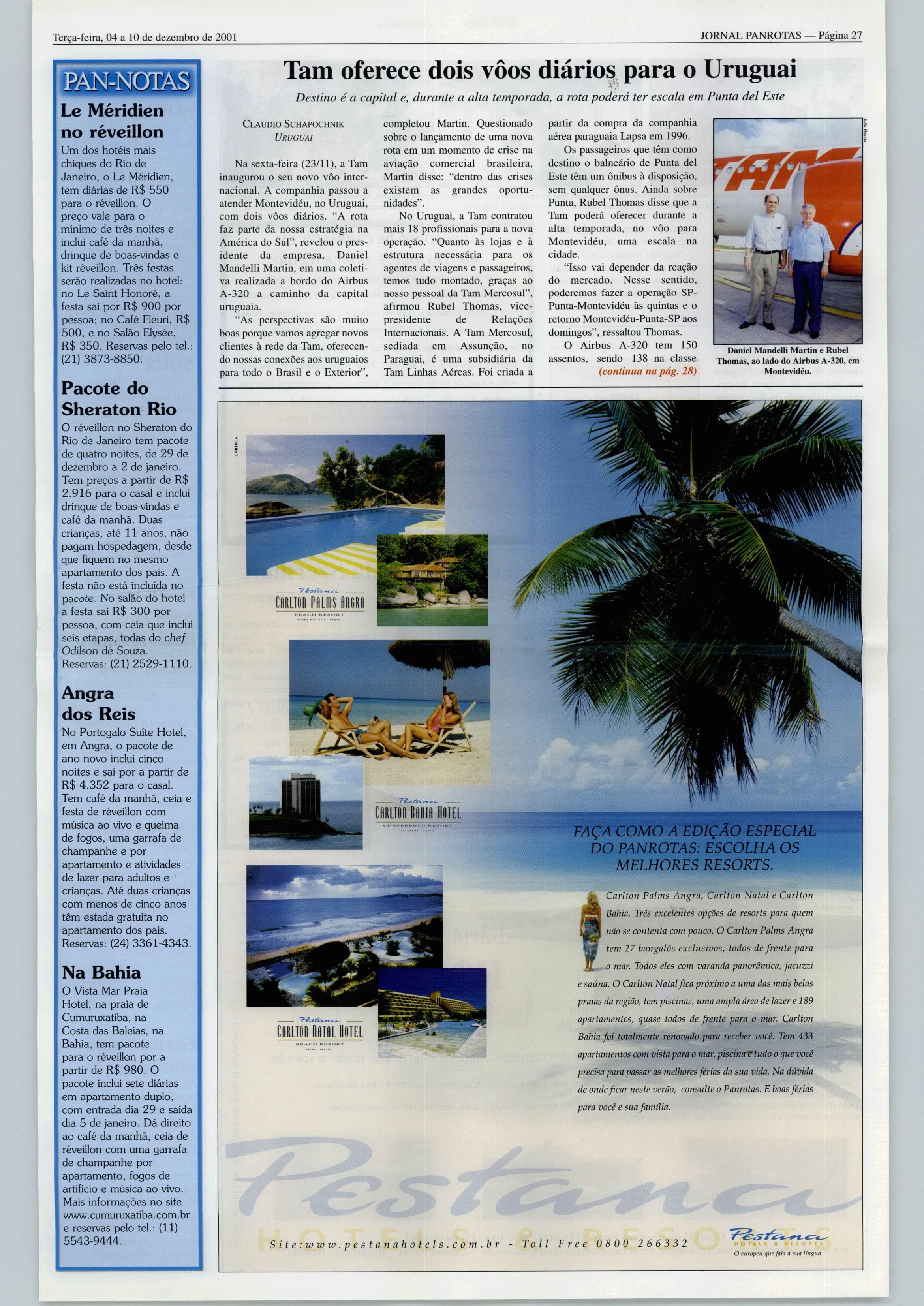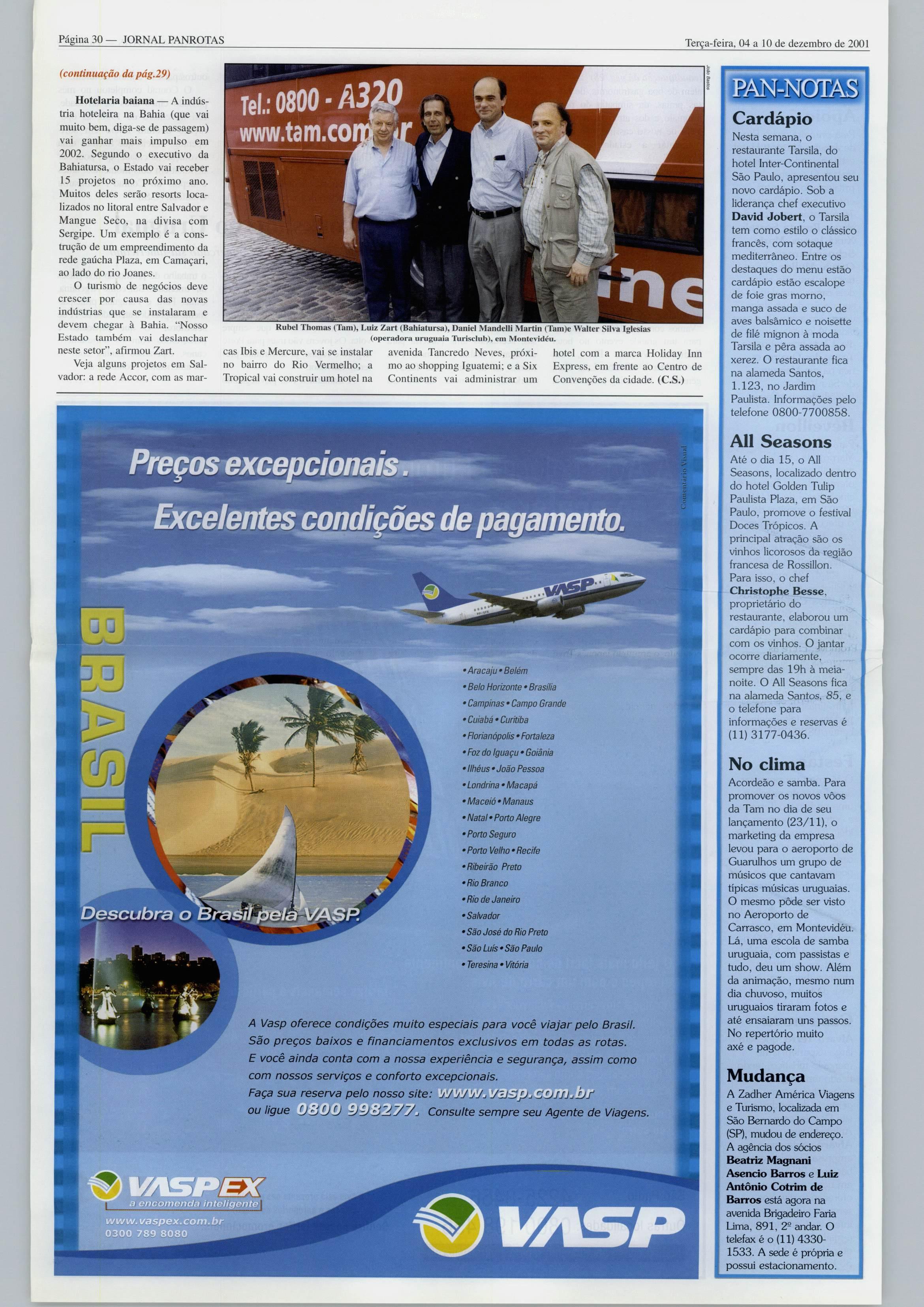 T • PDO: 0300'213'4e2 PAN ROTAS TRAVEL ACE INtCRKATIONAL IMAS Group Alamo anrt-A-Ülr: iiXi SX2-LA-K» 1 www.panrotas.com.br PERIODICroADE SEMANAL N- 475 04 A 10 DE DEZEMBRO DE 2001 ANO X Assinatura anual: 52 exemplares: RS 109.00 - exemplar avulso: R$ 3,50