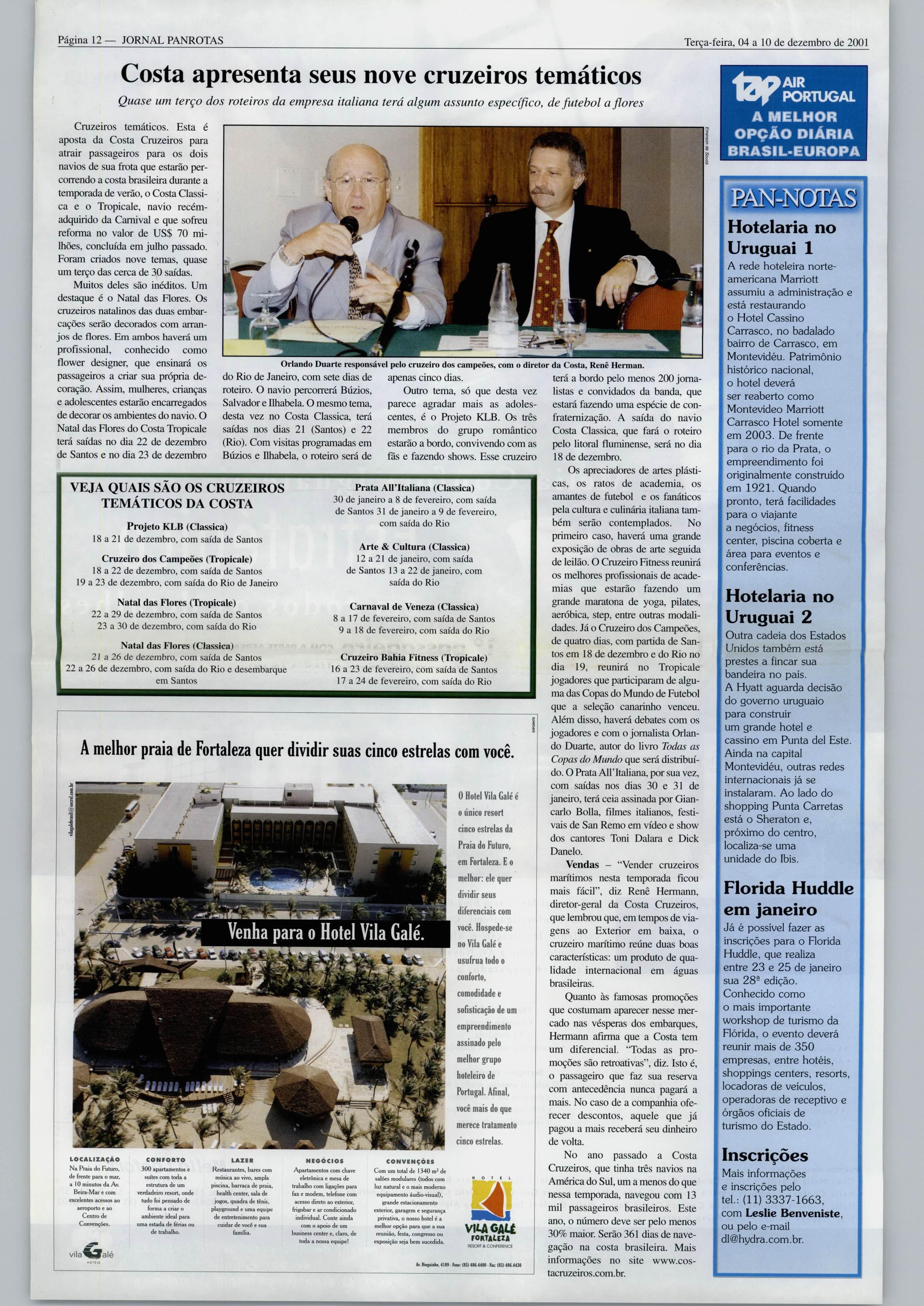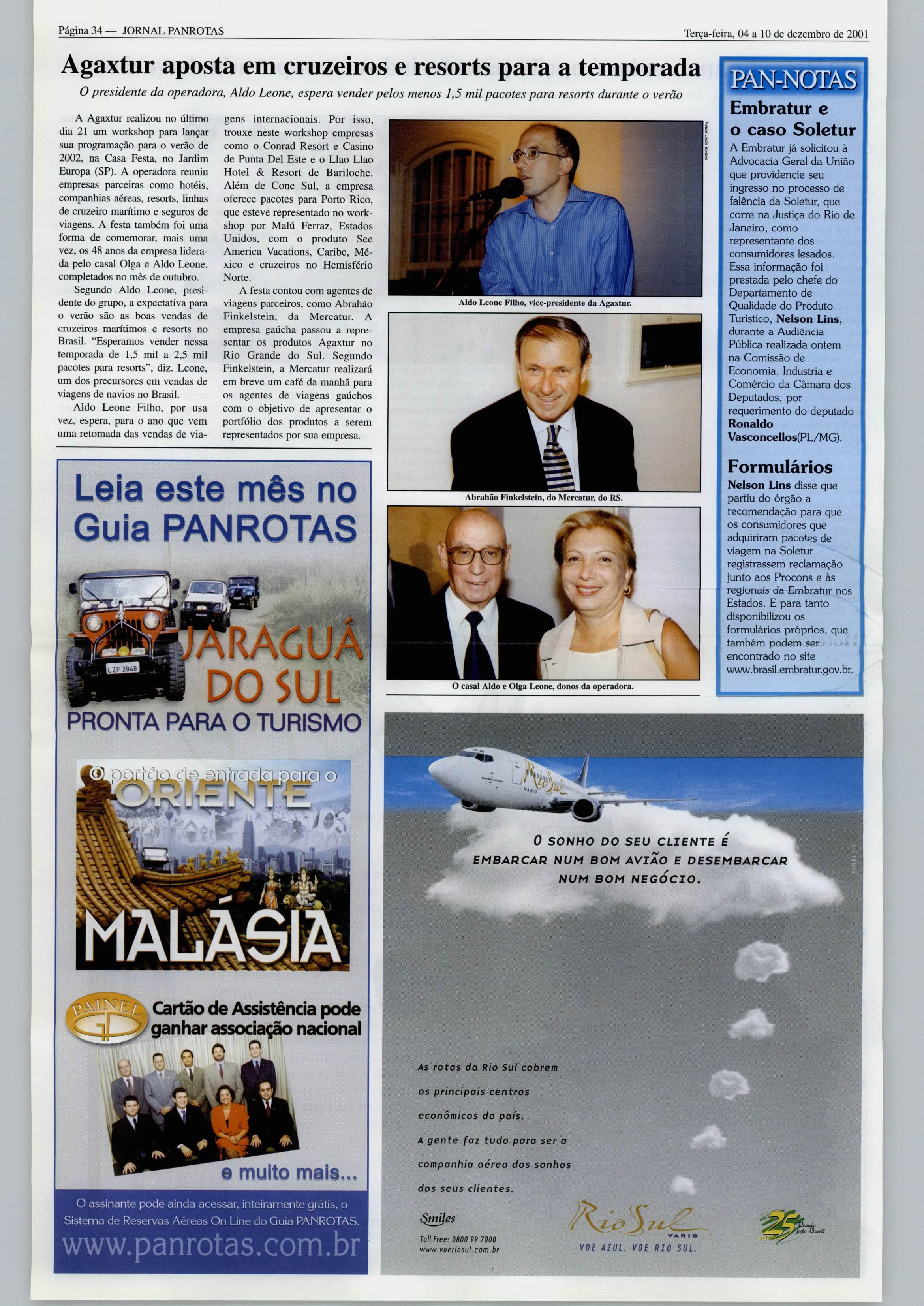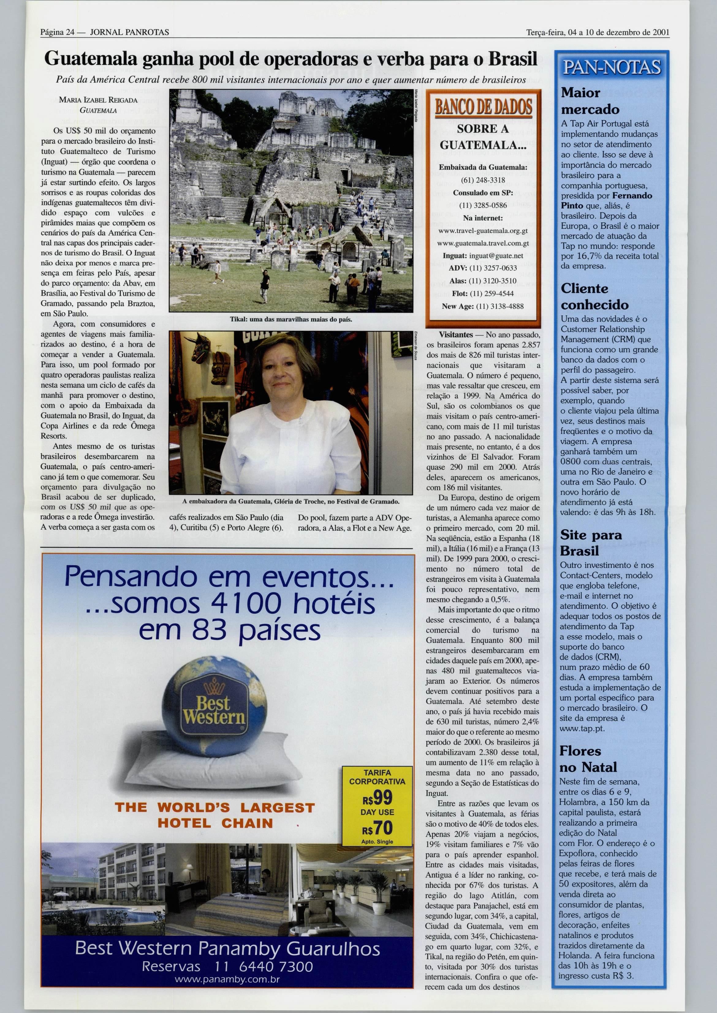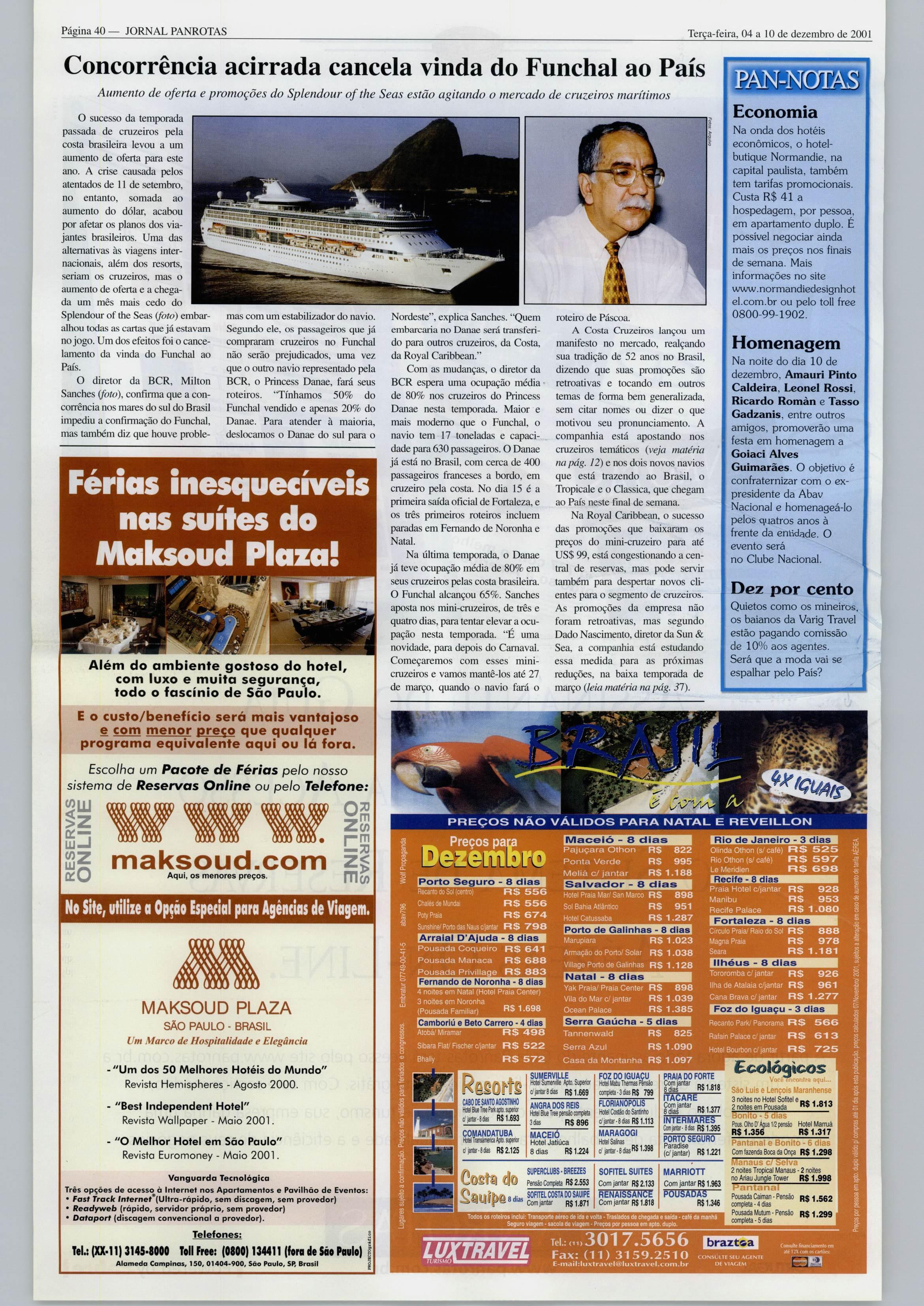 T • PDO: 0300'213'4e2 PAN ROTAS TRAVEL ACE INtCRKATIONAL IMAS Group Alamo anrt-A-Ülr: iiXi SX2-LA-K» 1 www.panrotas.com.br PERIODICroADE SEMANAL N- 475 04 A 10 DE DEZEMBRO DE 2001 ANO X Assinatura anual: 52 exemplares: RS 109.00 - exemplar avulso: R$ 3,50