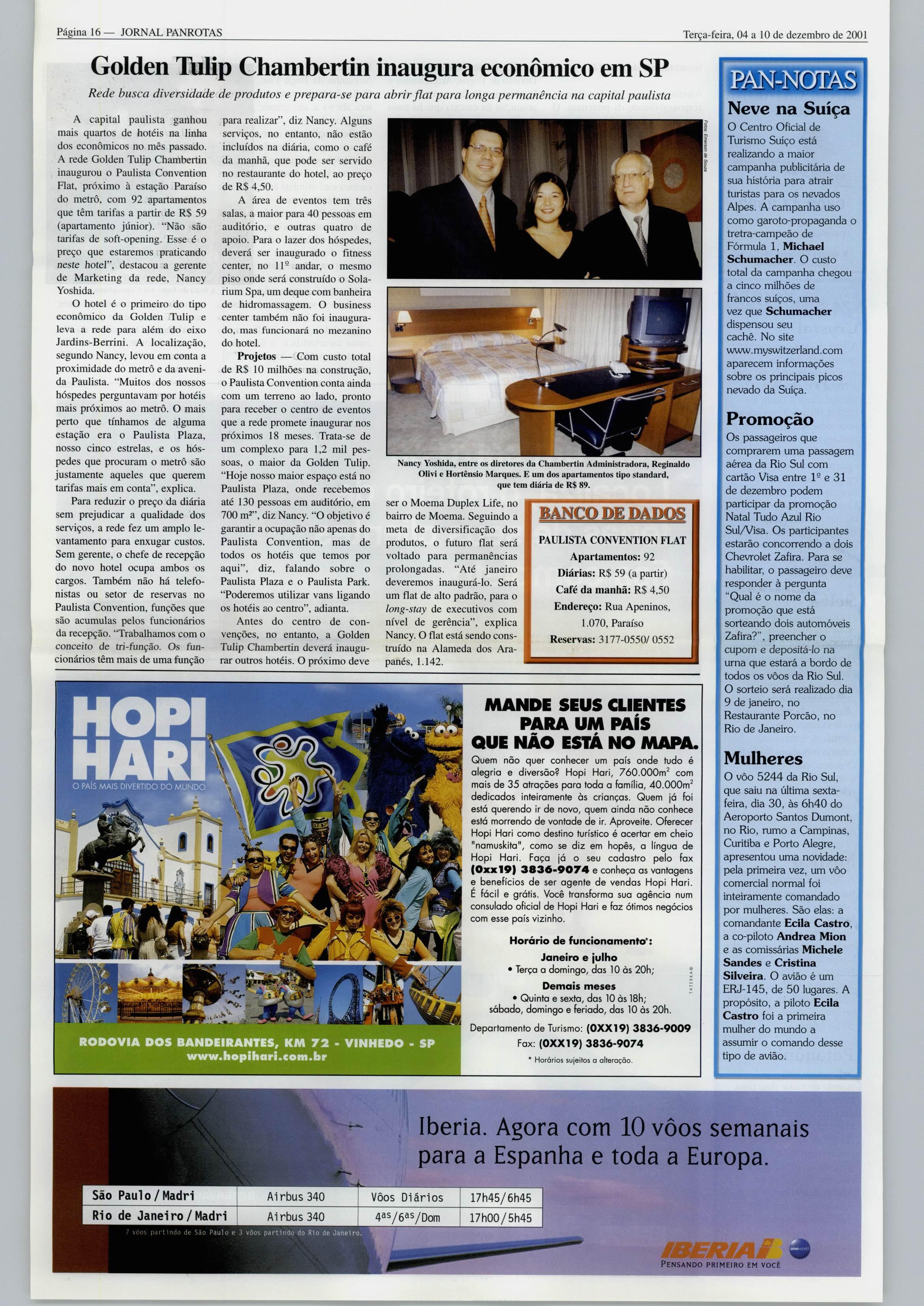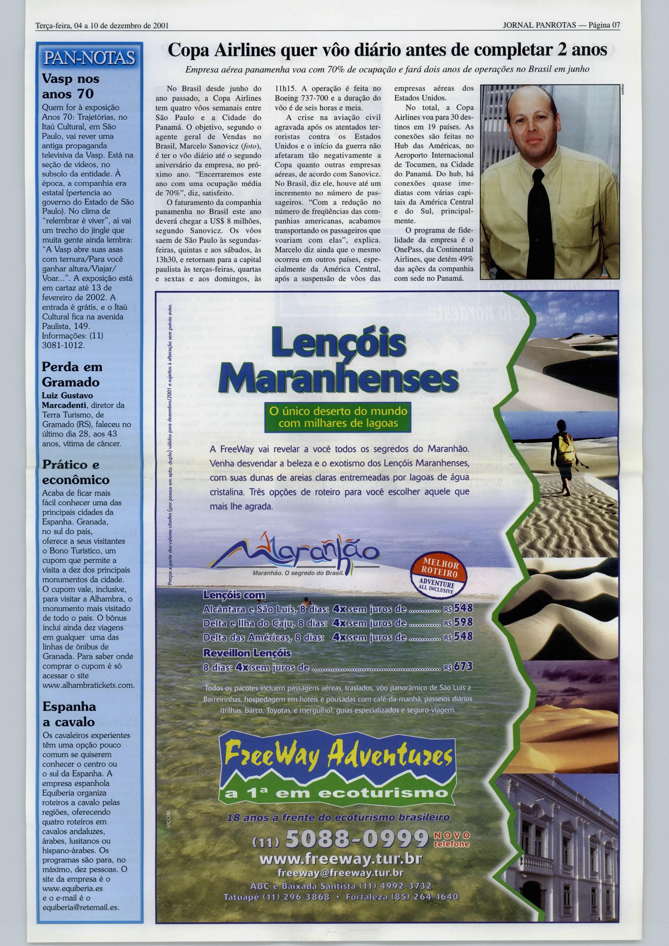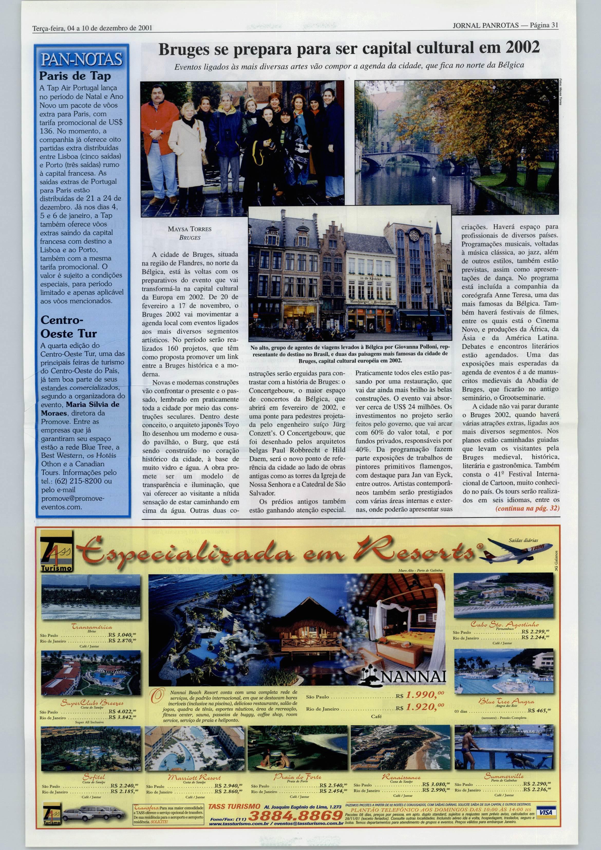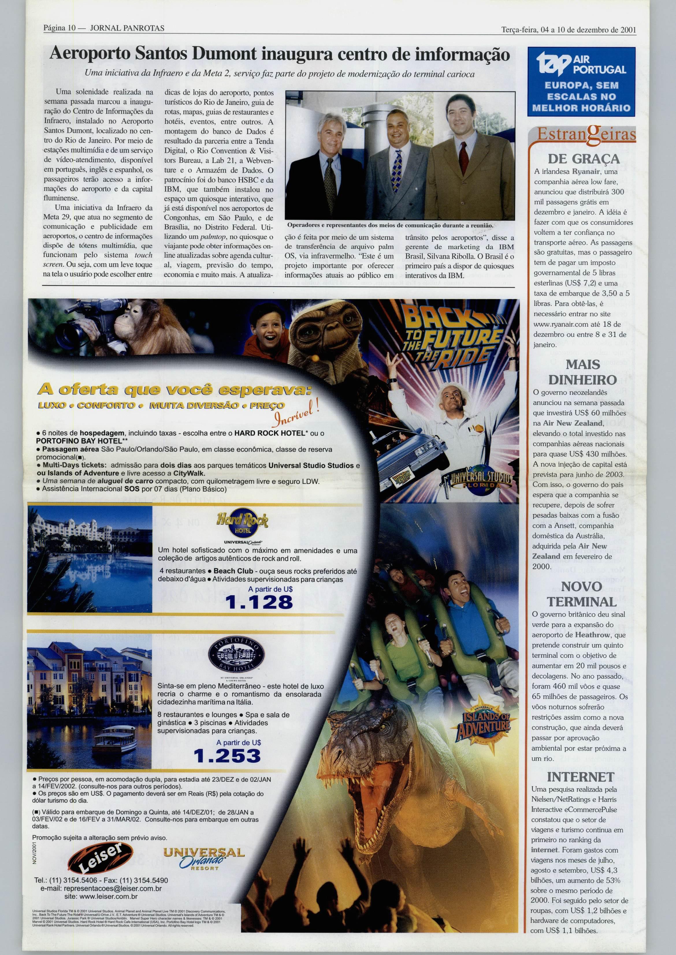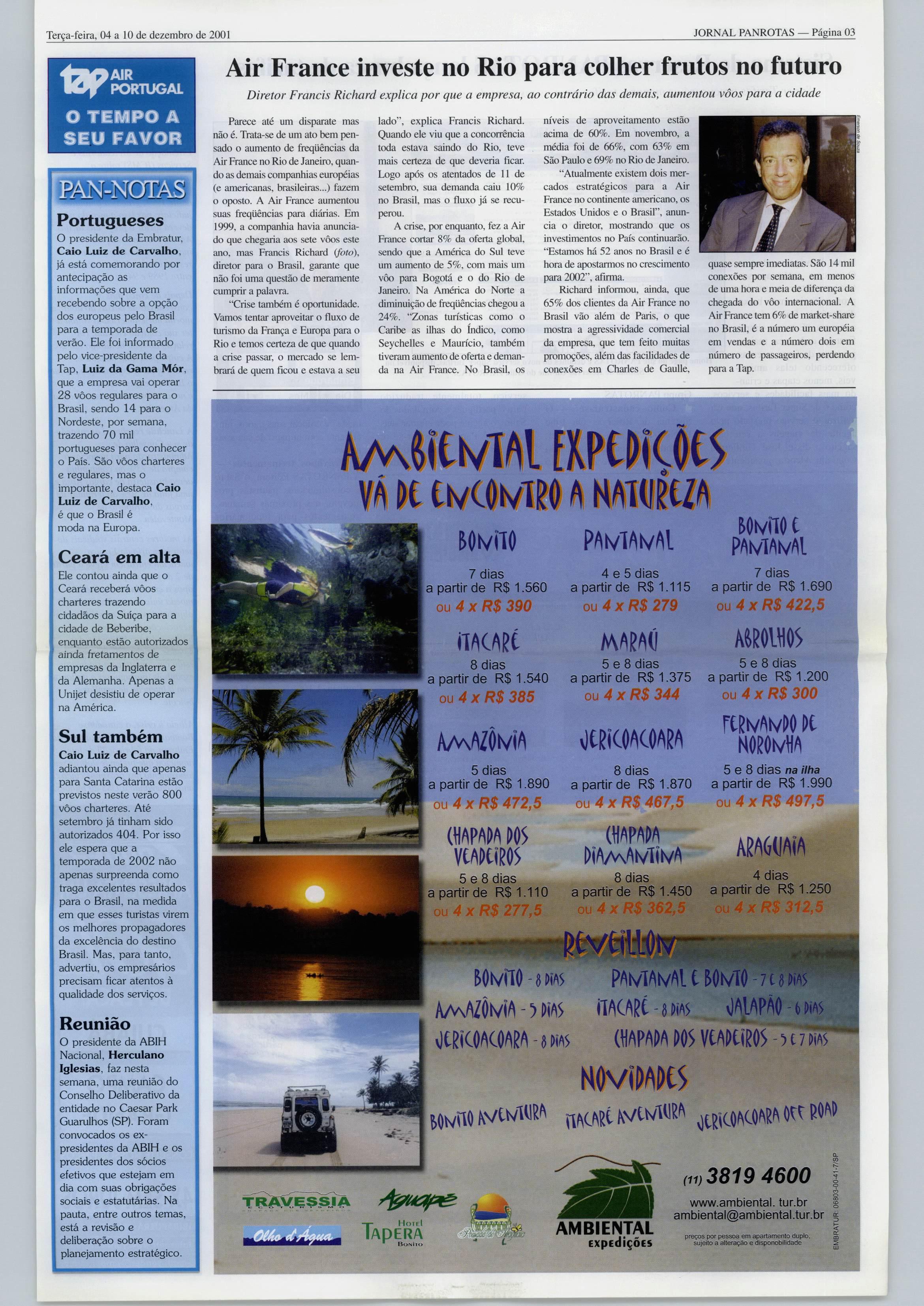 T • PDO: 0300'213'4e2 PAN ROTAS TRAVEL ACE INtCRKATIONAL IMAS Group Alamo anrt-A-Ülr: iiXi SX2-LA-K» 1 www.panrotas.com.br PERIODICroADE SEMANAL N- 475 04 A 10 DE DEZEMBRO DE 2001 ANO X Assinatura anual: 52 exemplares: RS 109.00 - exemplar avulso: R$ 3,50