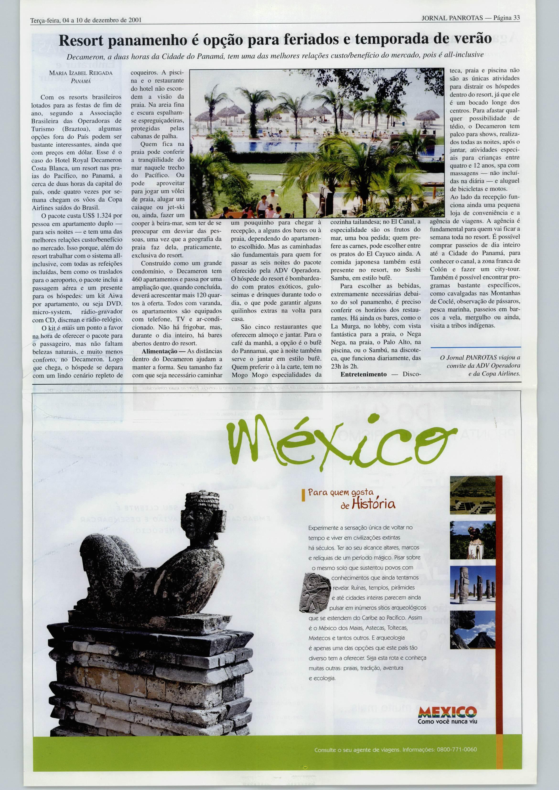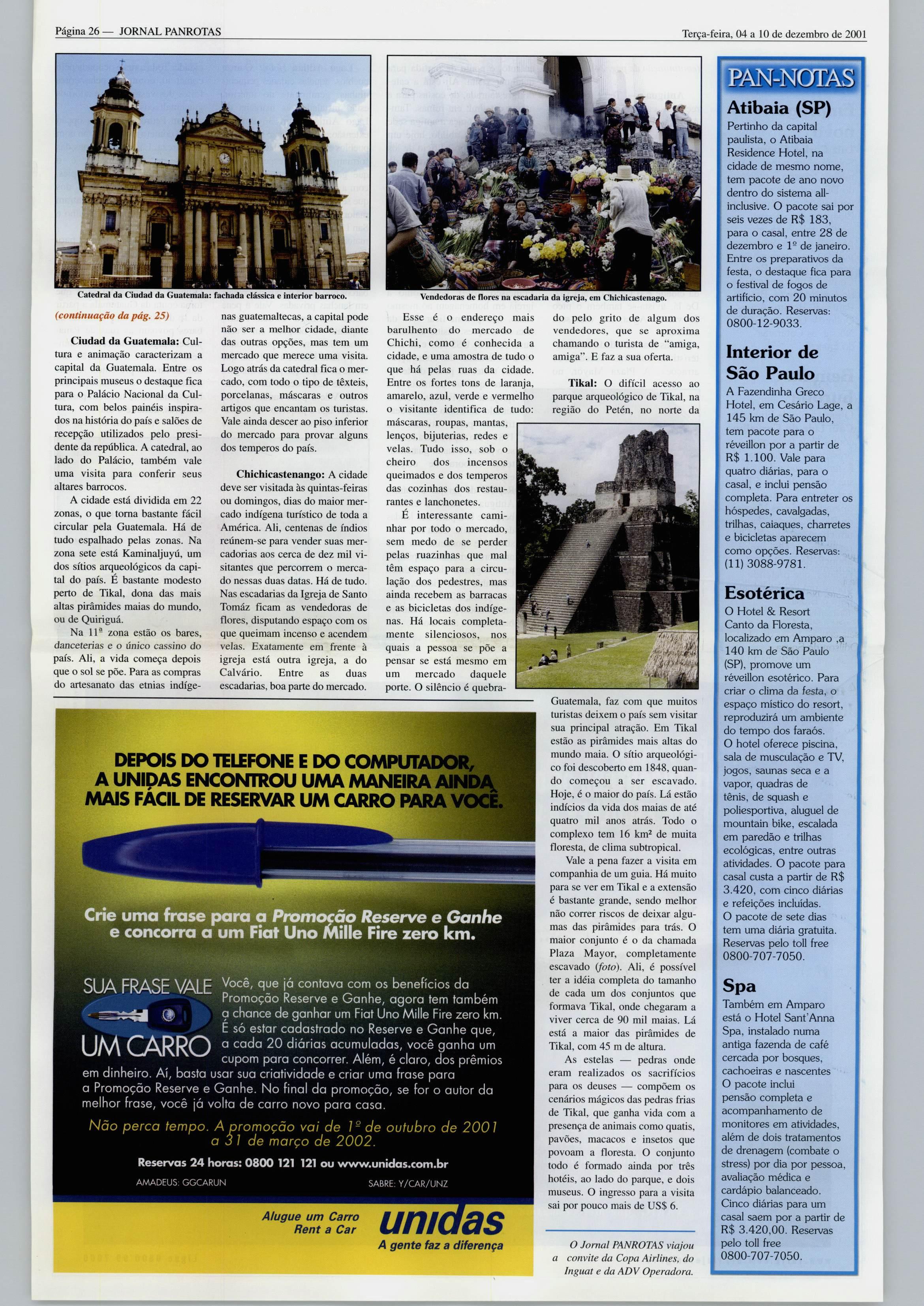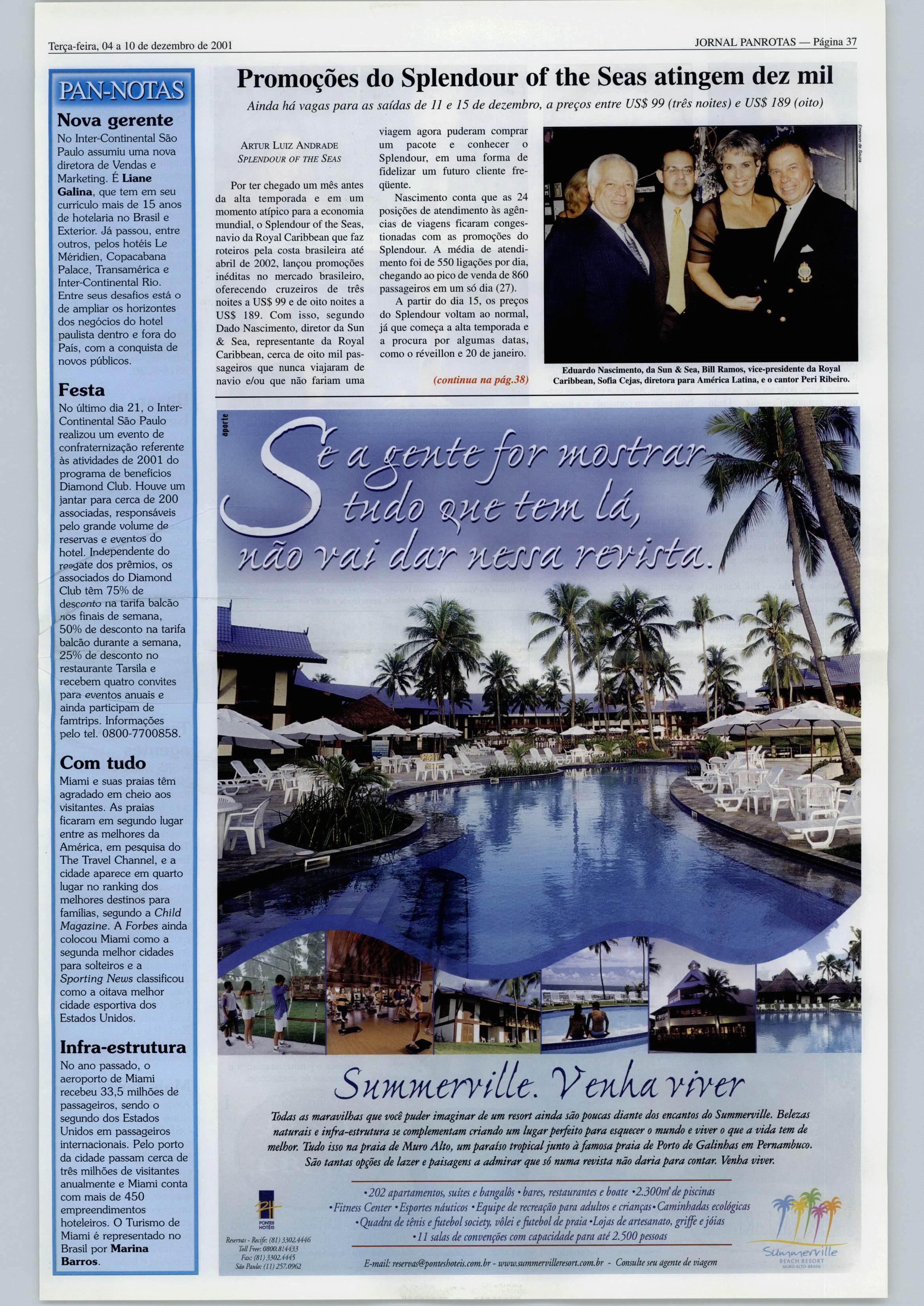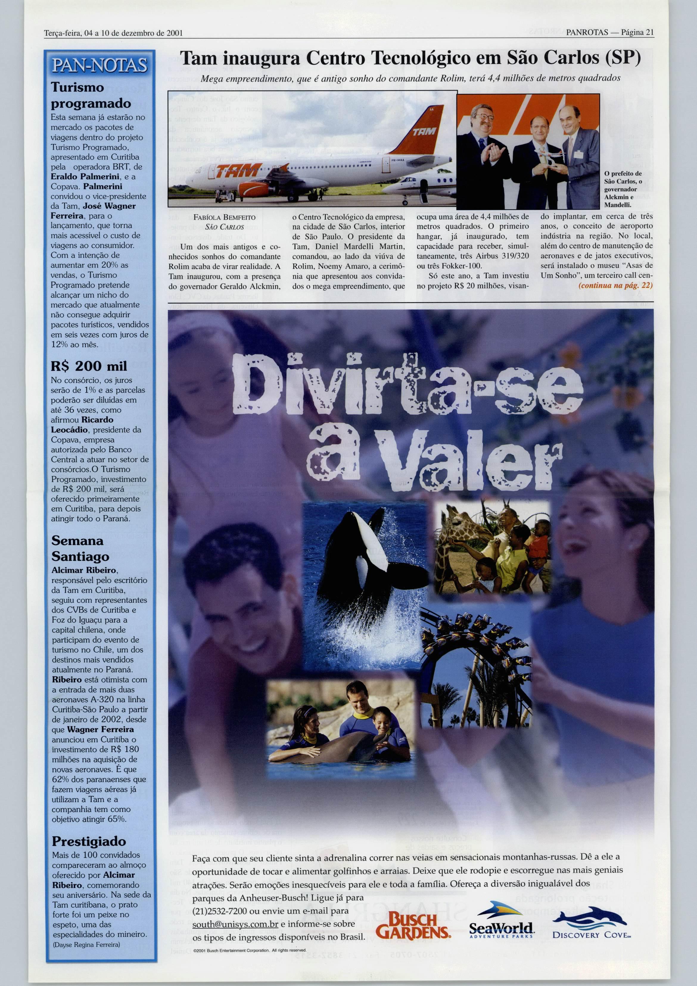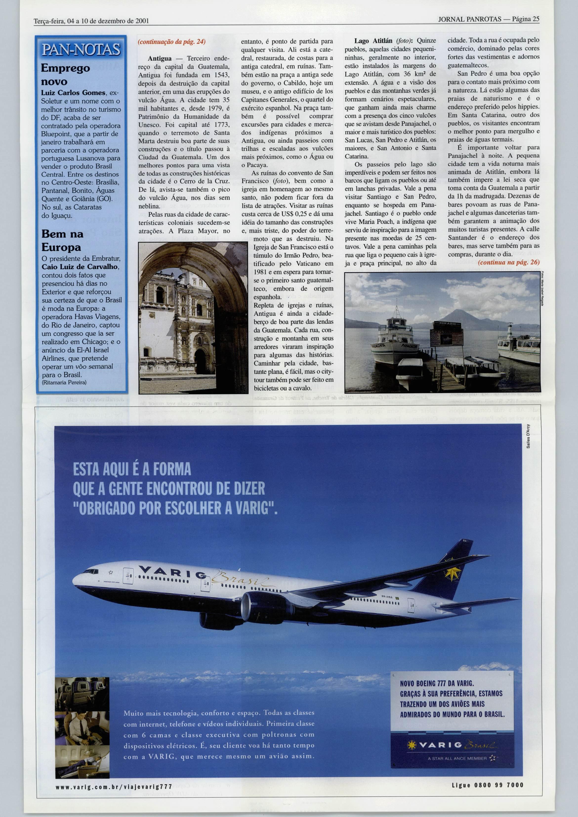 T • PDO: 0300'213'4e2 PAN ROTAS TRAVEL ACE INtCRKATIONAL IMAS Group Alamo anrt-A-Ülr: iiXi SX2-LA-K» 1 www.panrotas.com.br PERIODICroADE SEMANAL N- 475 04 A 10 DE DEZEMBRO DE 2001 ANO X Assinatura anual: 52 exemplares: RS 109.00 - exemplar avulso: R$ 3,50