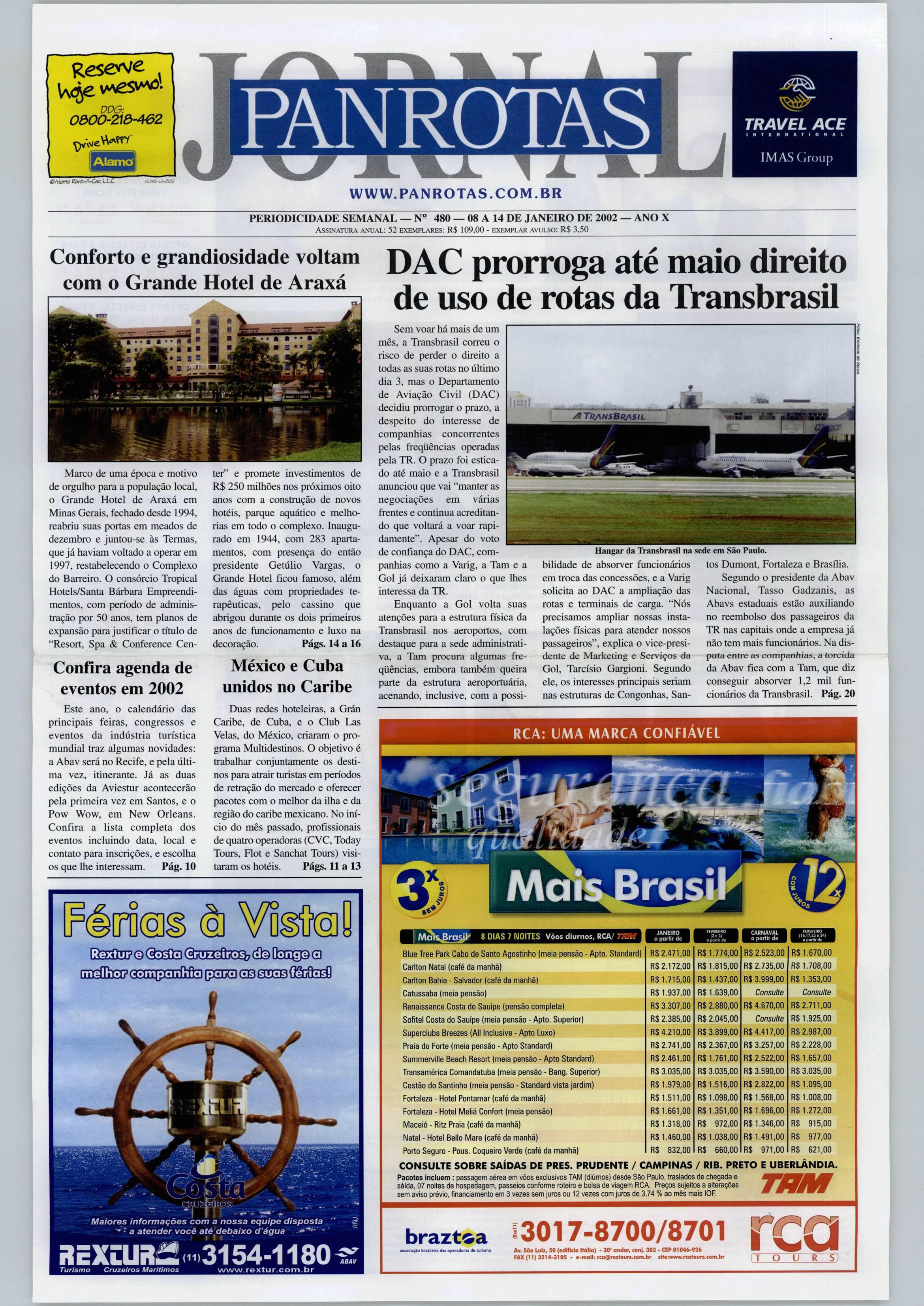 t^esewe PPO: 0300-213-462 V\<^' ^*vve PAN ROTAS TRAVEL ACE IHTCftNAflOHAl IMASCiroup Al^noi Lí£. www.panrotas.com.br PERIODICIDADE SEMANAL 480 08 A 14 DE JANEIRO DE 2002 ANO X Assinatura anual: 52 exemplares: R$ 109,00 - exemplar avulso: R$ 3,50