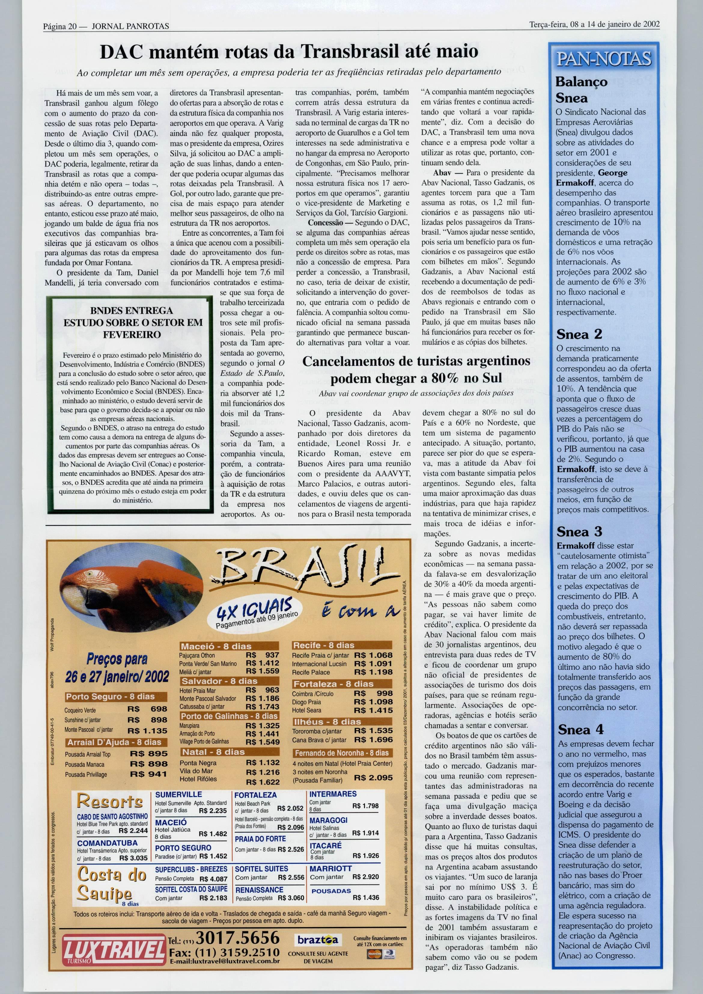 Terça-feira, 08a14de janeiro de2002 JORNAL PANROTAS Página 19