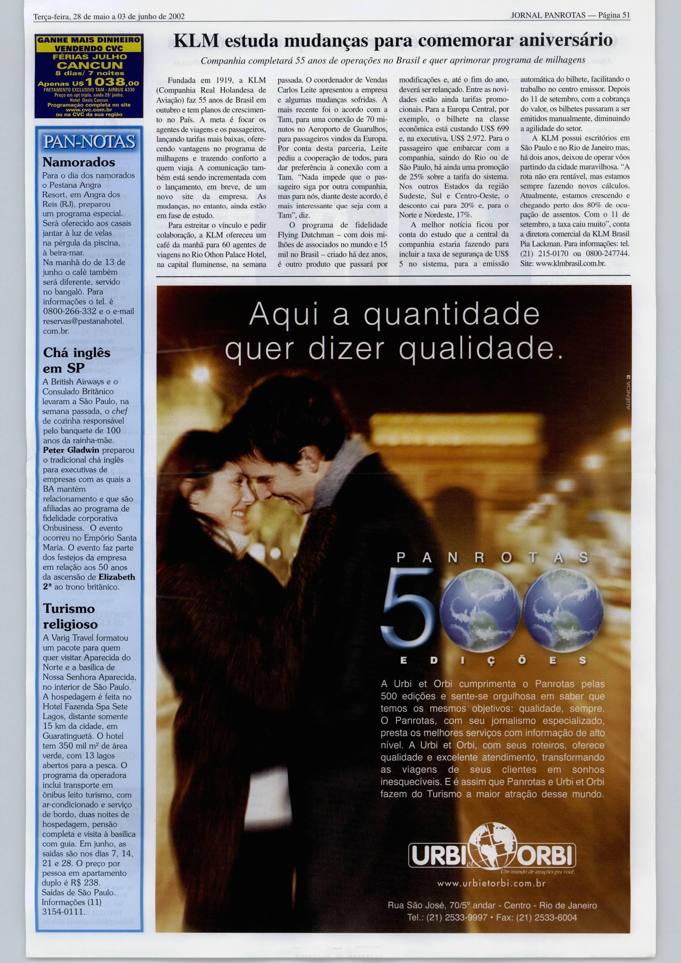 Página 52 JORNAL PANROTAS Terça-feira, 28demaioa03de junho de2002