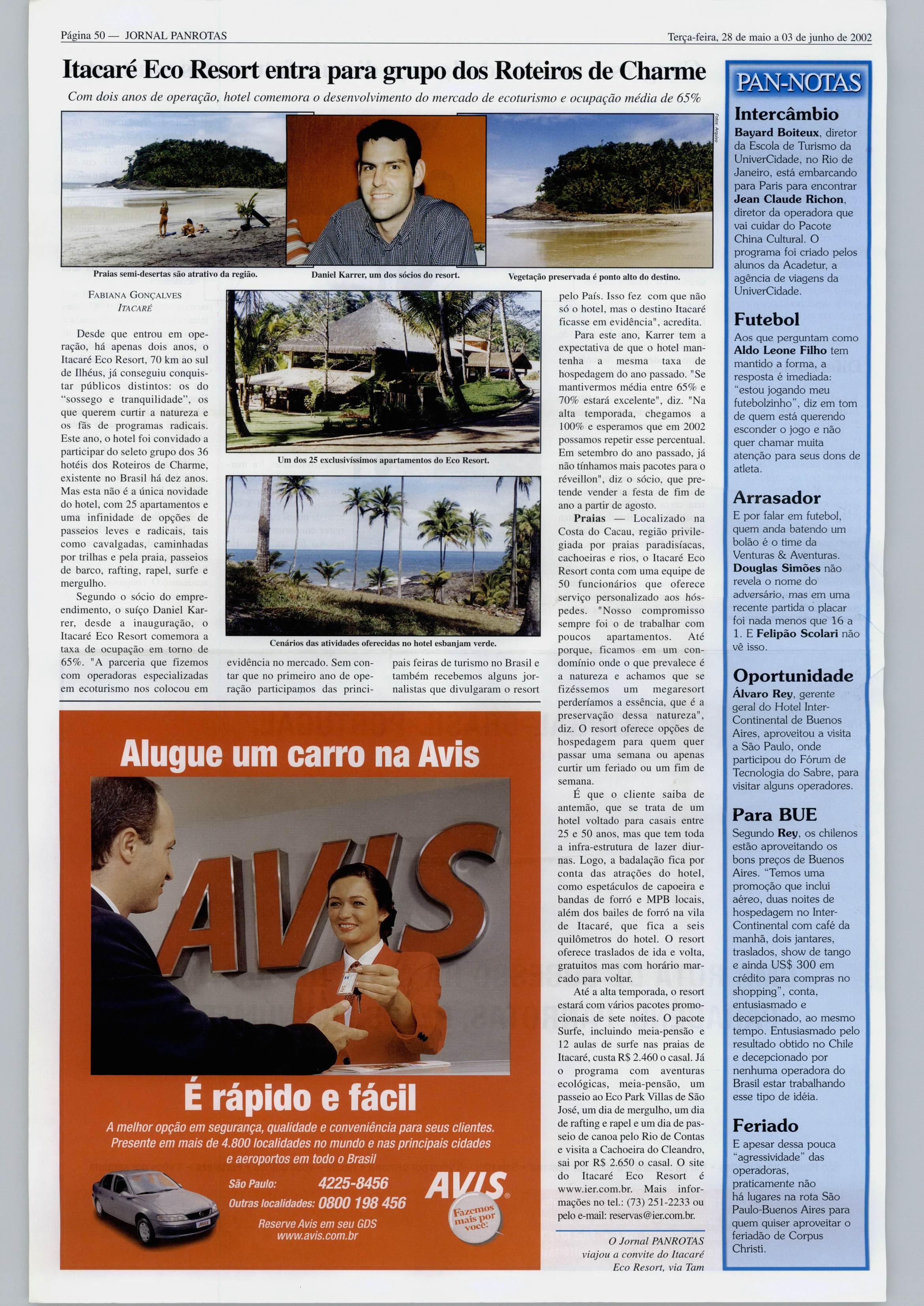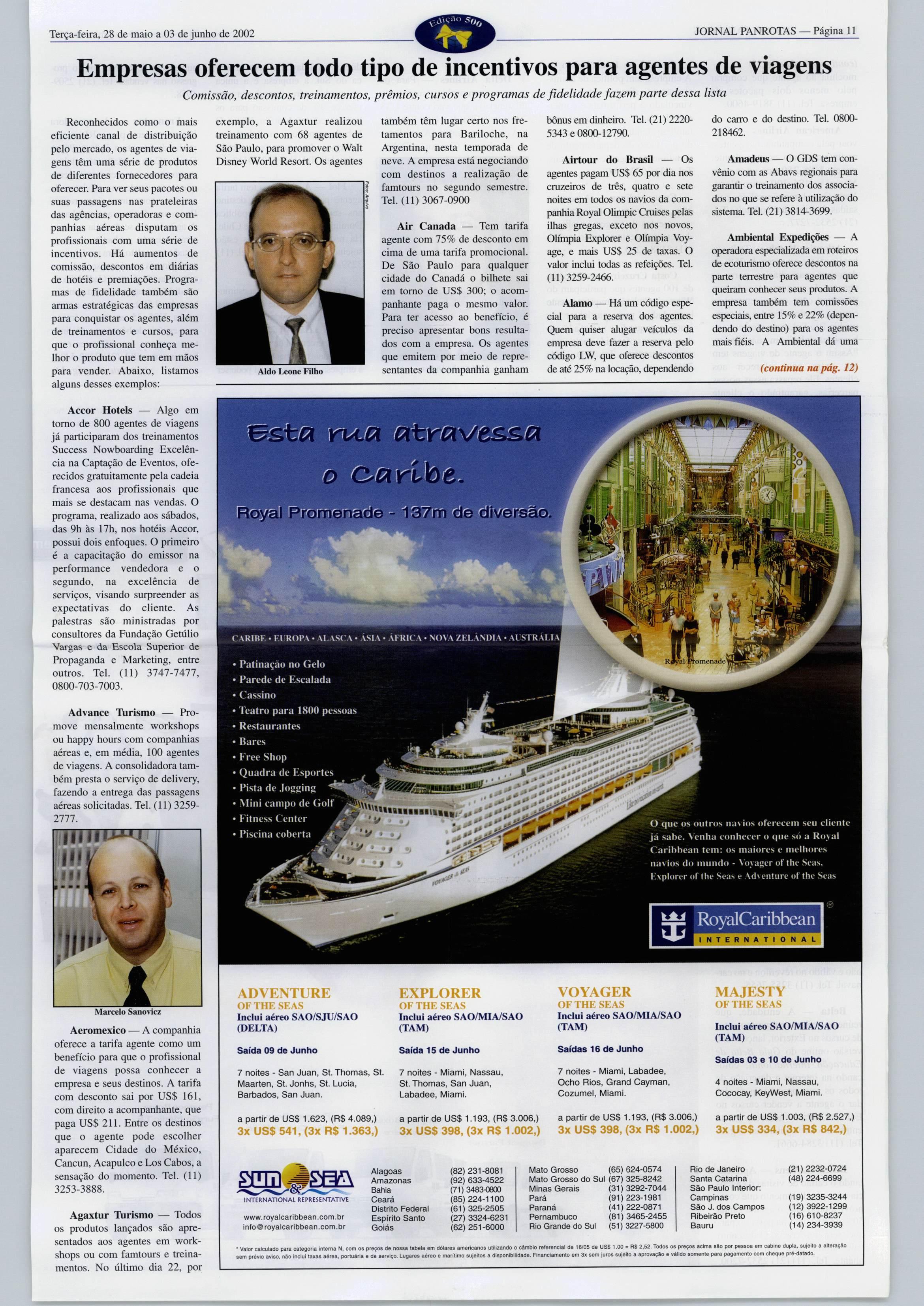 T • DDõ: 0&00'2'\&-4e2 ^rwe PAN ROTAS TRAVEL ACE INTIRHATIONAL IMAS Group Alamo' RíÇrtt-z^-Cw ul.C www.panrotas.com.br PERIODICIDADE SEMANAL 500 28 DE MAIO A 03 DE JUNHO DE 2002 ANO X EXEMPLAR AVUl-SO: R$ 3.50