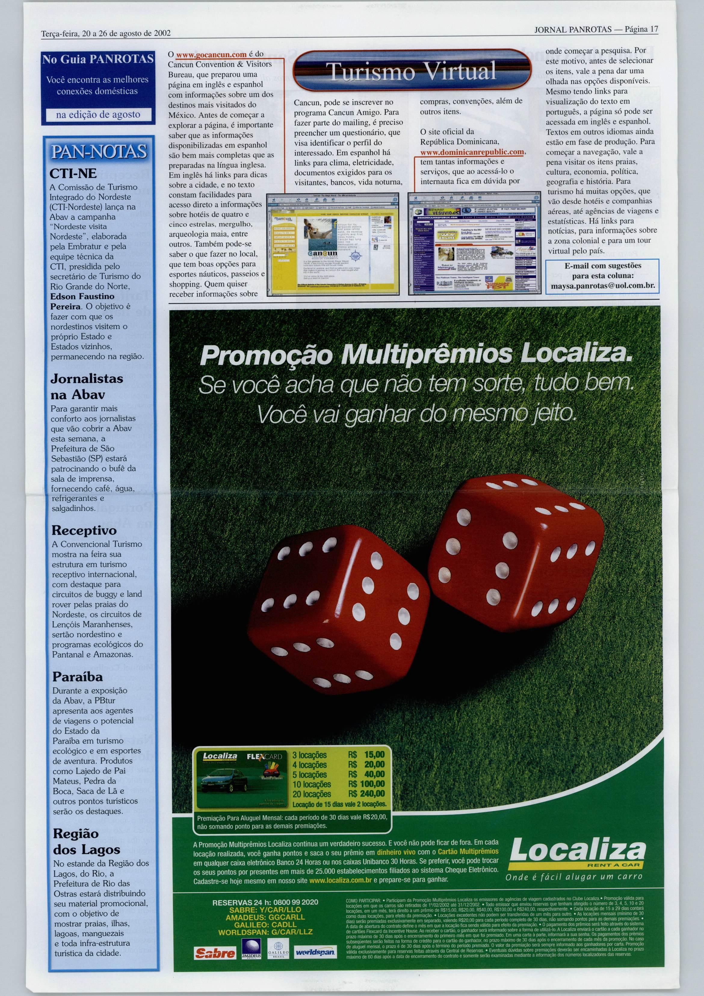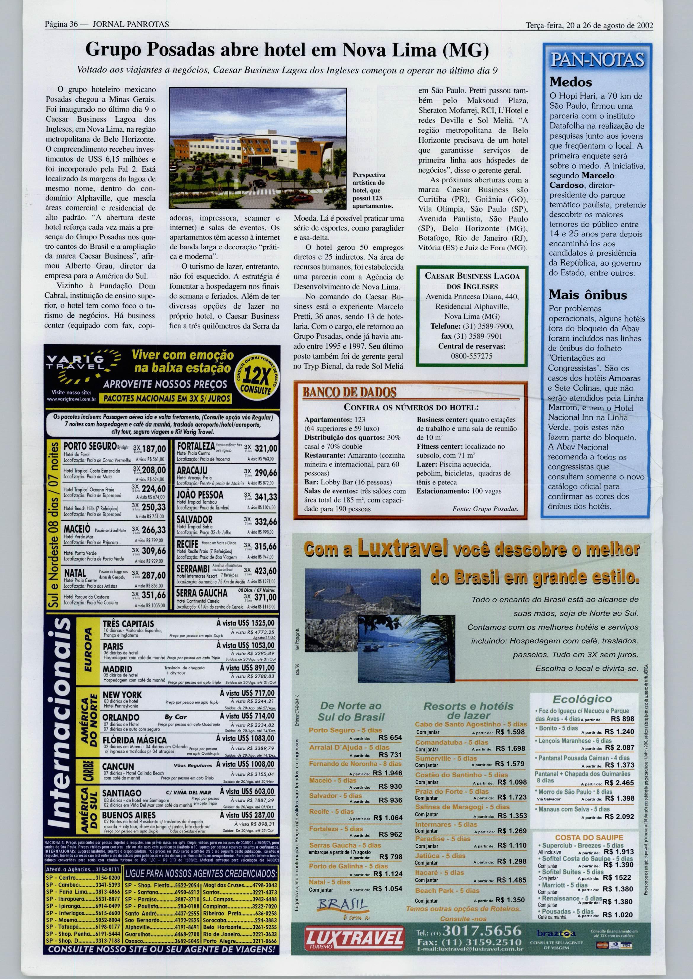 Página 36— JORNAL PANROTAS Terça-feira, 20a26de agosto de 2002