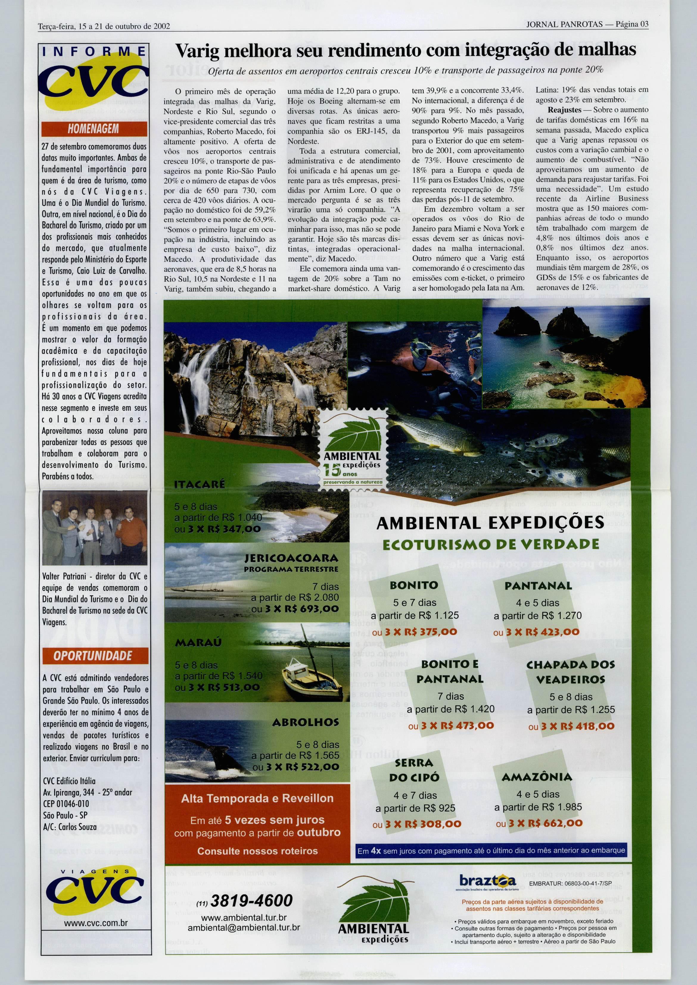 Terça-feira, 15 a21de outubro de2002 JORNAL PANROTAS Página 03