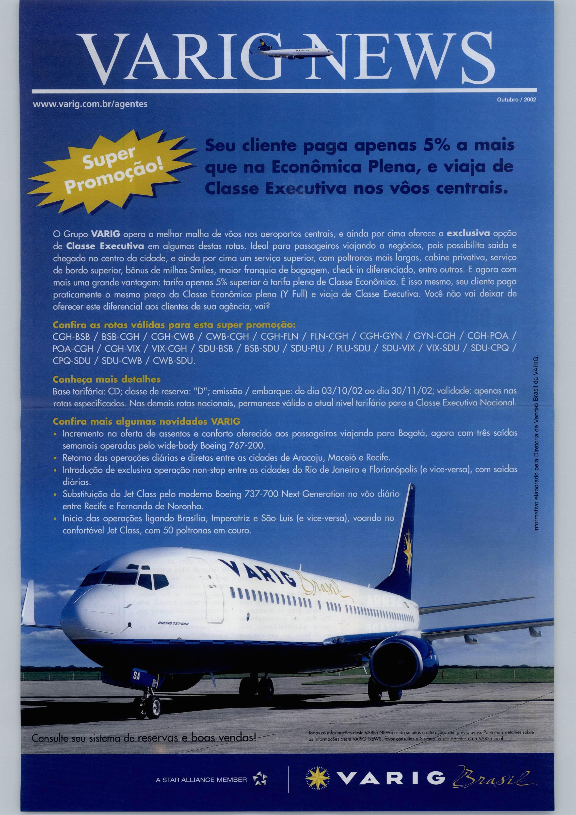 Em dezembro voltam a ser operados os vôos do Rio de Janeiro para Miami e Nova York e essas devem ser as únicas novi dades na malha internacional. Outro número queaVarigestá comemorando éo crescimento das emissões com e-ticket, o primeiro aser homologado pela lata naAm.