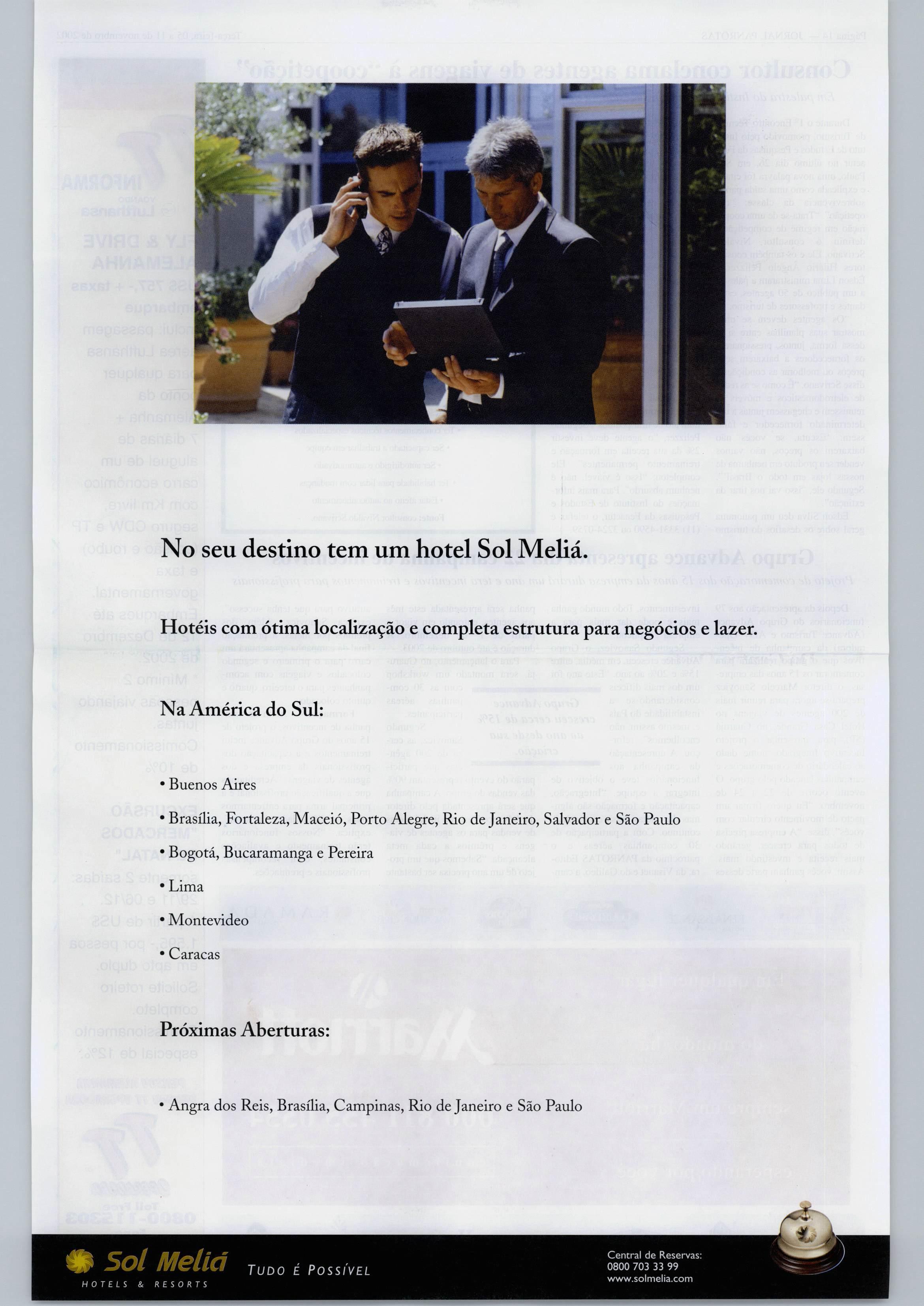 o grupo Posadas reuniu execu tivosdetodososseus empreendi mentos noBrasil, além da Argenti naedoMéxico,parapromovero primeiro Salão de Negócios, em SãoPaulo. "Quem fechou negócio conosco na ocasião leve vantagens ebenefíciosespeciais",disseLuis Calle, diretor regional deVendas. Cercade400operadores,agentese profissionaisdiversos comparece ram aoevento. Pág. 22