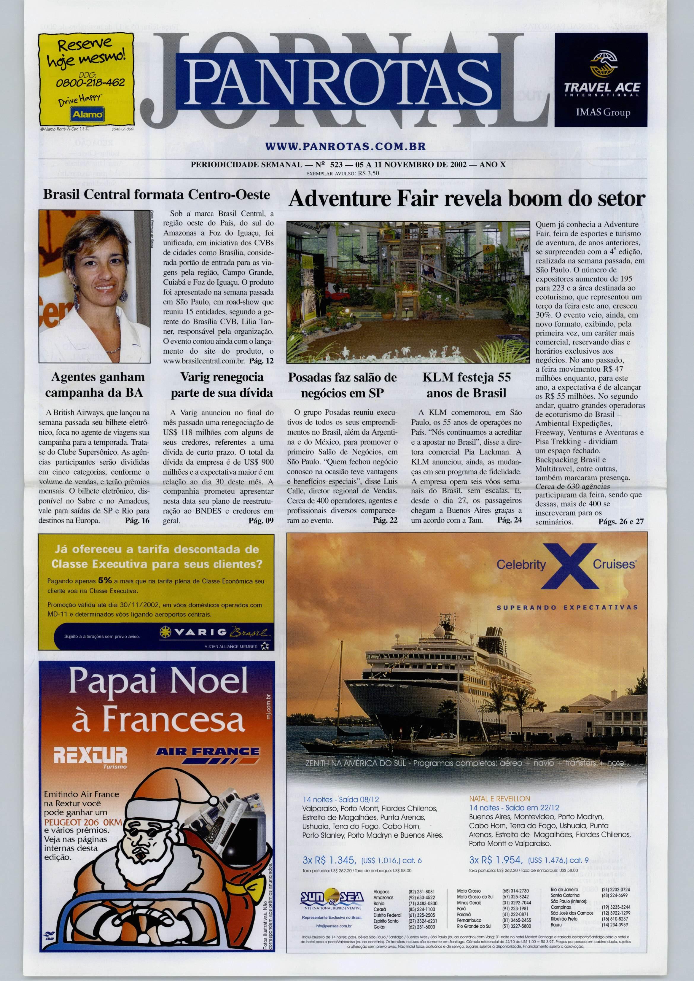 DOG: o&oo-z^iô-Aez ^\ve PANROTAS TRAVEL ACE INTEHNATIONAL IMAS Gfoup AiamO ©A'i'-5 l%Tírt-/i-Cia'; L.L.C. HlJL 1 X www.panrotas.com.br PERIODICroADE SEMANAL 523 05 A 11 NOVEMBRO DE 2002 ANO X EXEMPLAR avulso: R$ 3.50