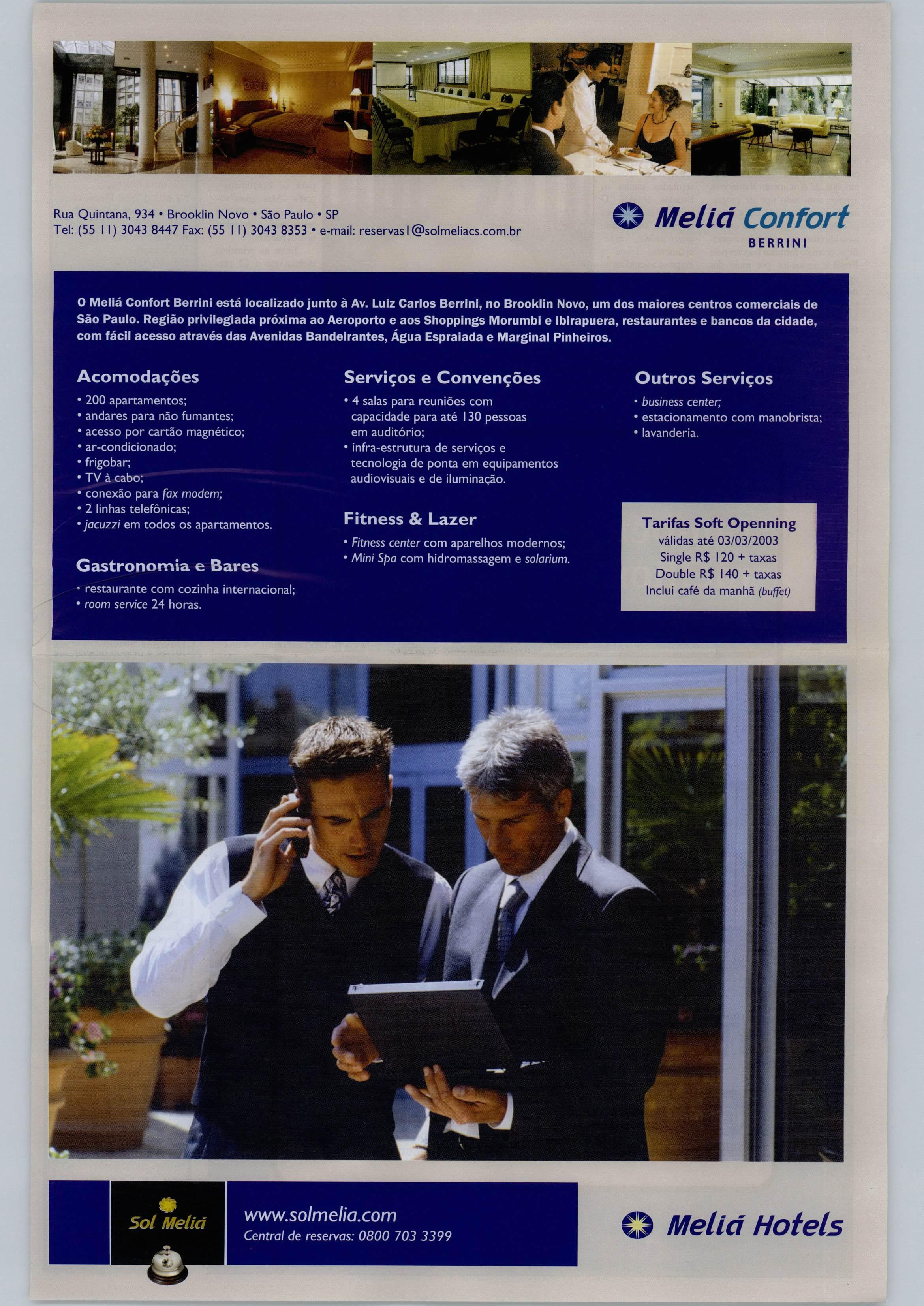 Rua Quintana, 934 • Brooklin Novo São Paulo •SP Tel: (55II)30438447 Fax: (55II)30438353• e-mail: reservasl@solmeliacs.com.br