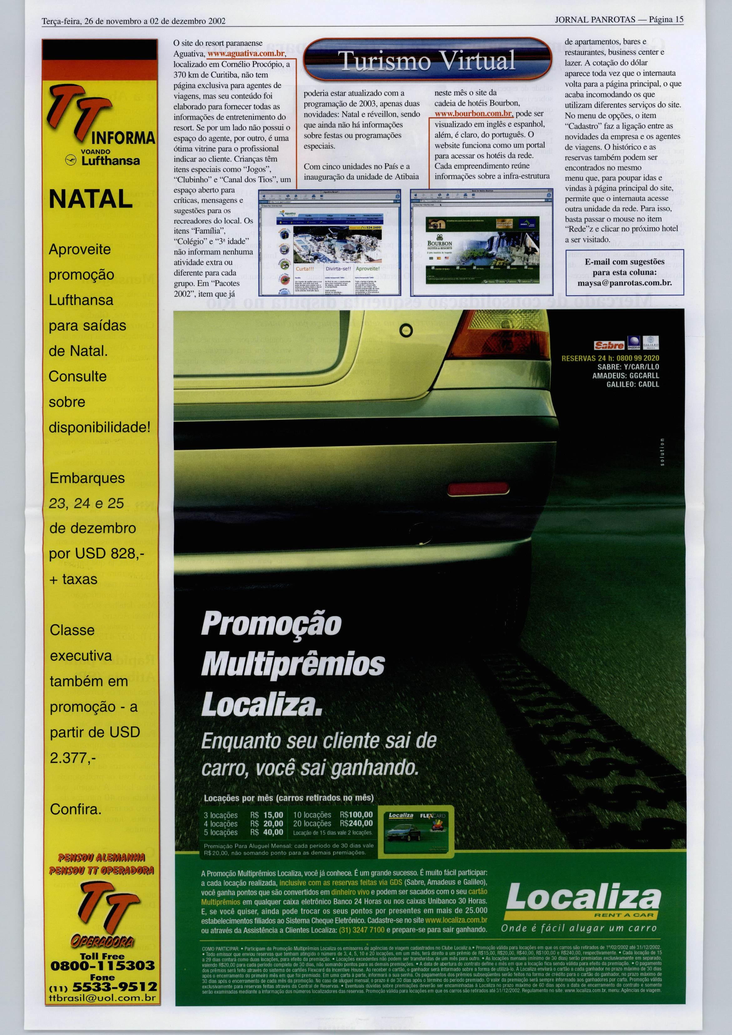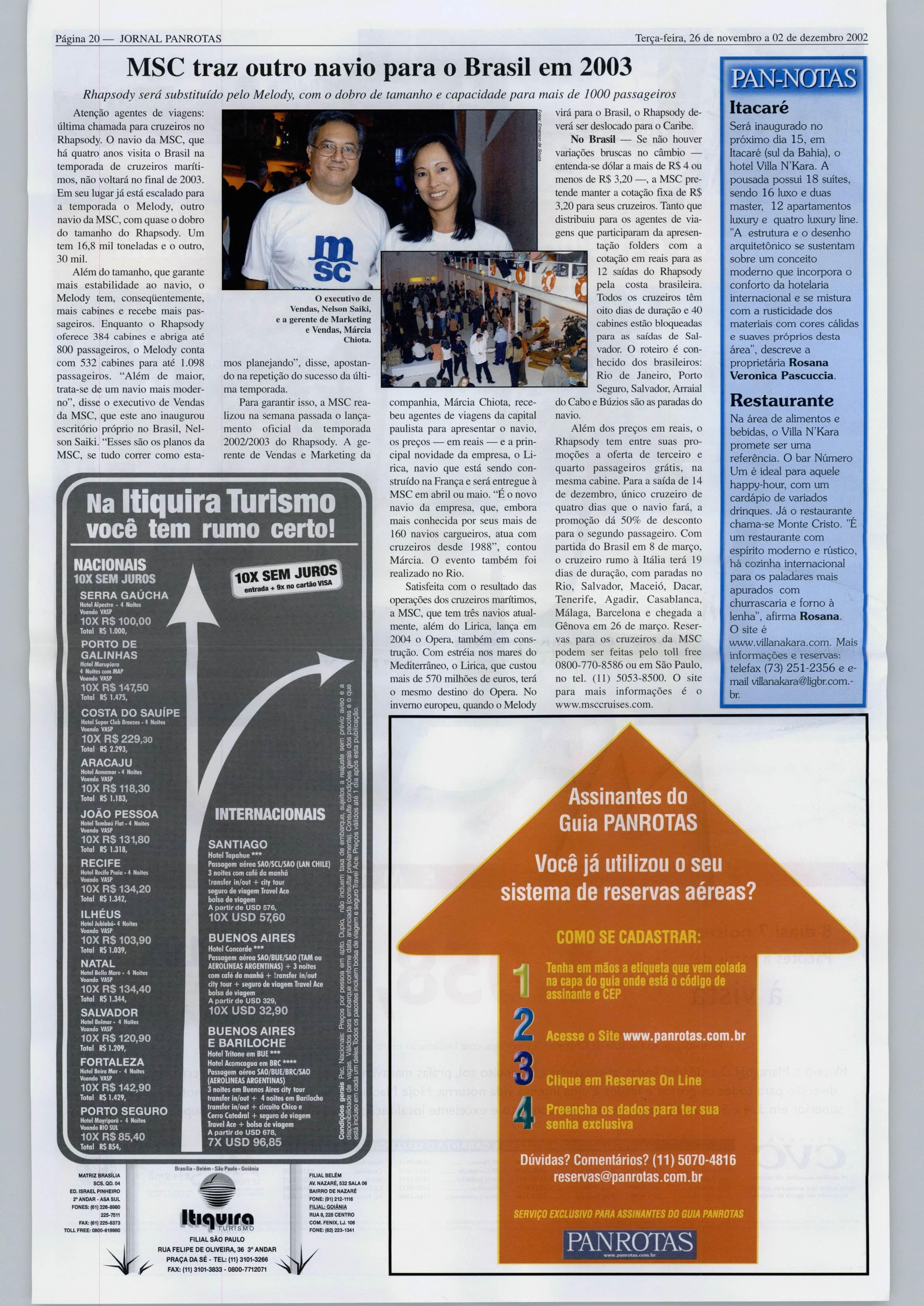 Terça-feira, 26de novembro a 02 de dezembro 2002 JORNAL PANROTAS Página 27