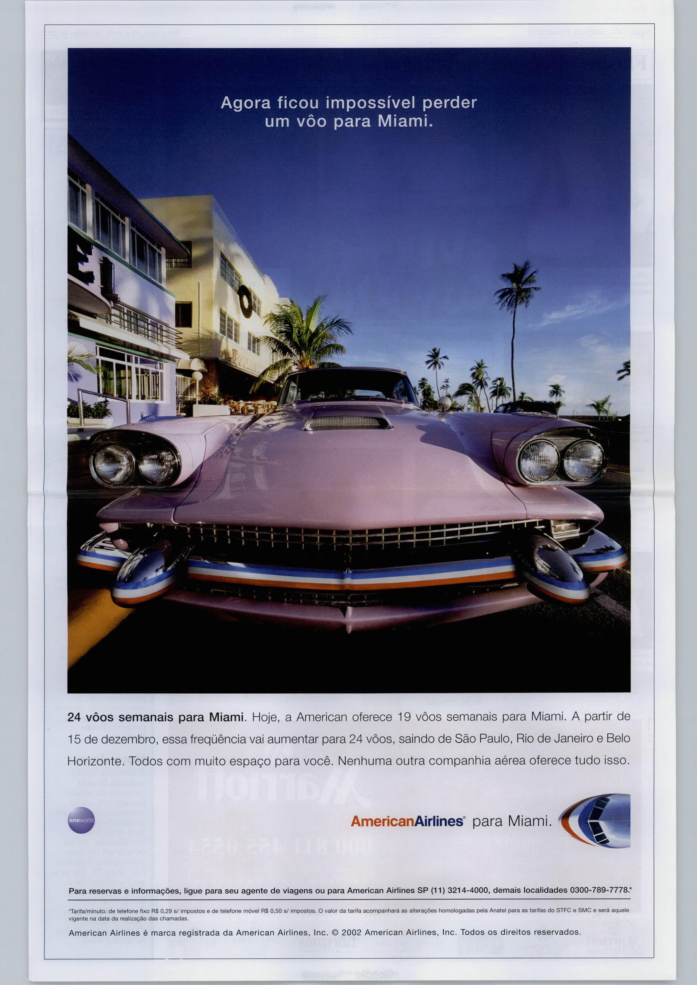 Dílson Verçosa. que assumiu a direção de Vendas e Marketing da American Ailines para o Brasil , anunciou que a companhia está colocando mais três vôos semanais non-stop na rota Rio-Miami. Agora a empresa vai disponibilizar dez vôos semanais entre as duas cidades. "Tem alguns concorrentes saindo doRio, por issoa American Ailines está aproveitando para reforçar sua posição no mercado", disse o executivo.