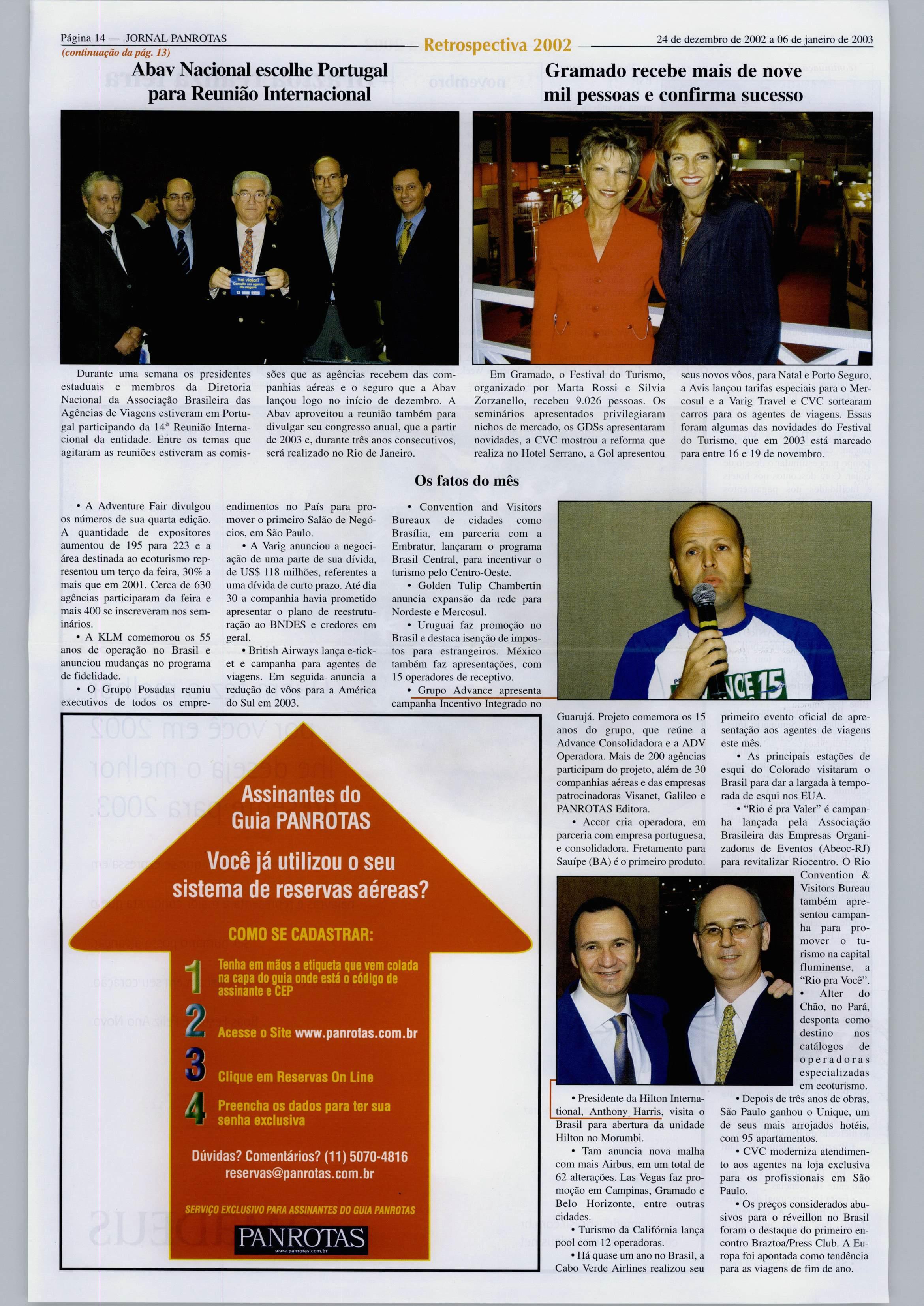1 Página 04 JORNAL PANROTAS Retrospectiva 2002 24de dezembro de2002a06de janeiro de2003