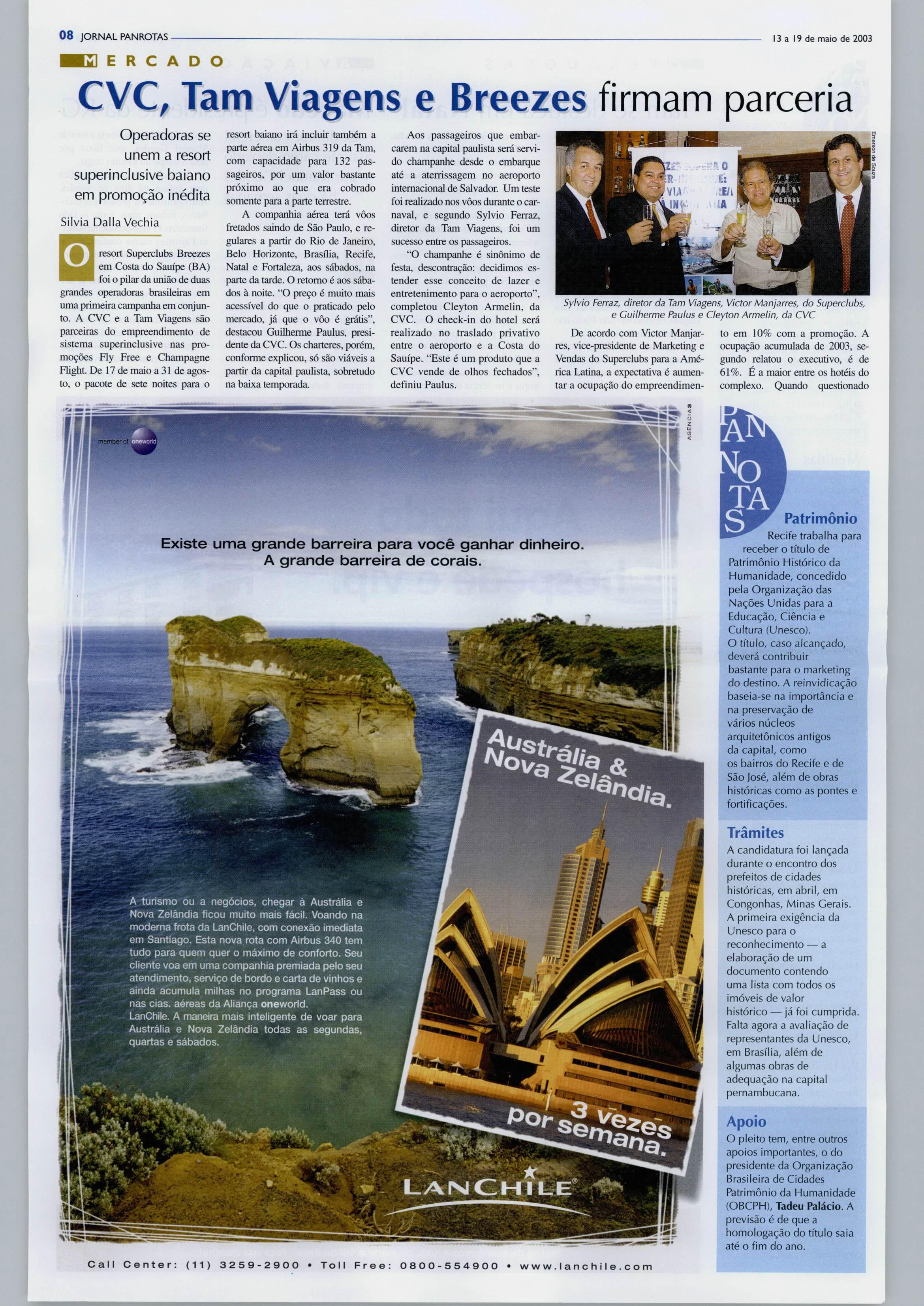 1 FJfl RESERVE ^^ HOJE mesmo.|£^^ Tá F^'r'VrP, PANROTAS TRAVEL ACE lIlTEBKATieMtL IMASGroup ddg: 0800-21-8462 .,üL m.j. 1 www.paiirotas.com.br Ano X- n** 548 13 a 19 de maio de 2003 R$ 3,50 Superciubs consegue unir Tam Viagens e CVC Luxo e economia destancam-se nosdoisroteiros criados