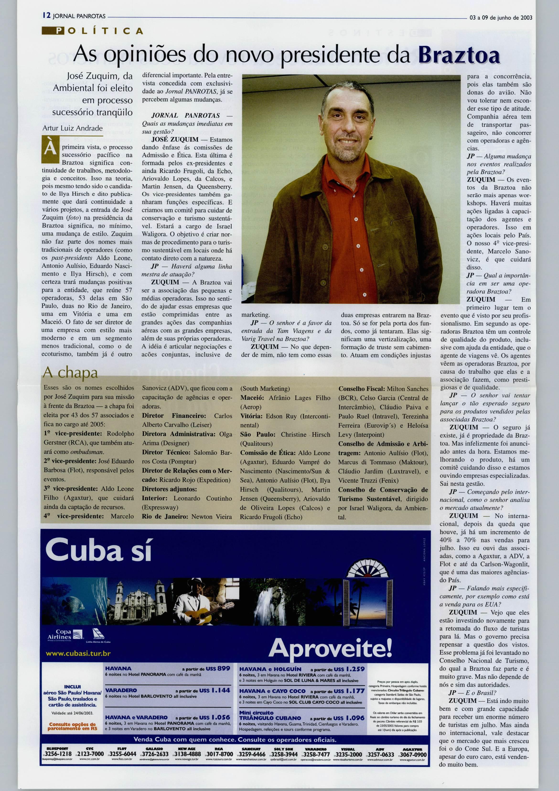 Depois, foi buscar auxiliares que tivessem reconhecimento técnico, bom trânsito entre o empresariado daáreaeque,na sua definição, nomes sem nenhu ma restrição em qualquer seg mento da cadeia produtiva dotu rismo.