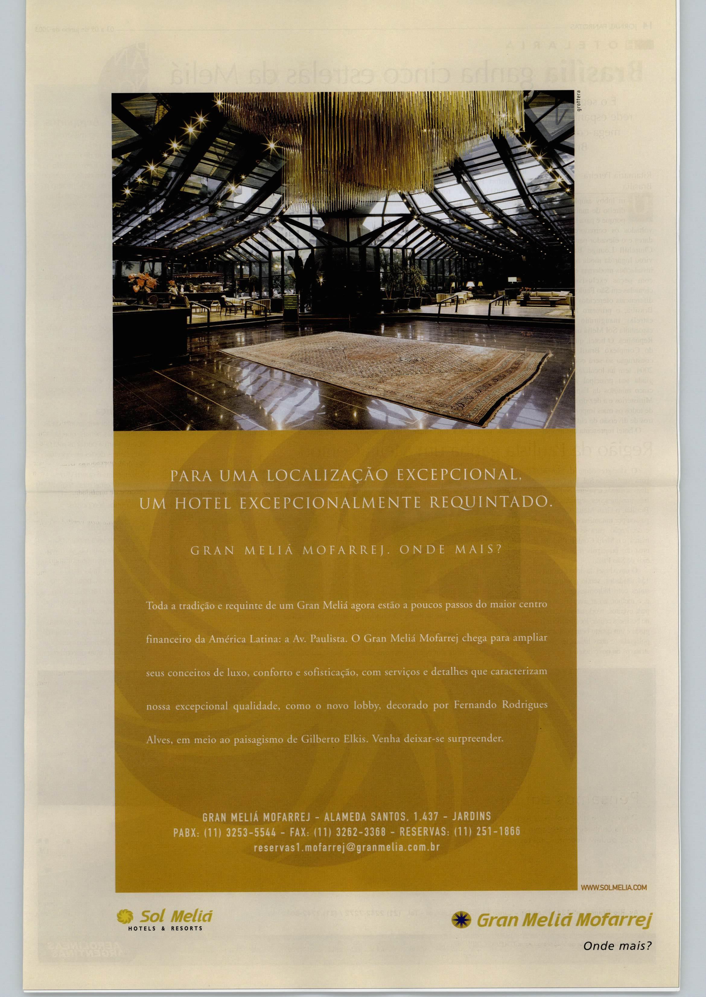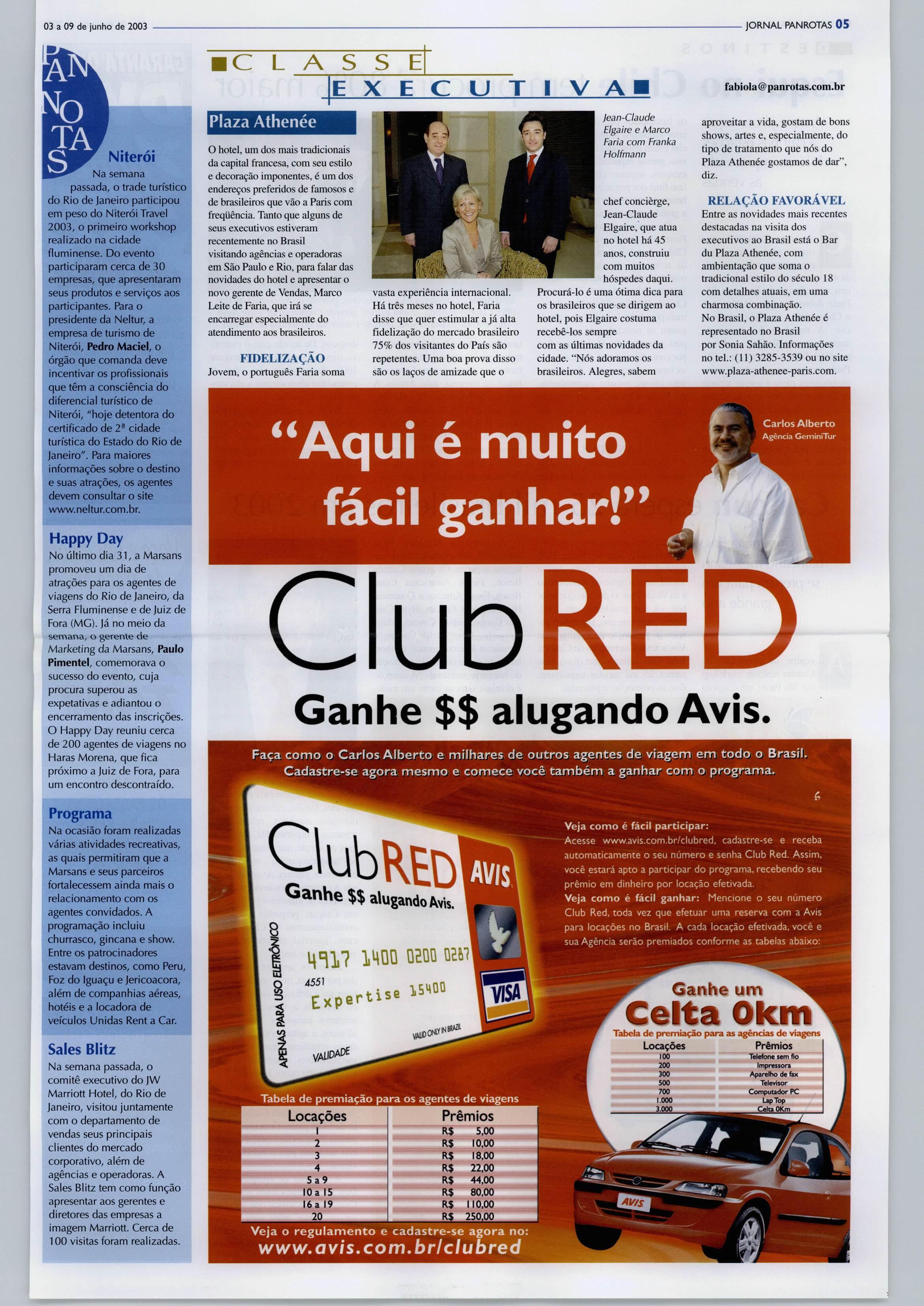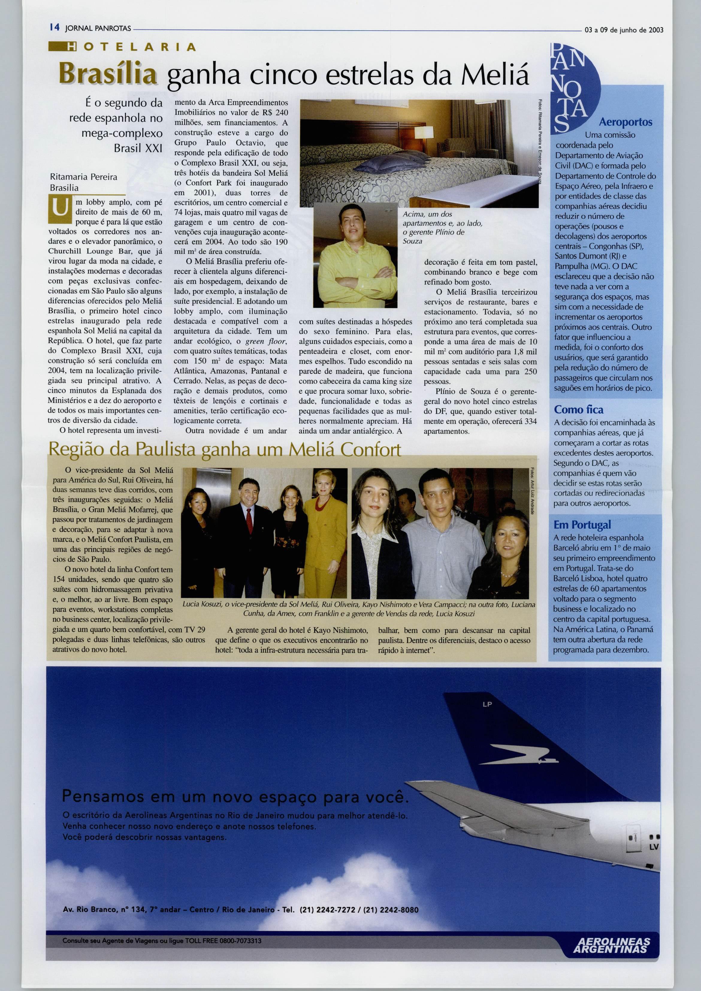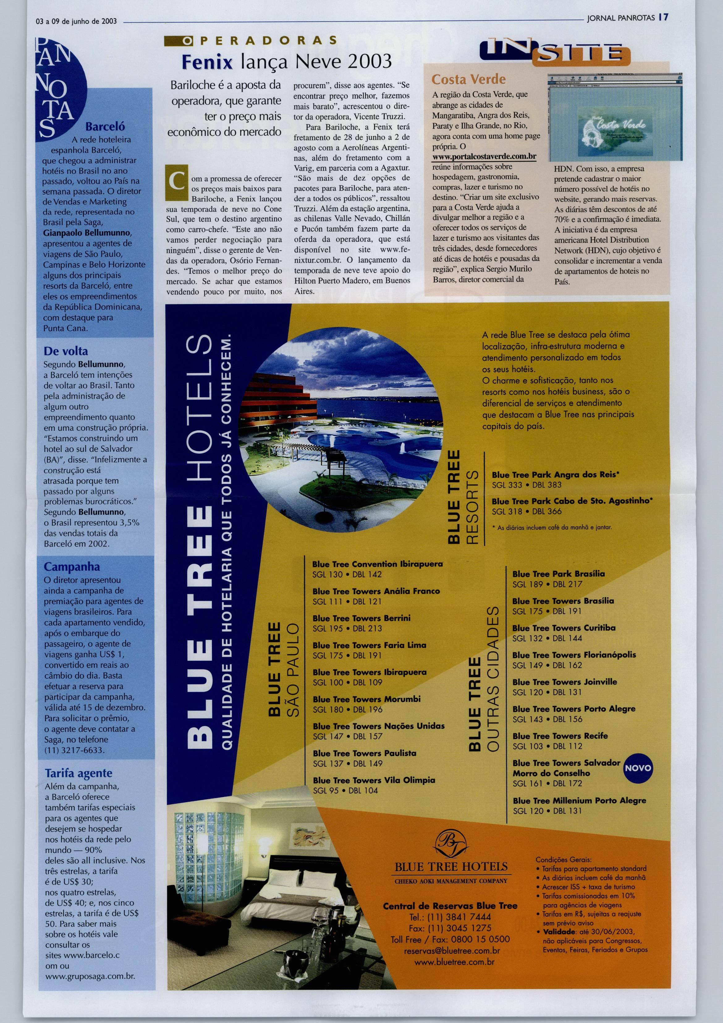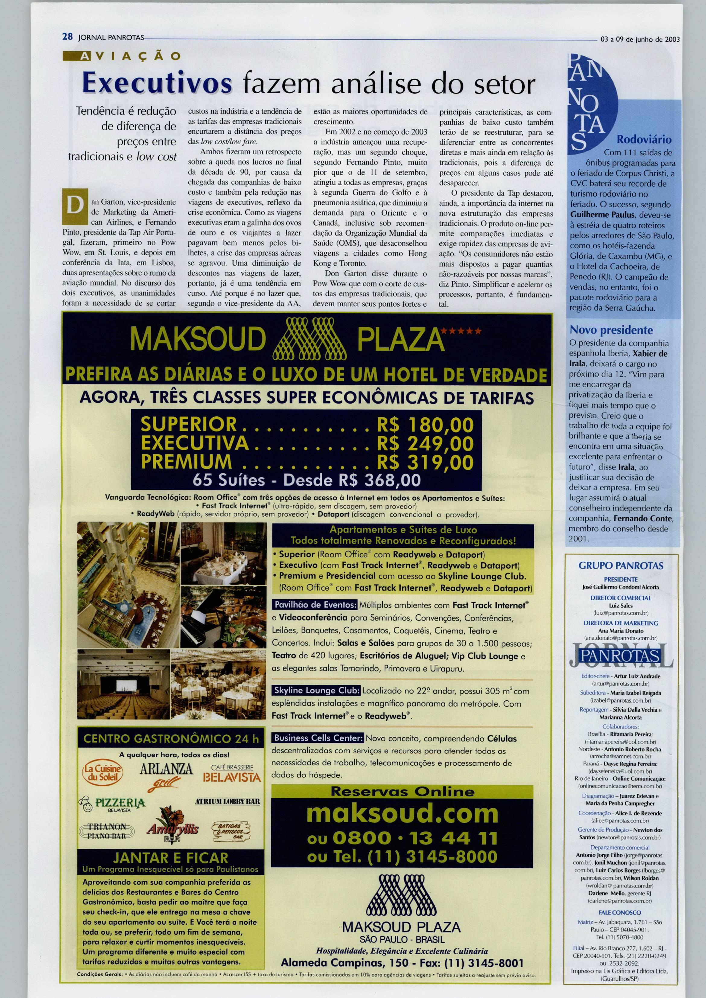 GRUPO PANROTAS PRESIDENTE fosé Guiilermo CondomíAkorta DIRETOR COMERCIAL Luiz Sales (liJÍz@panro!as.com.br) DIRETORA DE MARKETING Ana Maria Donato (ana.donatoS^panrotas.com.br) PANROTAS Editor-chefe - Artur Luiz Andrade (artur®panrotas.com.br) Subeditora - MariaIzabel Reigada (tzabel®panrotas.com.br) Reportagem-Silvia Dalla Vechia e Marianna Aicorta Colaboradores: Brasília - Ritamarta Pereira: (ritamariapereira@uol.com.br) Nordeste -Antonio Roberto Rocha: (arrocha@samnet.com.br) f^raná -DayseReginaFerreira: (dayseferreira®uol.com.br) RiodeJaneiro-OnlineComunicação: (or»linecomunicacao® terra.com.br) Diagramação - juarez Estevane MartadaPenhaCampregher Coordenação -AliceI.deRezende (alice®panrotas.com.br) Gerente deProdução- Newton dos Santos (newton@panrotas.com.br) Departamentocomercial Antonio forge Filho (jorge@panrotas. com.br), Jonil Muchon (jonil®panrotas. com.br), Luiz Carlos Borges (Iborgcs® panrotas.com.br],WilsonRoldan (wroldan® panrotas.com.br) Darlene Mello, gerente RJ (darlene@panroJas.com.br) FALE CONOSCO Matriz-Av.Jabaquara, 1.761-São F^ulo - CEP 04045-901. Tel. (11) 5070^800 Rlial -Av.RioBranco 277,1.602 - RJCEP20040-901. Tels. (21) 2220-0249 ou 2532-2092. ImpressonaLisGráficaeEditoraLtda. (Cuaruihos/SP) F